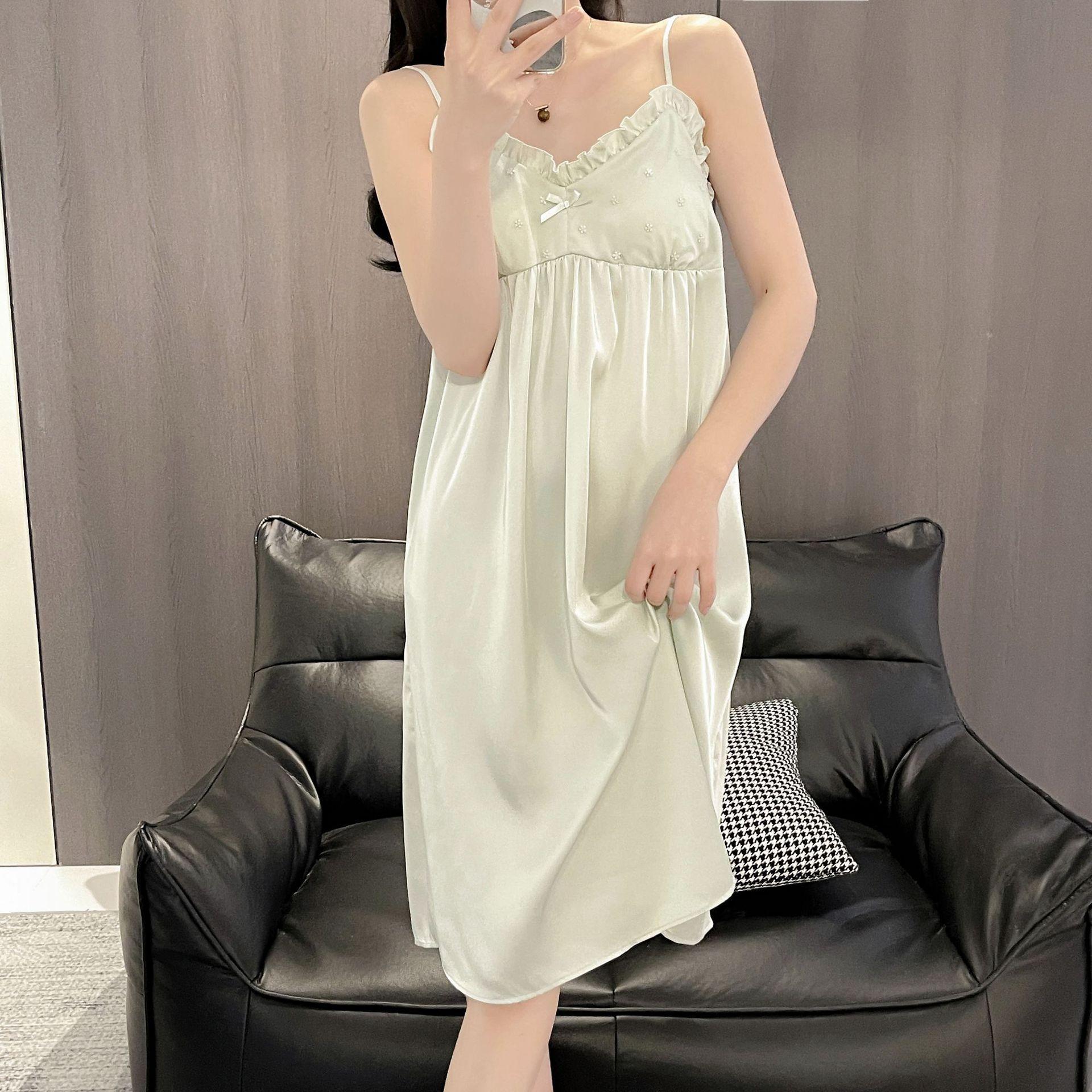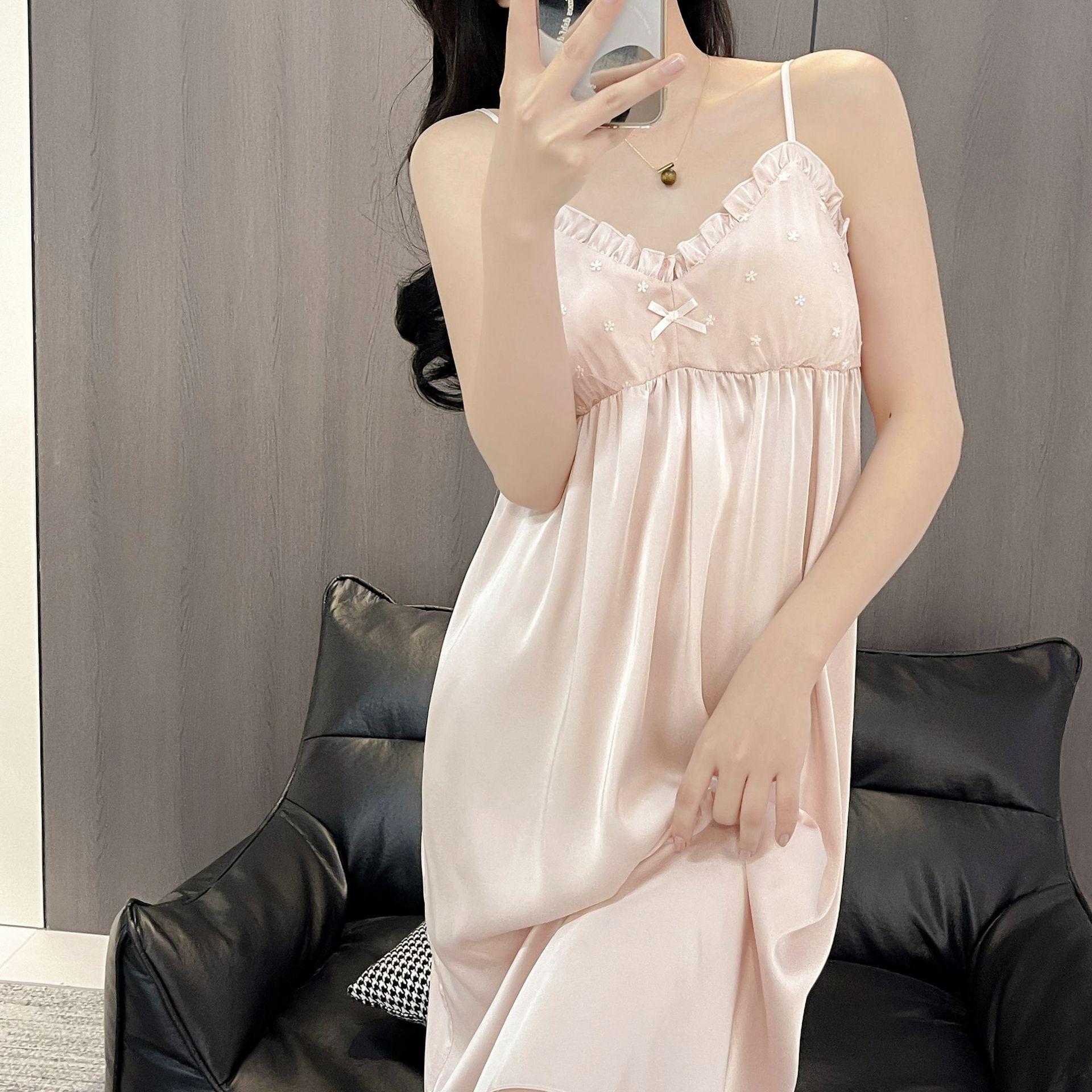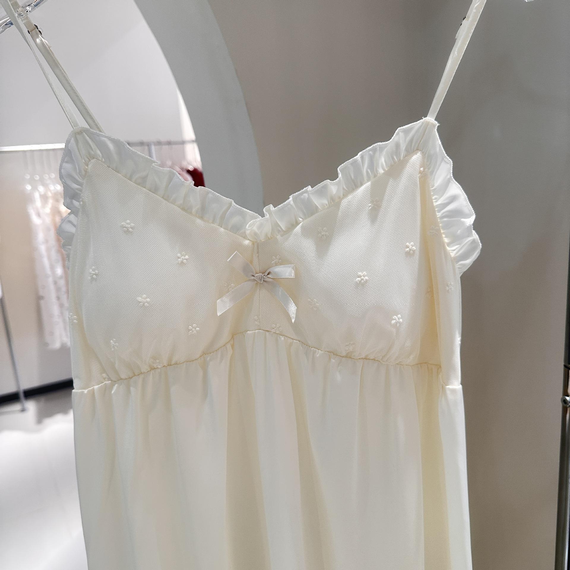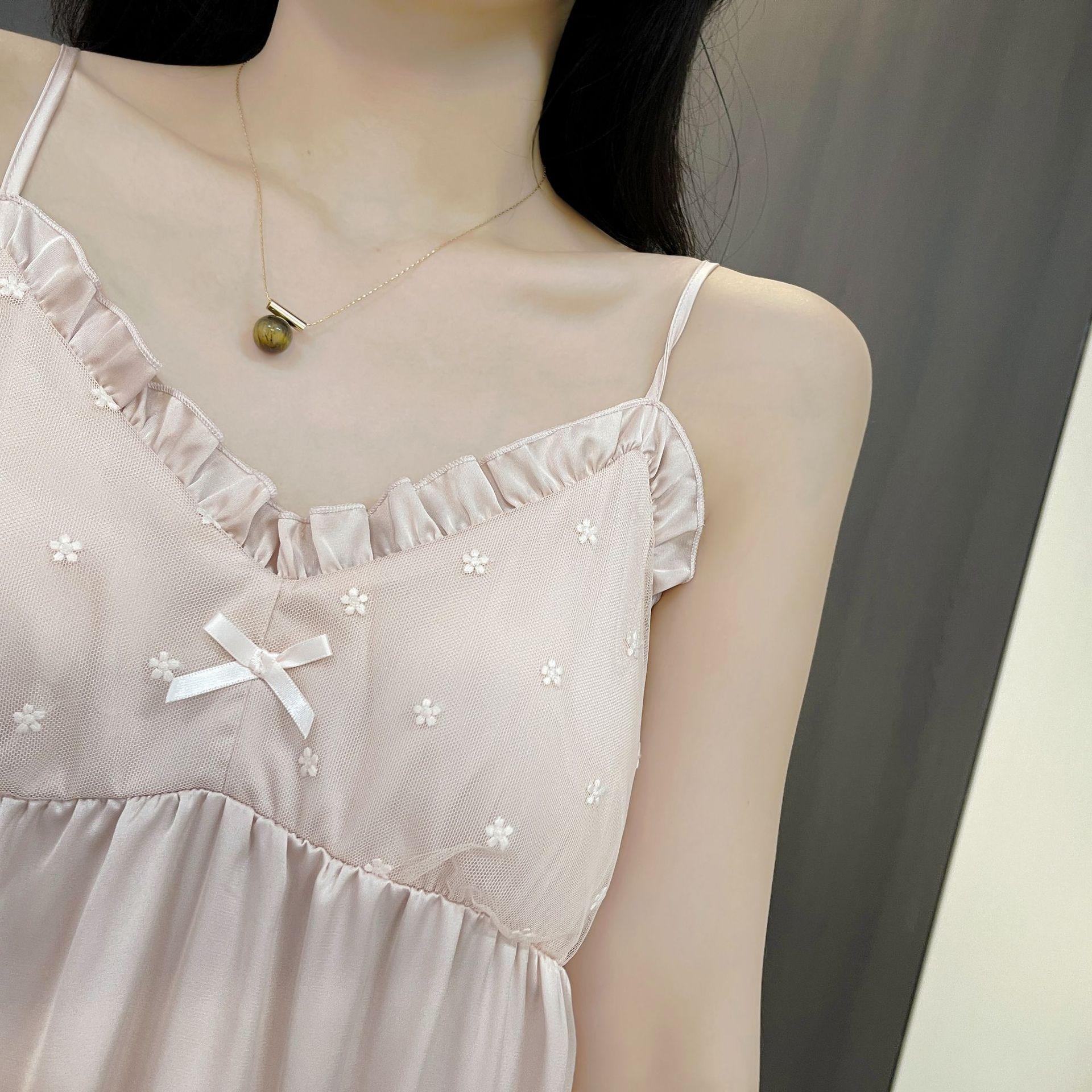 Camisón de Verano para Mujer con Almohadilla para el Pecho de Encaje de Hielo, Estilo Francés Delgado, Lujo Ligero, Deseo Puro, Sexy, Sensación de Alta Gama, Ropa para el Hogar para Niñas