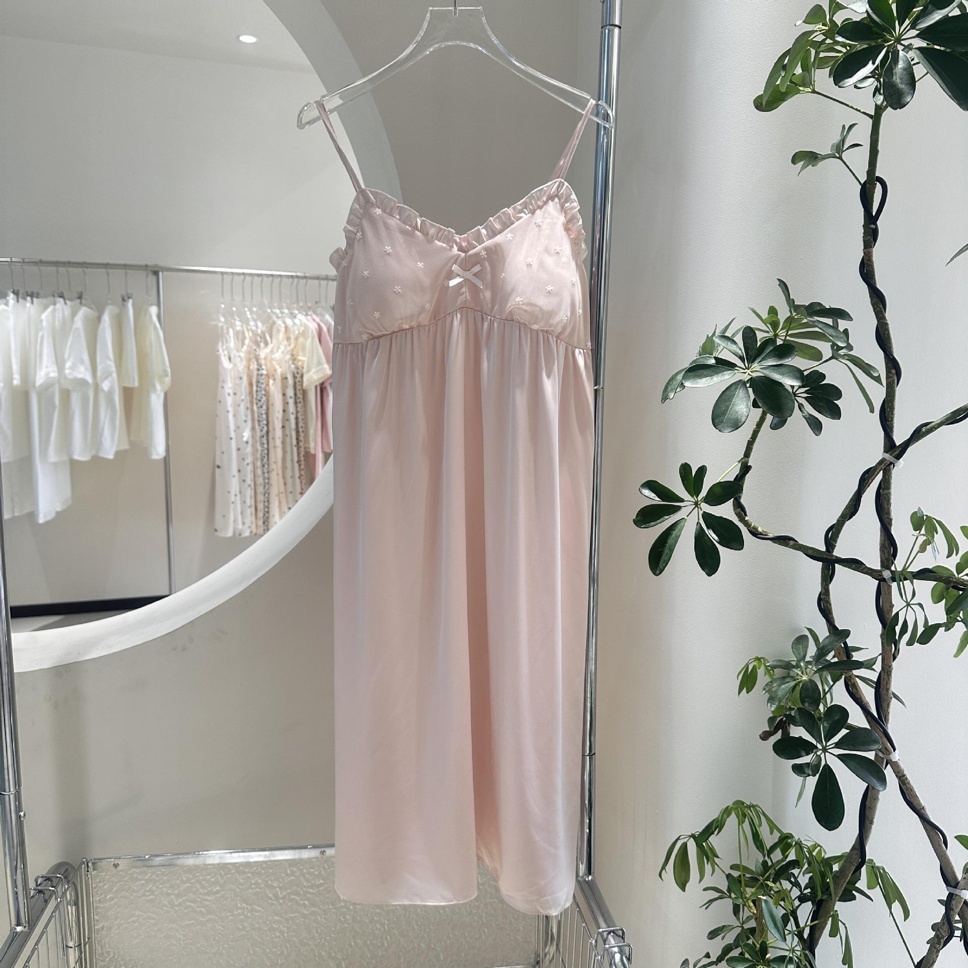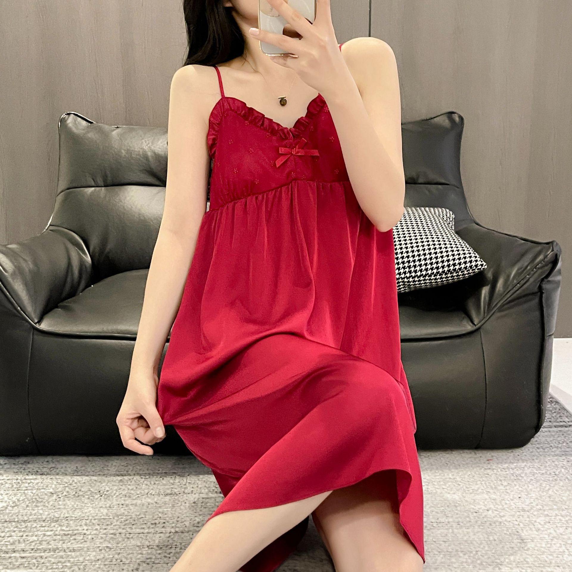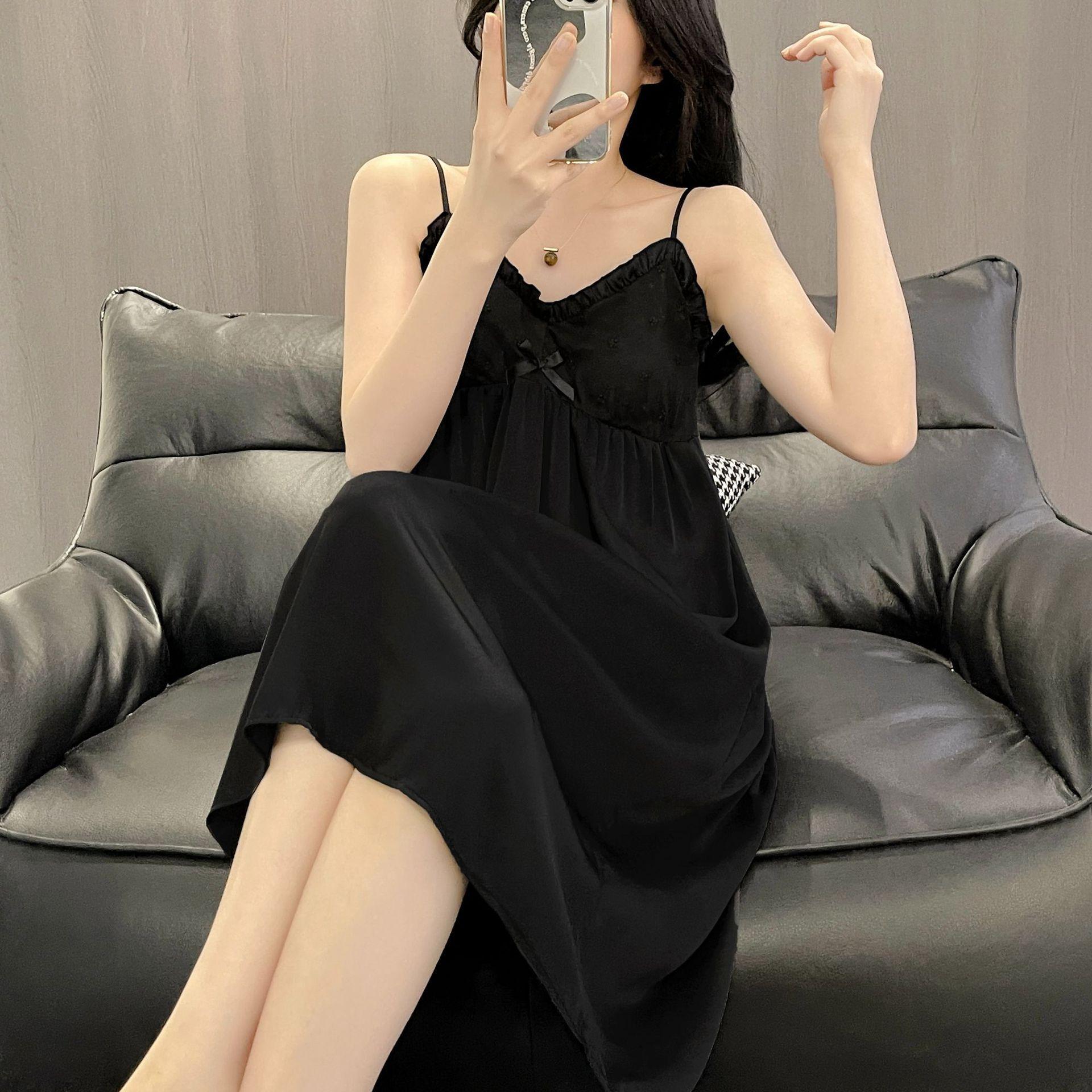 Camisón de Verano para Mujer con Almohadilla para el Pecho de Encaje de Hielo, Estilo Francés Delgado, Lujo Ligero, Deseo Puro, Sexy, Sensación de Alta Gama, Ropa para el Hogar para Niñas