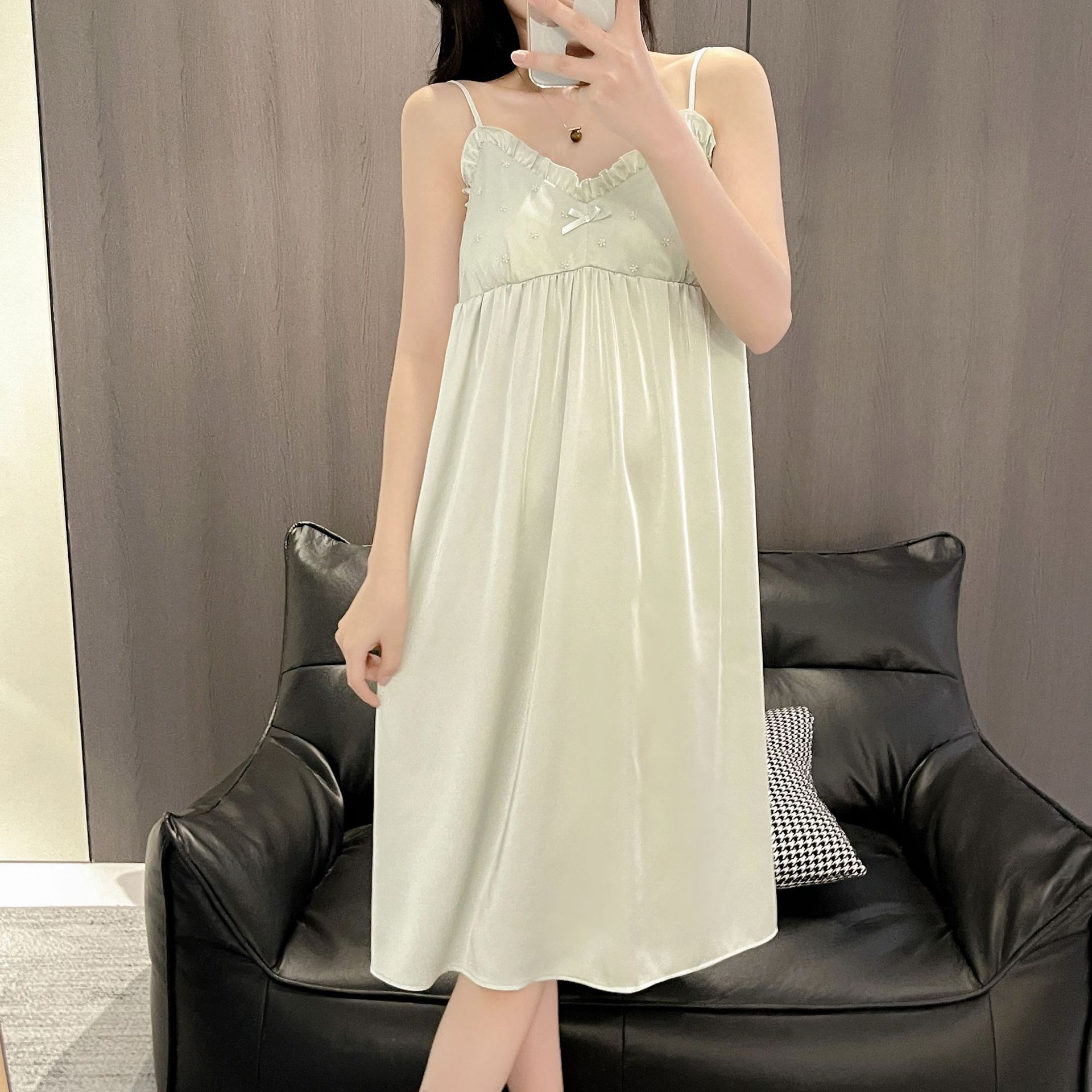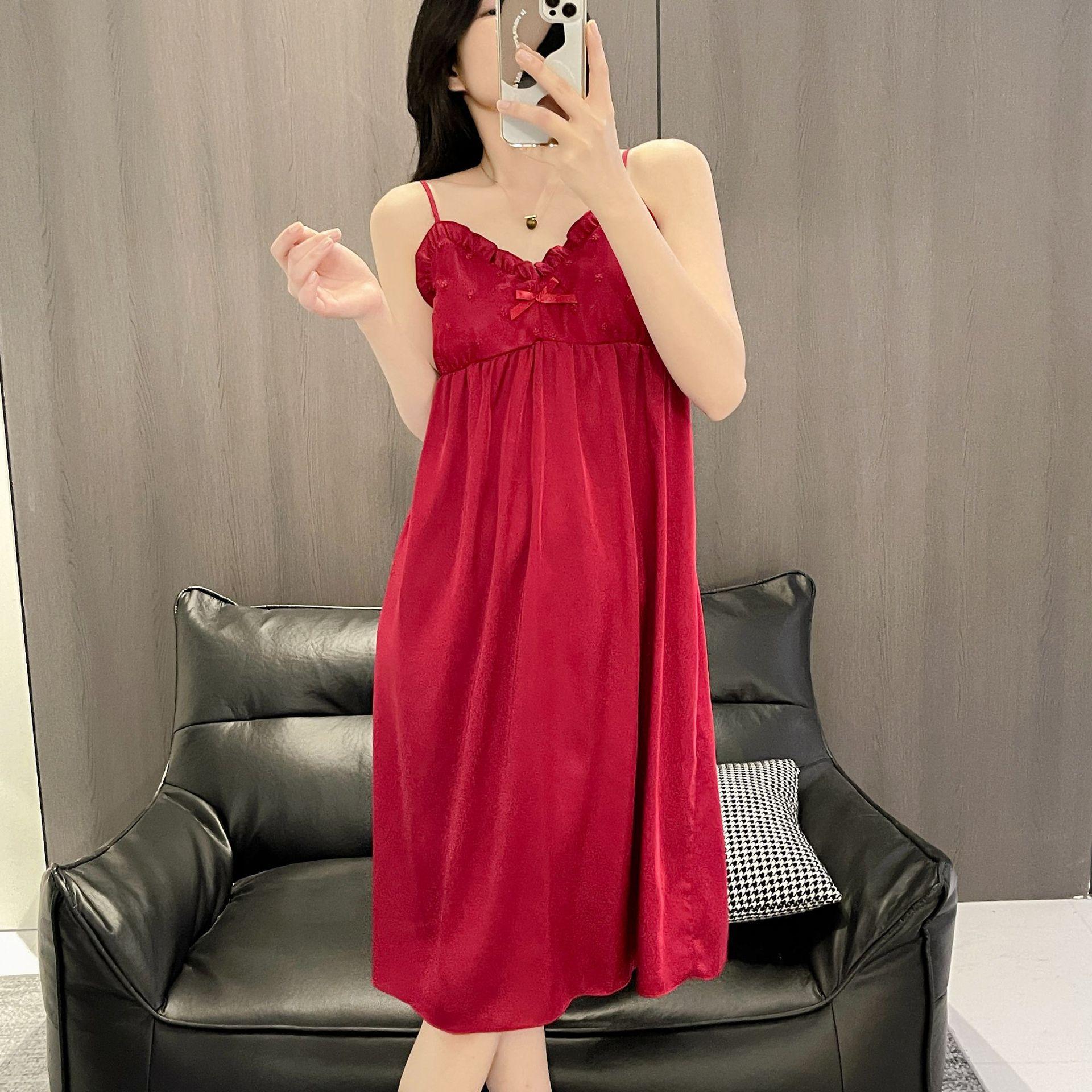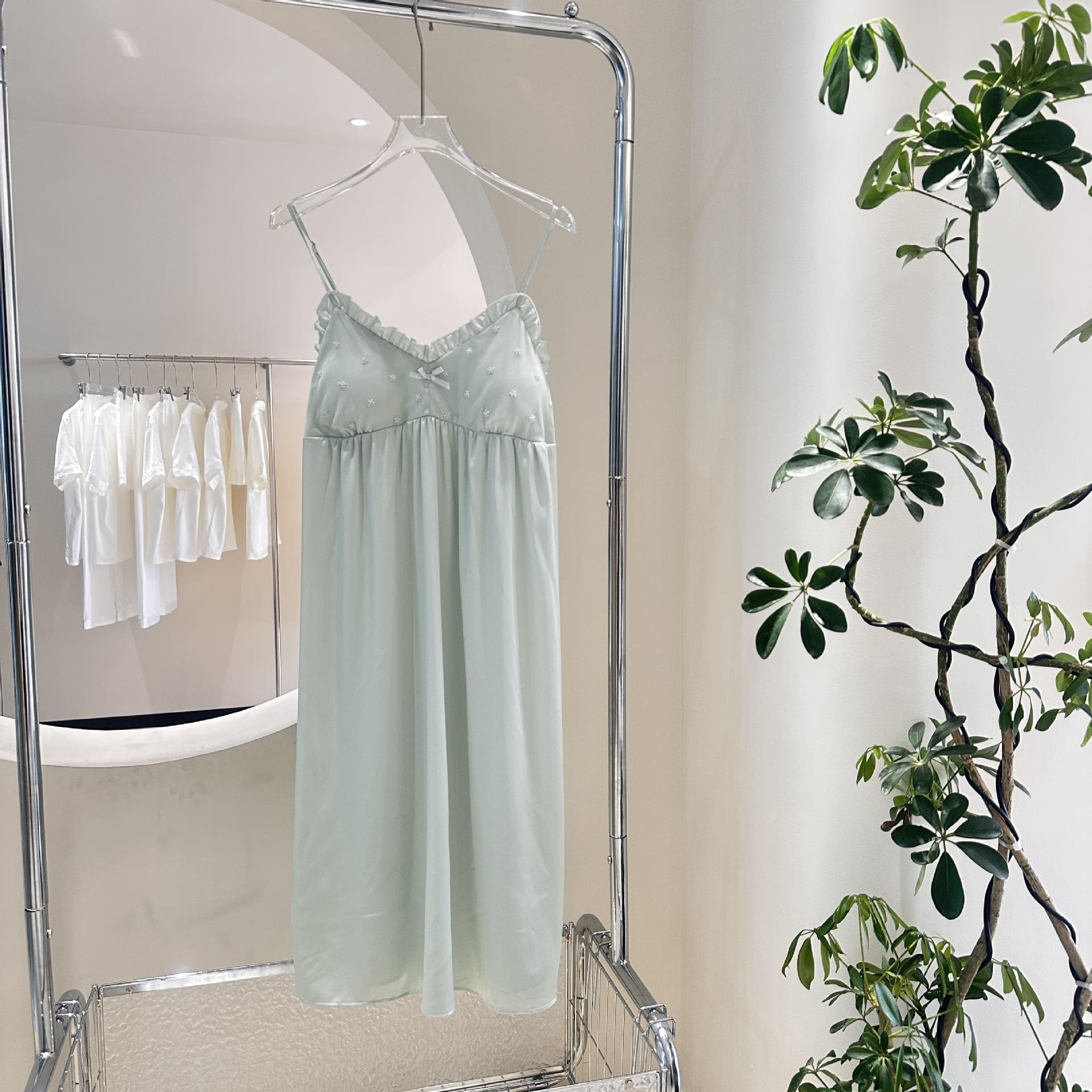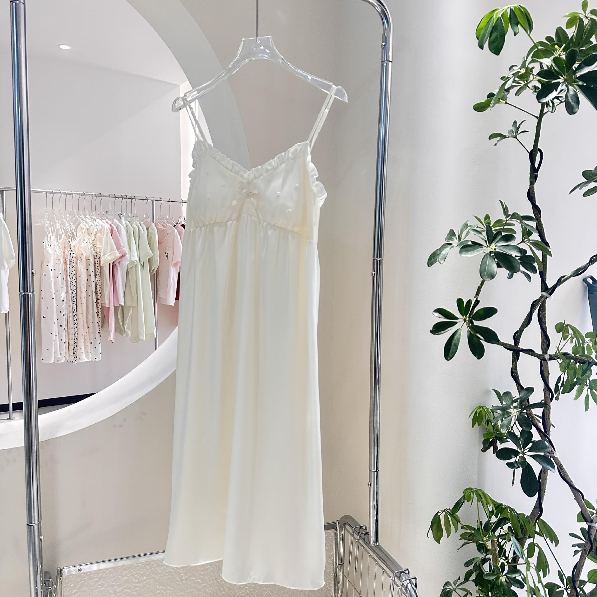 Camisón de Verano para Mujer con Almohadilla para el Pecho de Encaje de Hielo, Estilo Francés Delgado, Lujo Ligero, Deseo Puro, Sexy, Sensación de Alta Gama, Ropa para el Hogar para Niñas