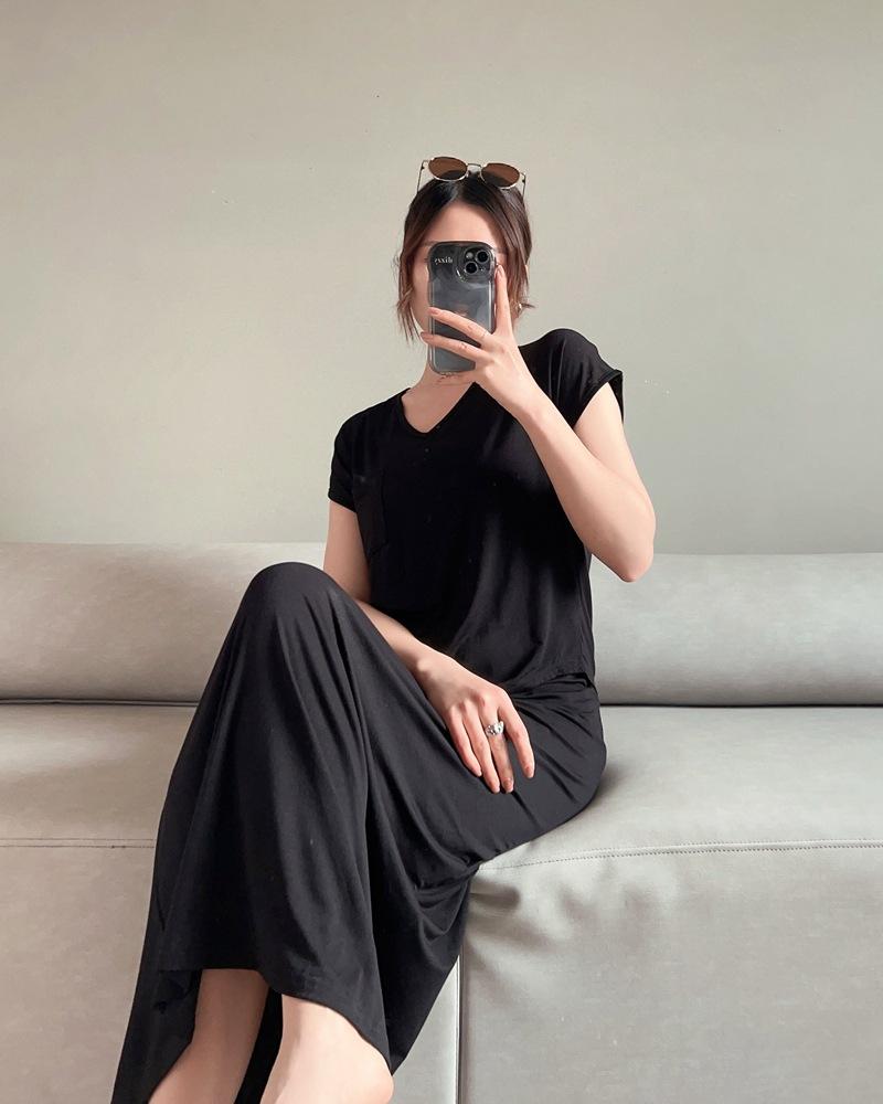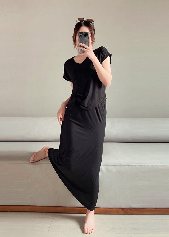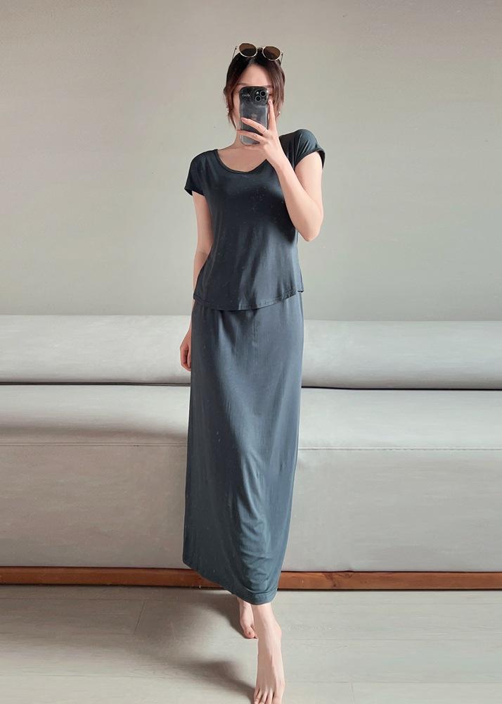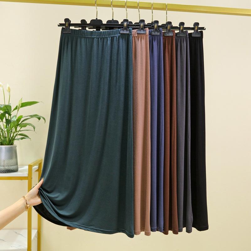 Falda Delgada de Verano Estilo Coreano Falda Larga de Modal Falda de Cintura Alta con Envoltura de Cadera Falda Larga de Color Sólido Falda Básica Ajustada