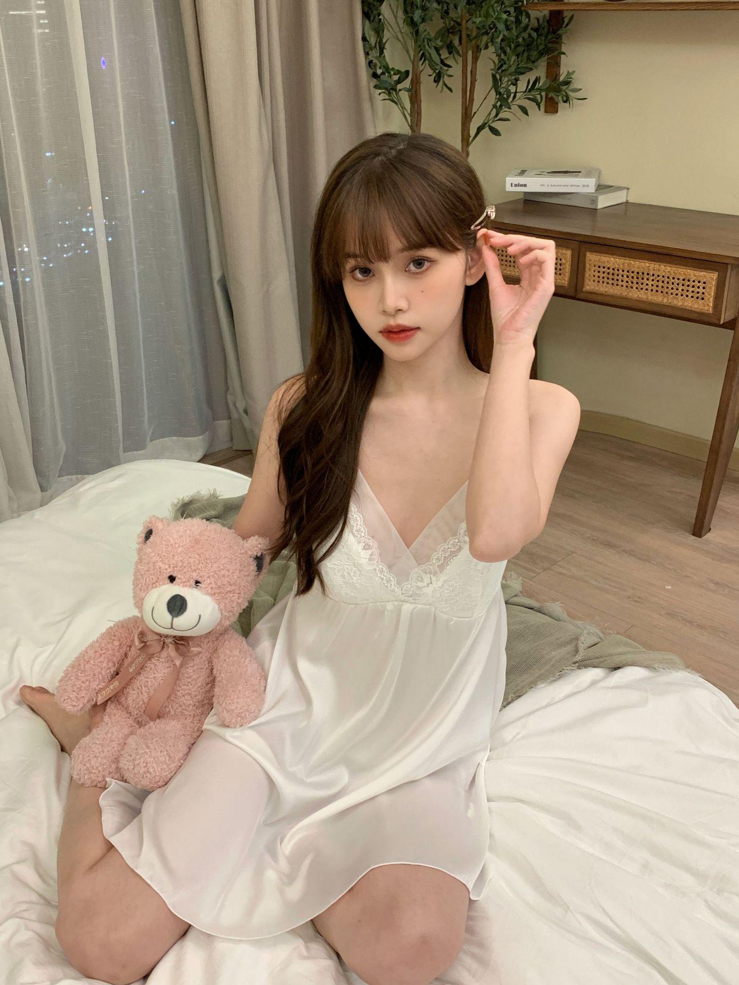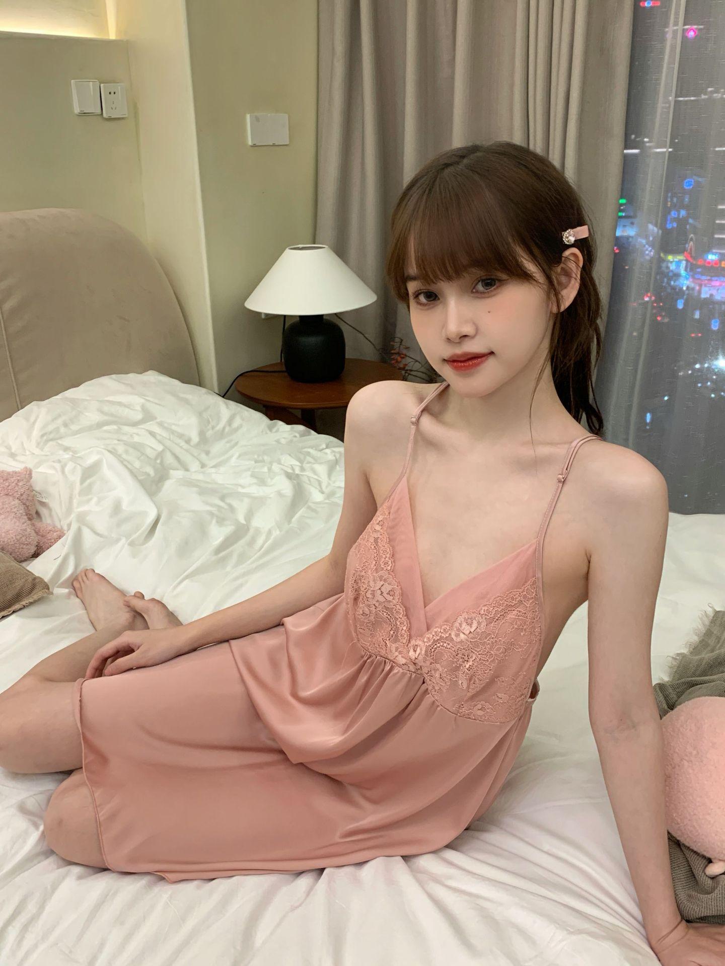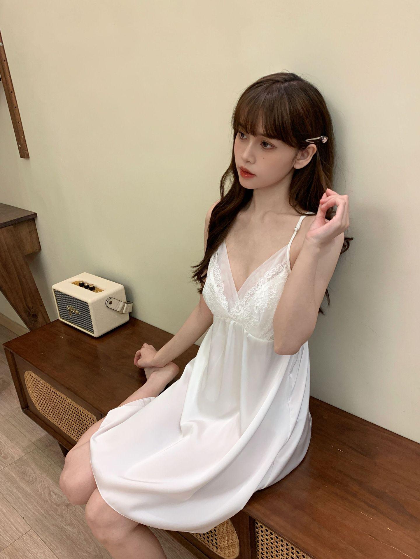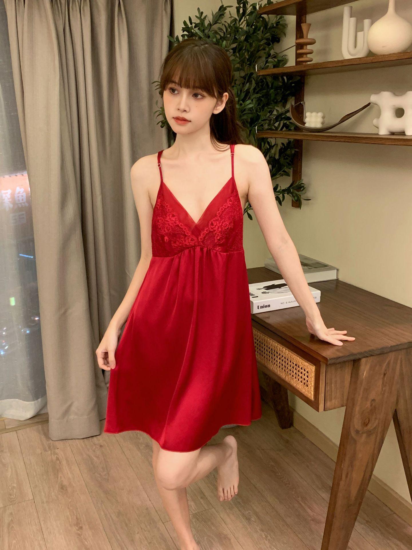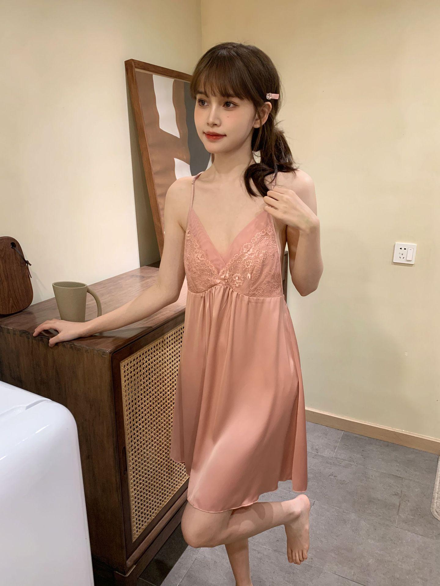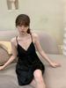 Camisón sexy de verano para mujer, pijama de seda helada con tirantes, estampado Pure Desire y almohadilla para el pecho, 2024