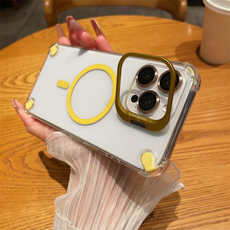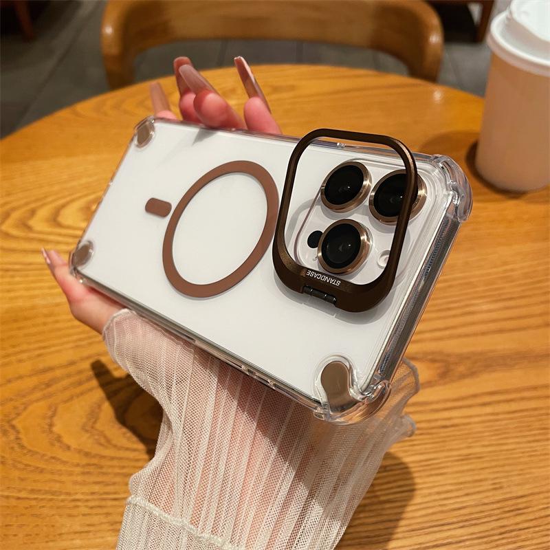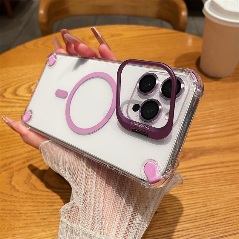Adecuado para Iphone17Promax Carcasa Magnética con Airbag para Teléfono Apple 16Pro Soporte para Lente 15 Cubierta Protectora