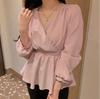 Camisa Chic de Chifón Estilo Coreano con Cintura Ajustable con Cordones para Mujer Primavera y Otoño 2025 Nueva Top Elegante Super Hada de Manga Larga con Cuello en V