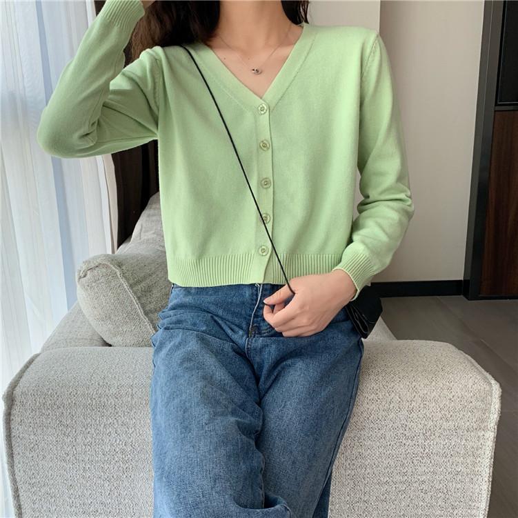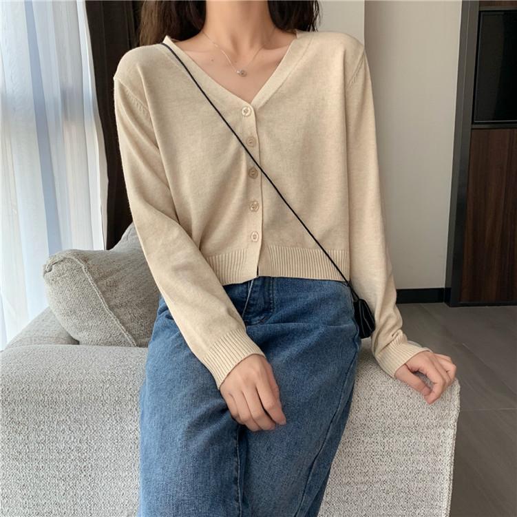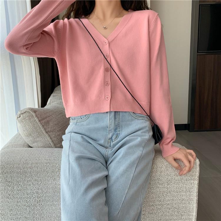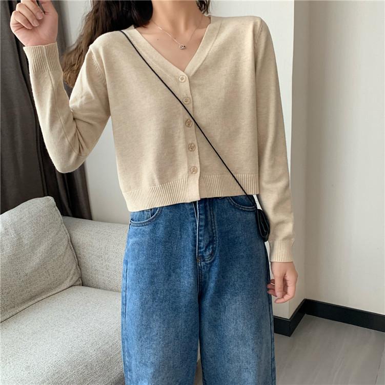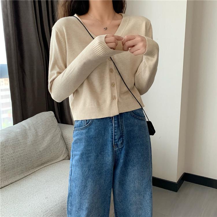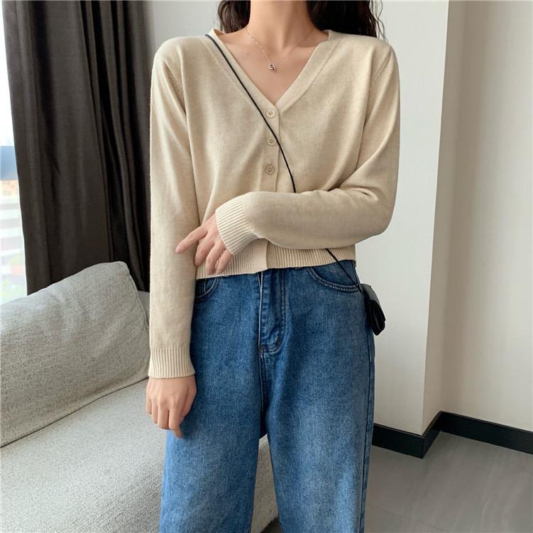 Cárdigan de punto para mujer, estilo coreano, primavera y otoño, cuello en V corto, manga larga, fino, 2023