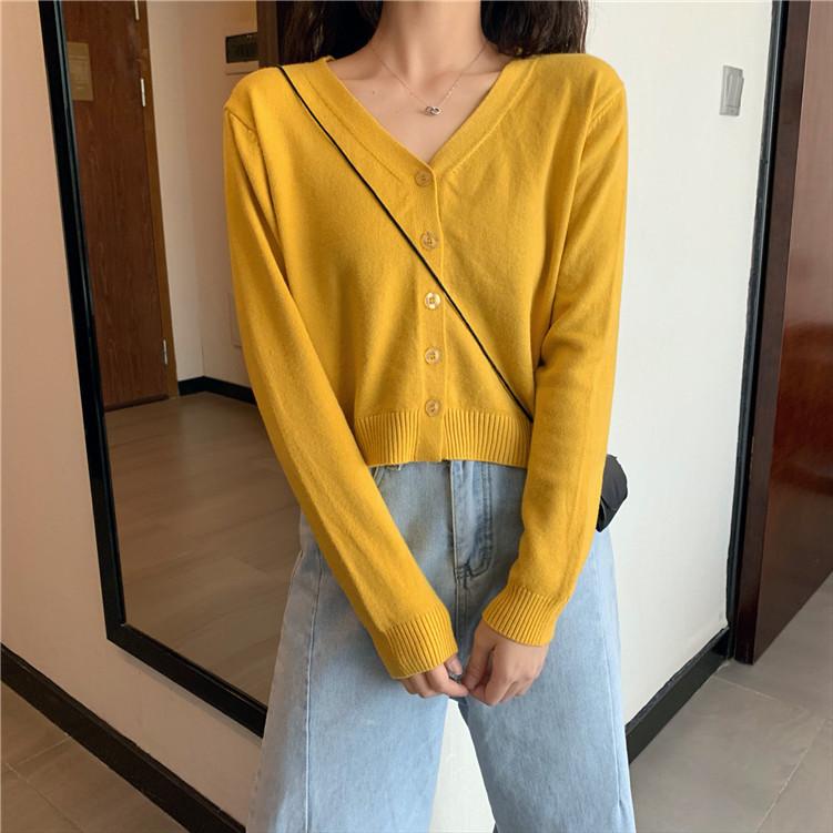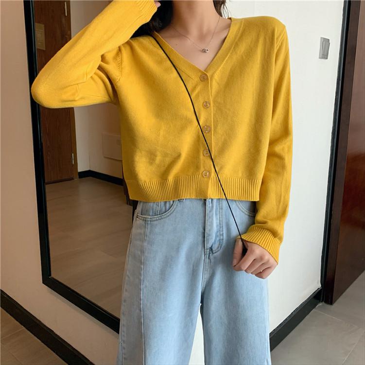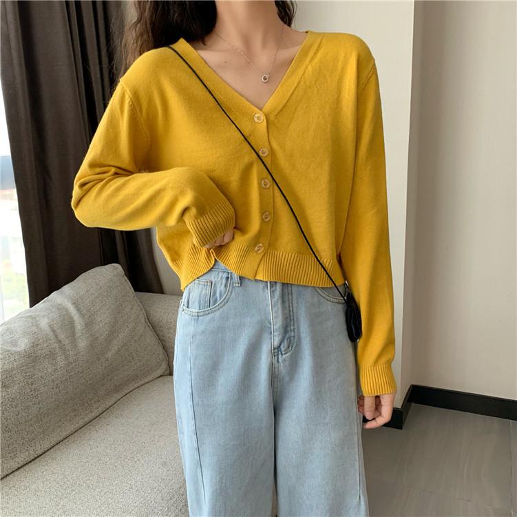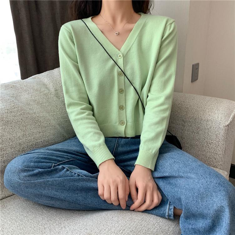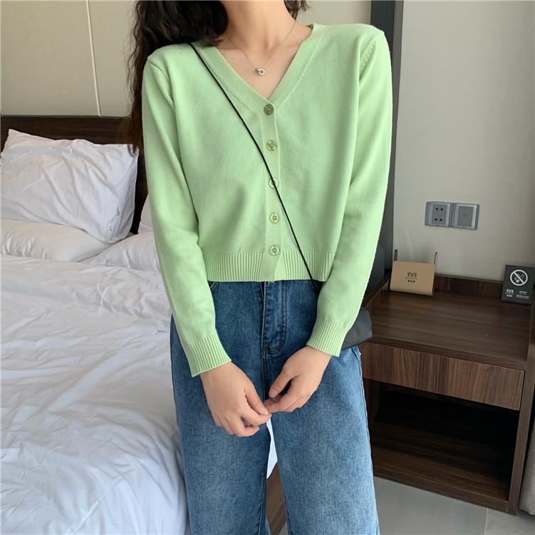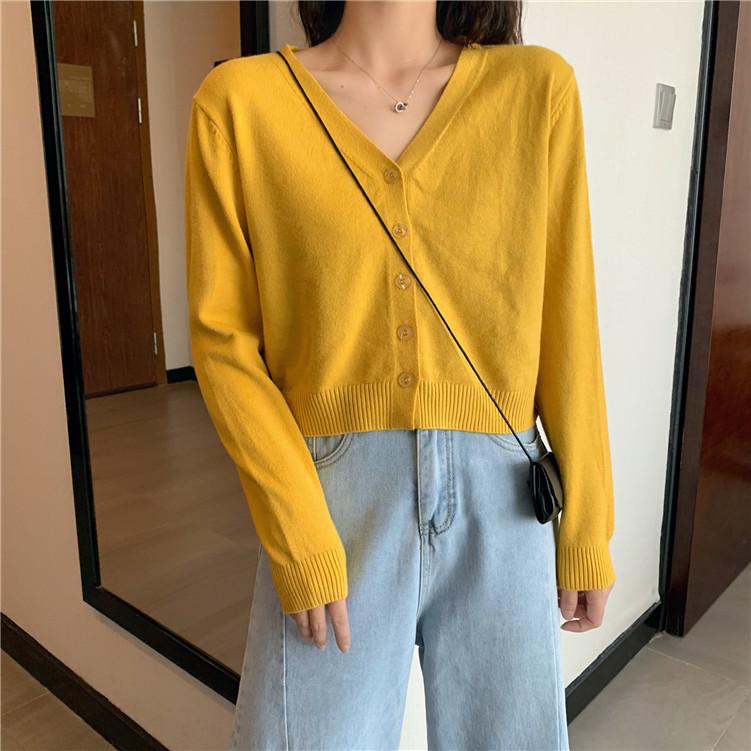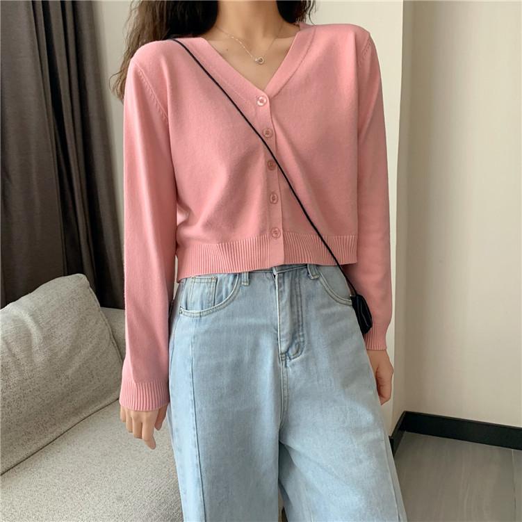 Cárdigan de punto para mujer, estilo coreano, primavera y otoño, cuello en V corto, manga larga, fino, 2023