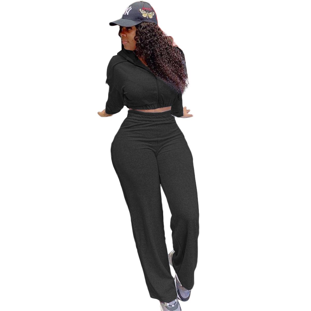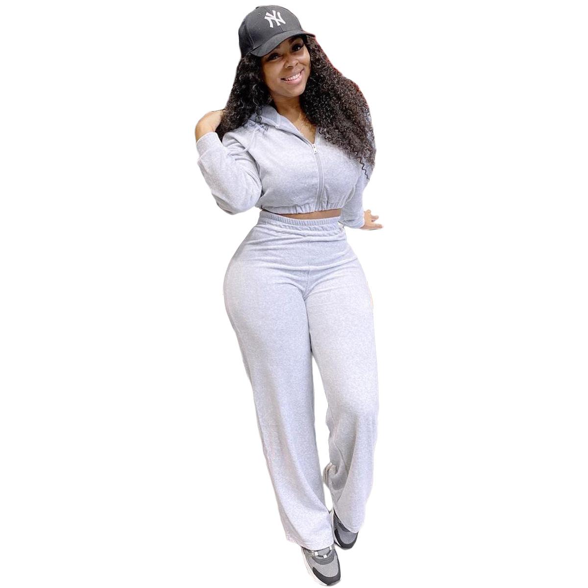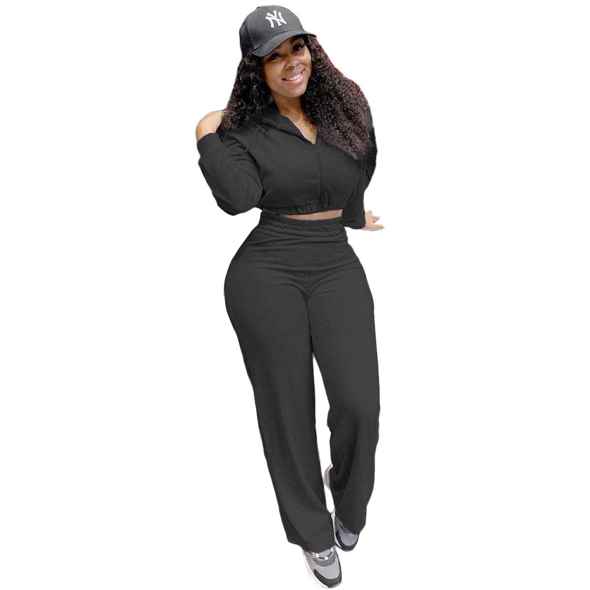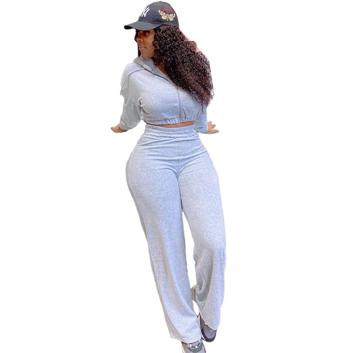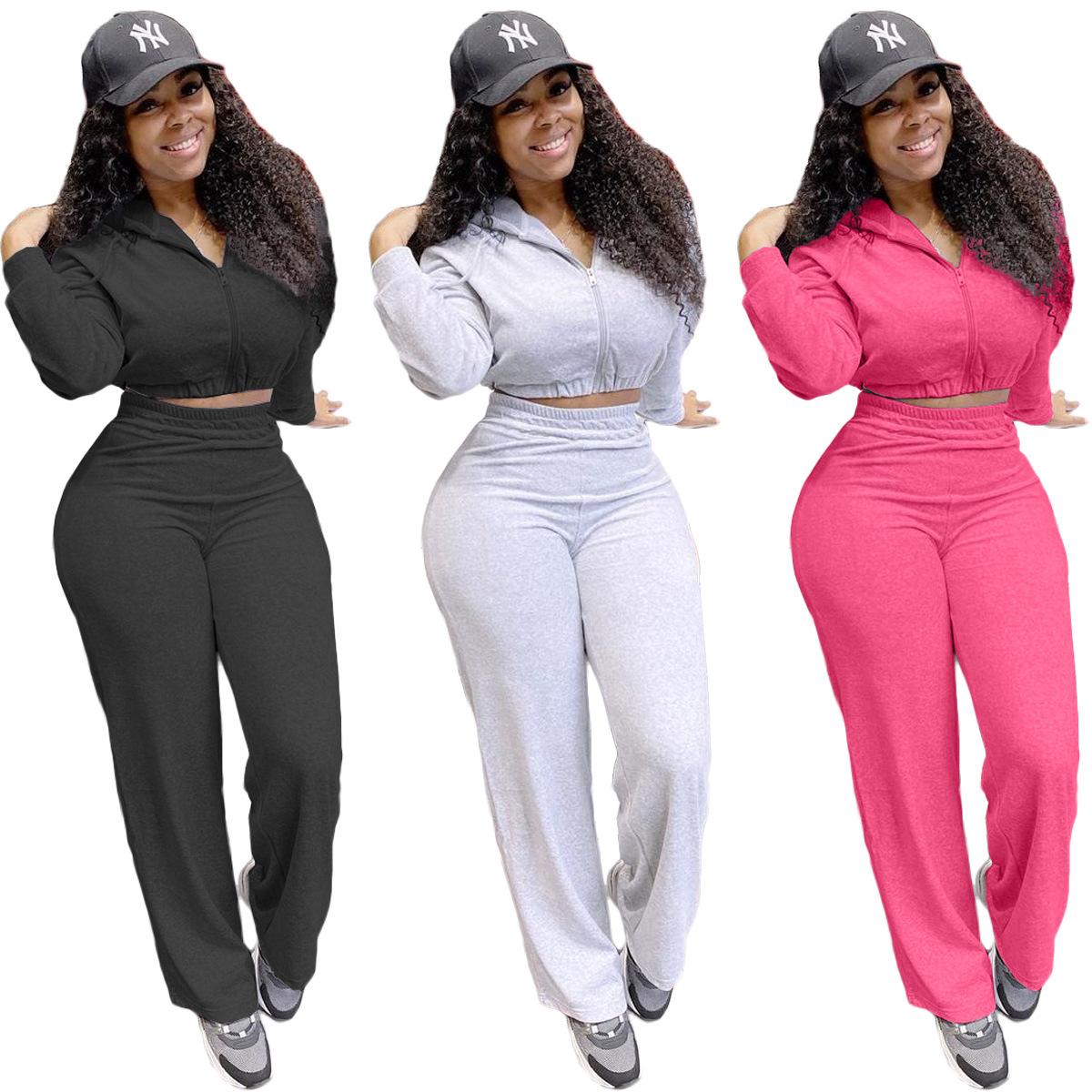 Suéter de color sólido para mujer, traje de ocio urbano de otoño e invierno de 2020, pantalones de moda, traje de manga larga, venta al por mayor para mujer