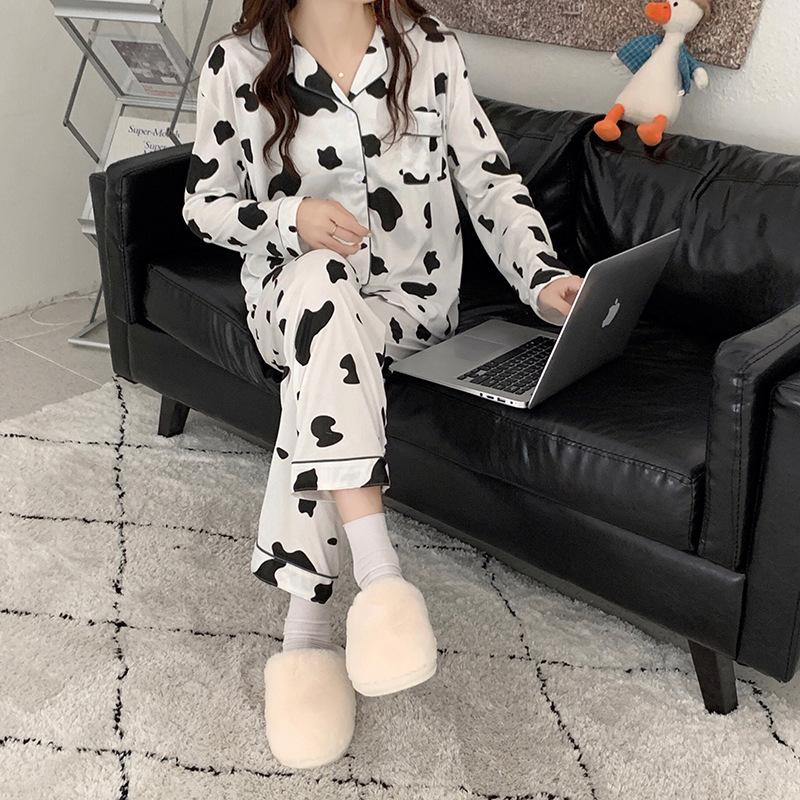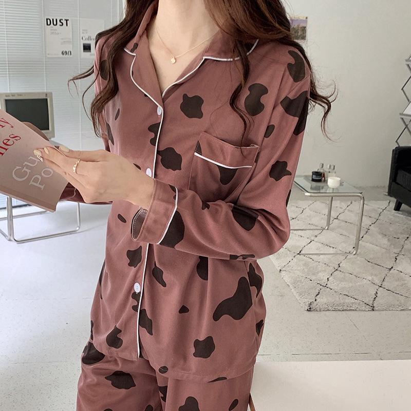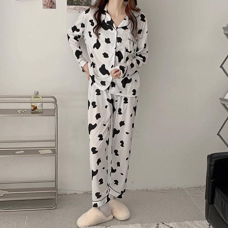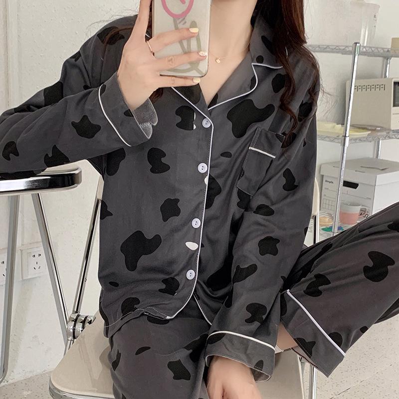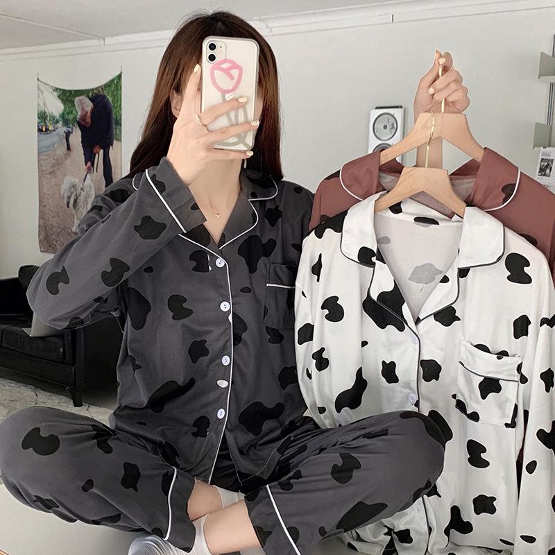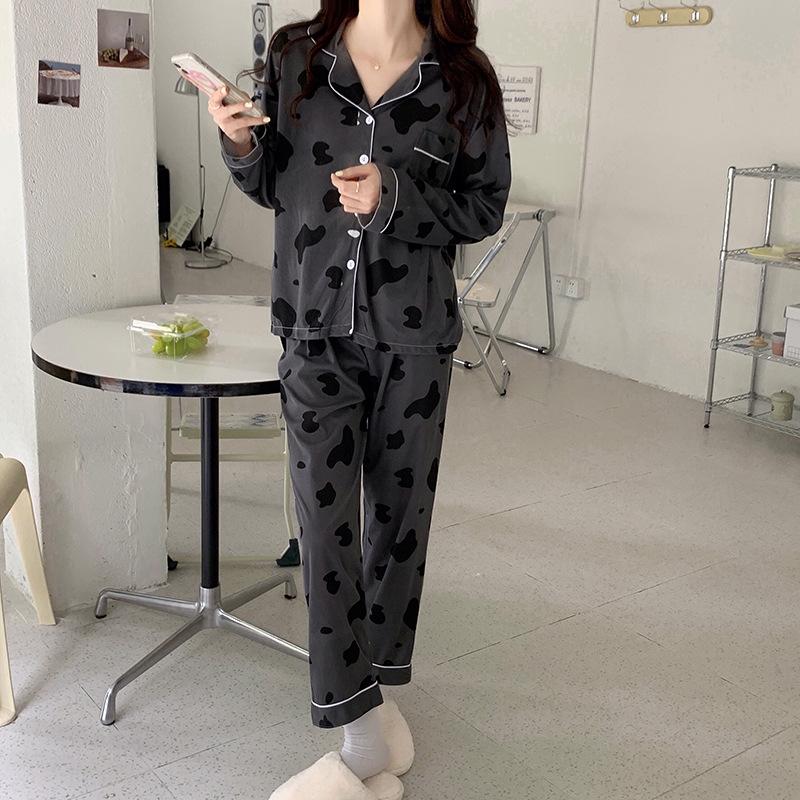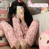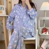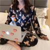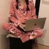Pijamas de primavera para mujer, de manga larga, estilo coreano, con bonitos dibujos animados, ropa holgada para el hogar, ideal para microempresas y celebridades de Internet.