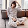 Pijamas a cuadros para mujer, estilo japonés, versión coreana, ropa de casa de manga larga, ropa para exteriores, venta al por mayor transfronteriza.