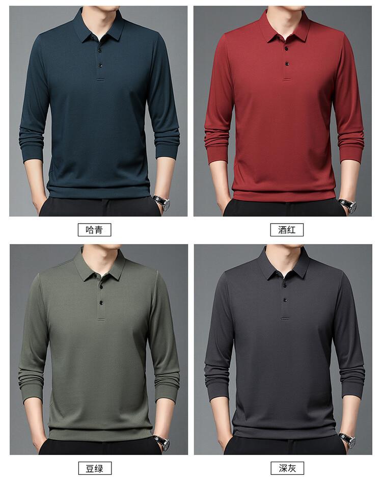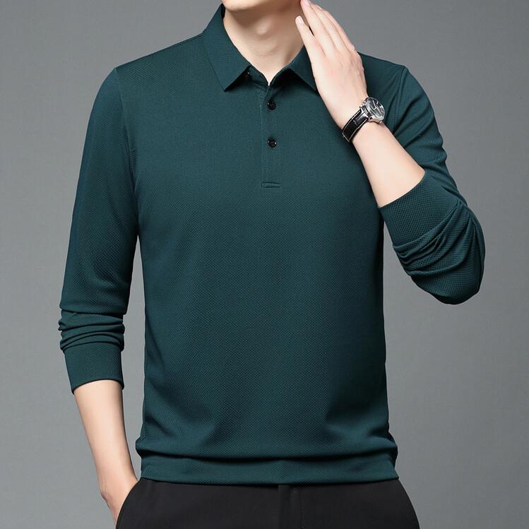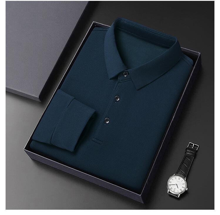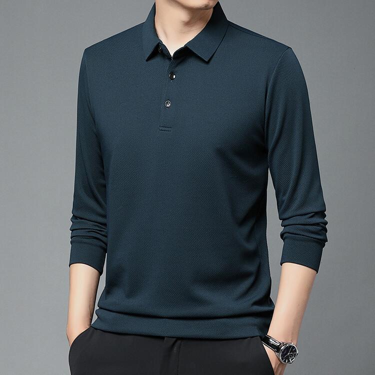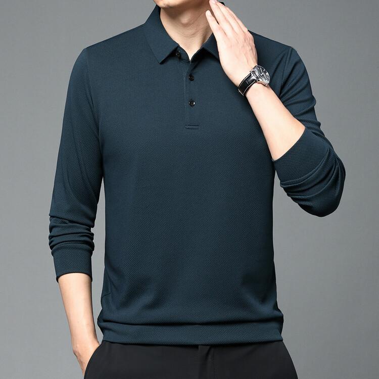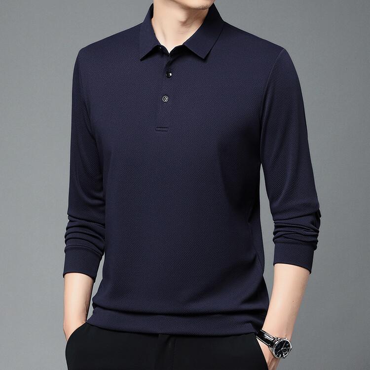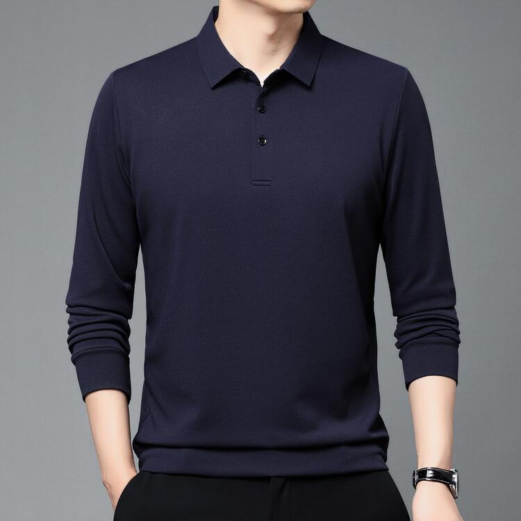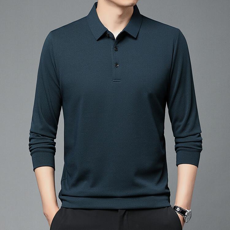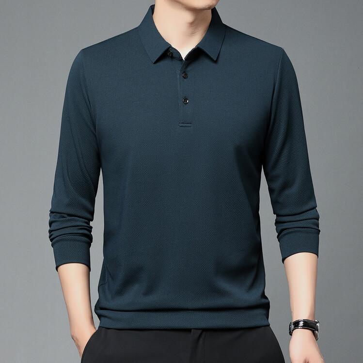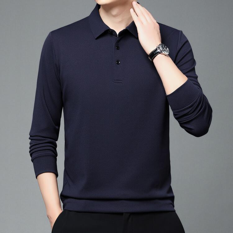 Compra 2025 otoño piña camiseta de manga larga para hombre azul color sólido polo de solapa chaqueta casual para hombre al por mayor al por mayor en Joom.pro