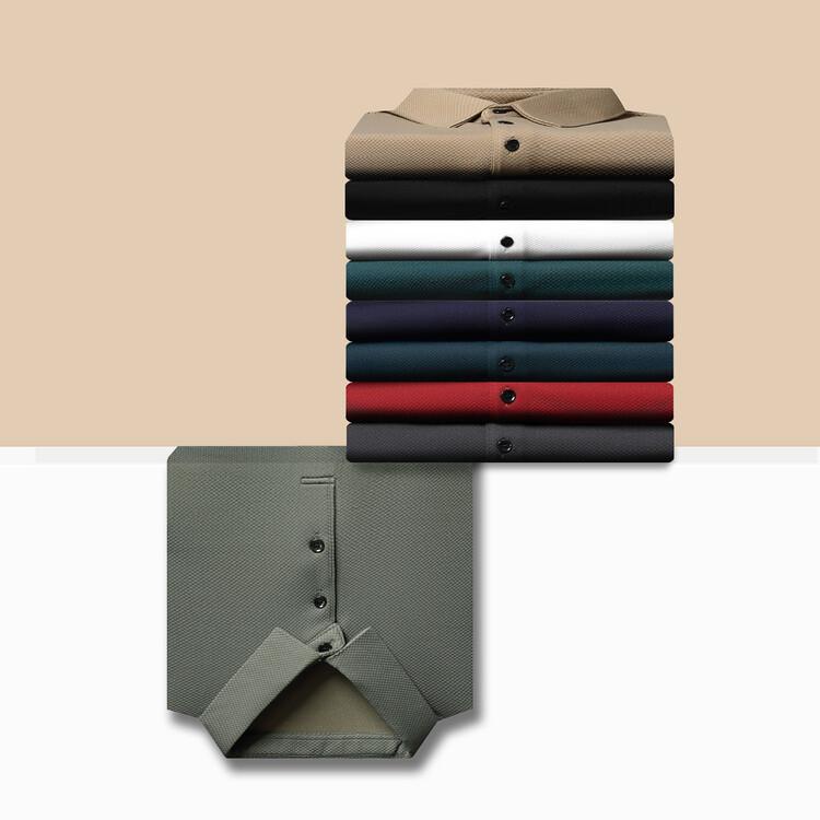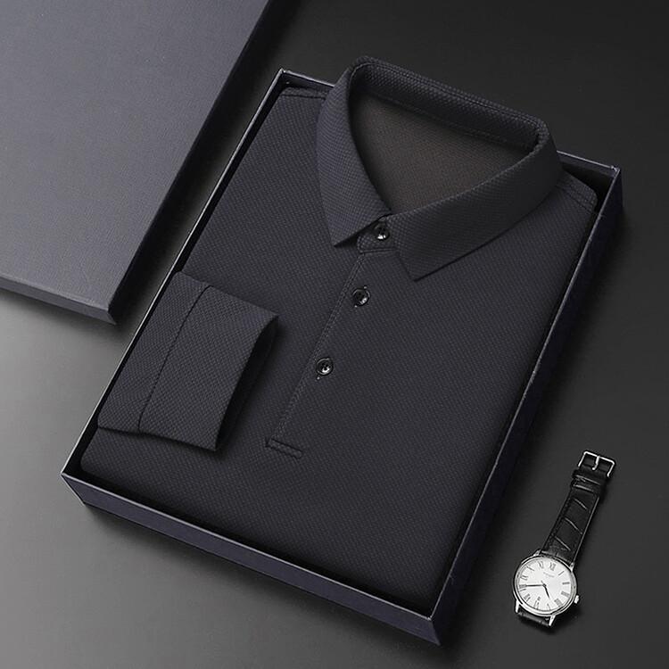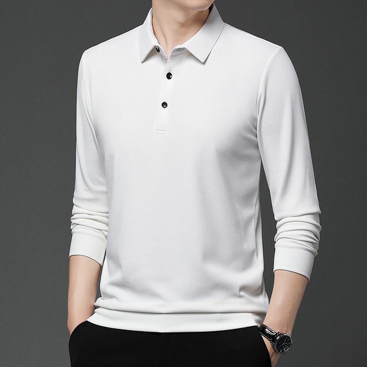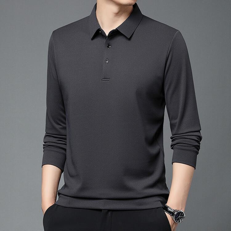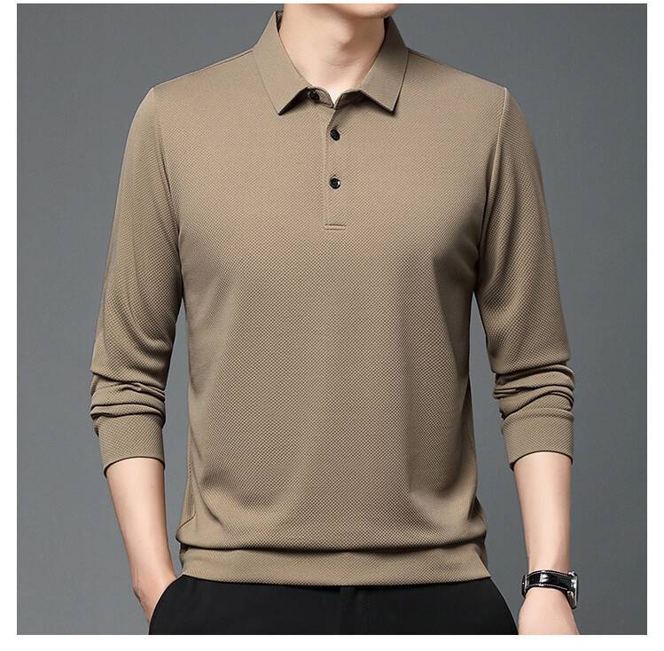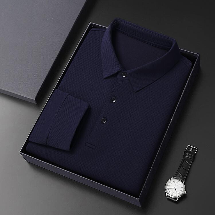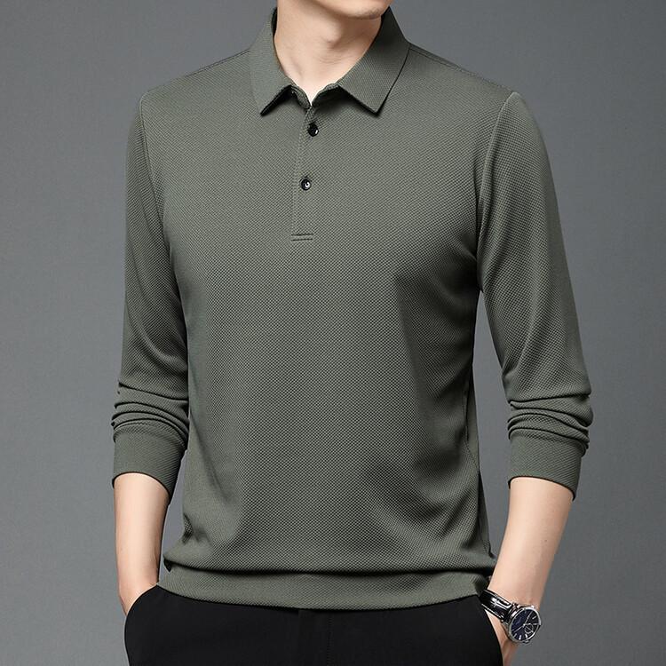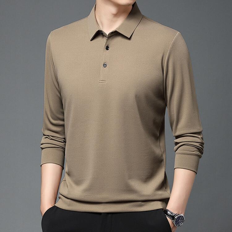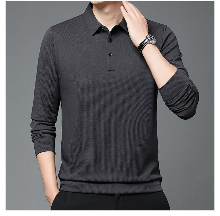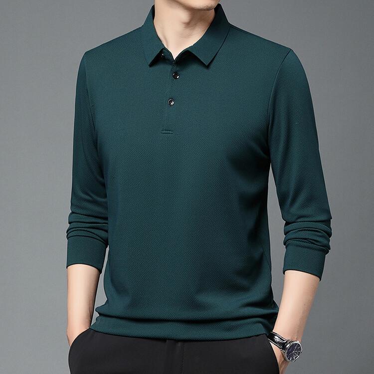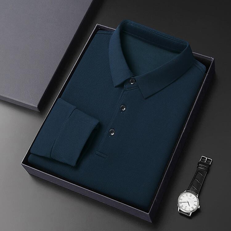 Compra 2025 otoño piña camiseta de manga larga para hombre azul color sólido polo de solapa chaqueta casual para hombre al por mayor al por mayor en Joom.pro