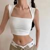 Ropa de verano europea y americana para mujer, nueva, de color puro, con ombligo descubierto, tirantes de imitación, camiseta de fondo, estilo de chica atractiva, venta al por mayor transfronteriza