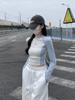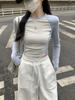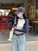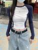 Sentido del Diseño 2025 Nuevo Otoño Estilo Coreano Slim Raglán Diseño de Empalme de Color en Contraste Camiseta de Manga Larga Top de Mujer