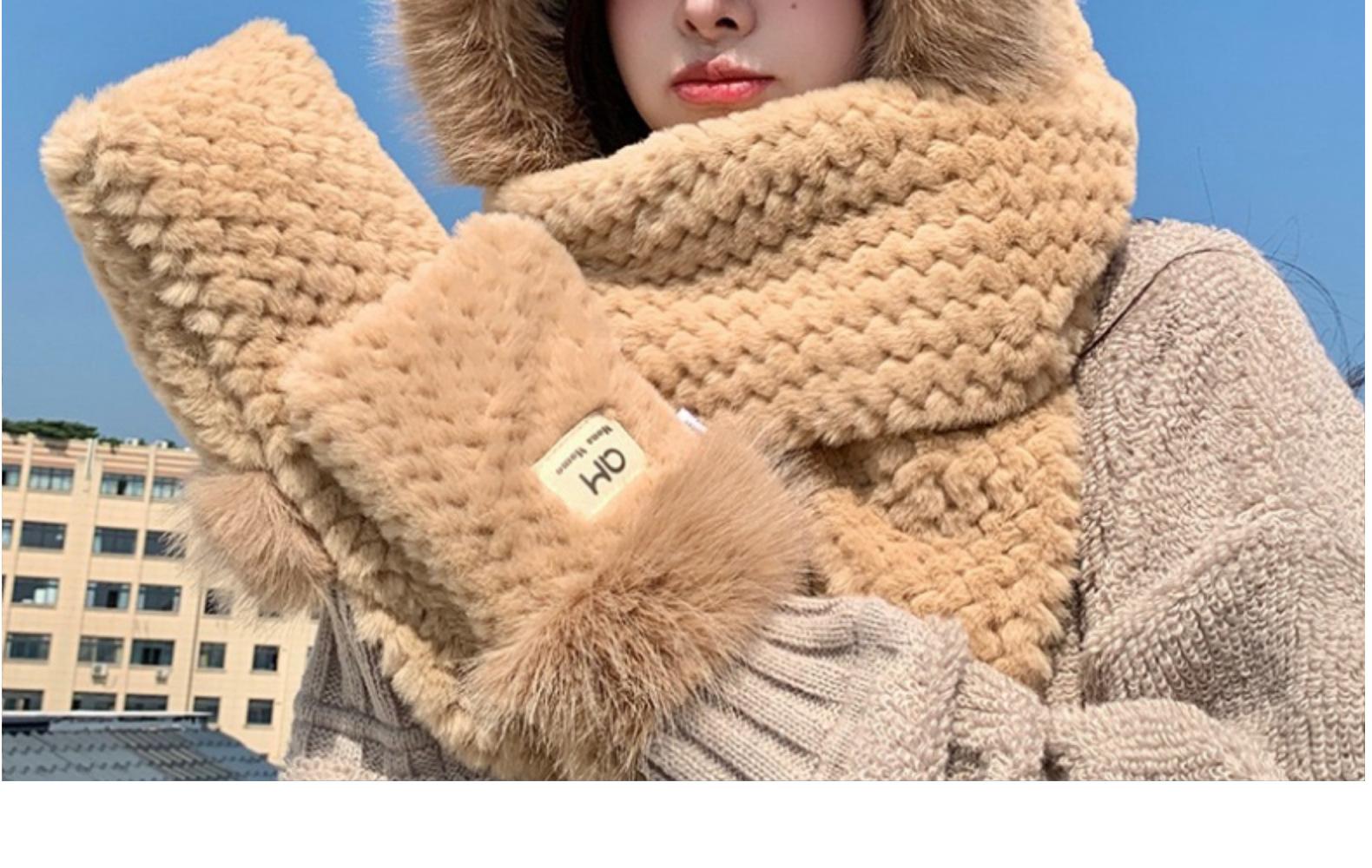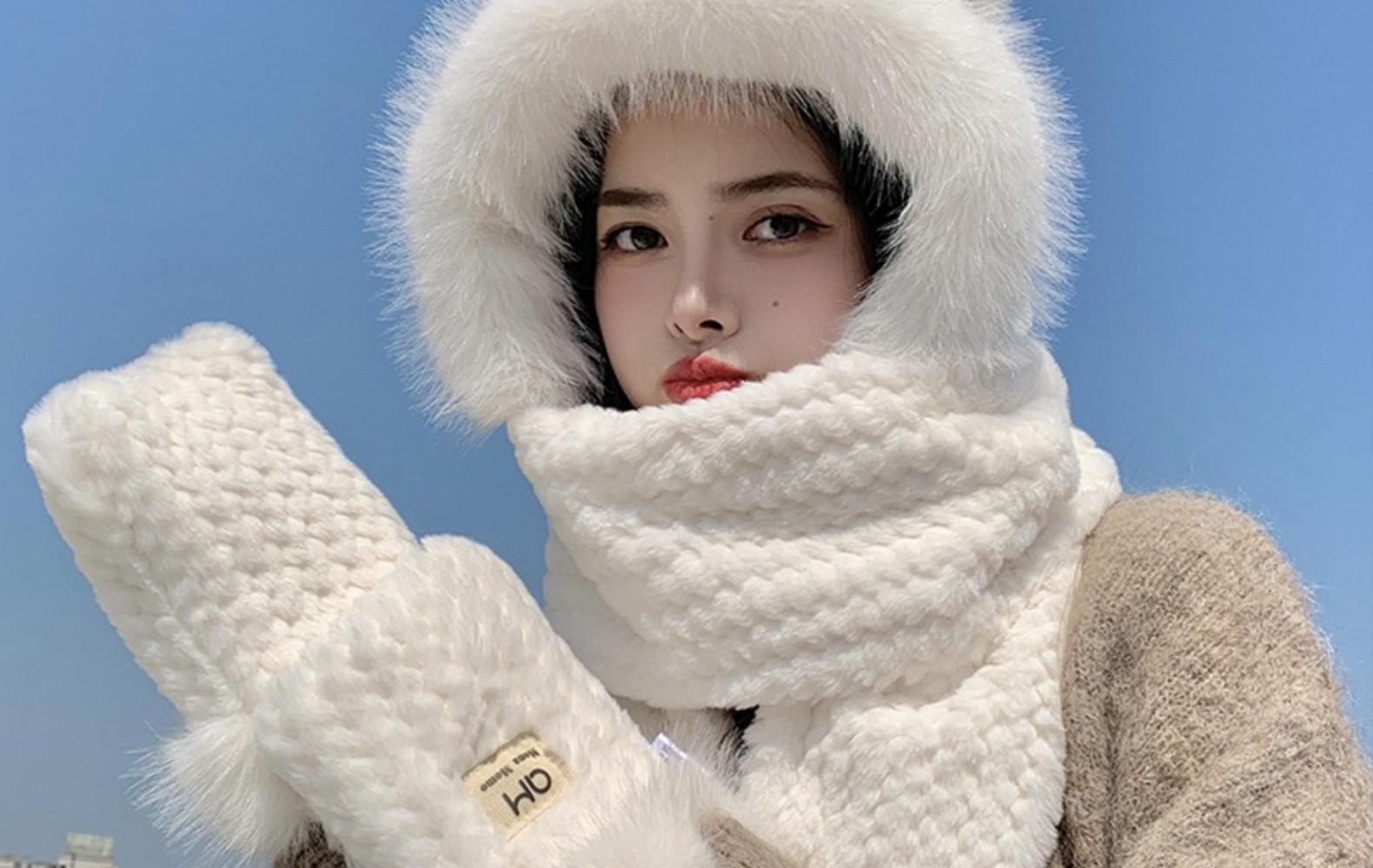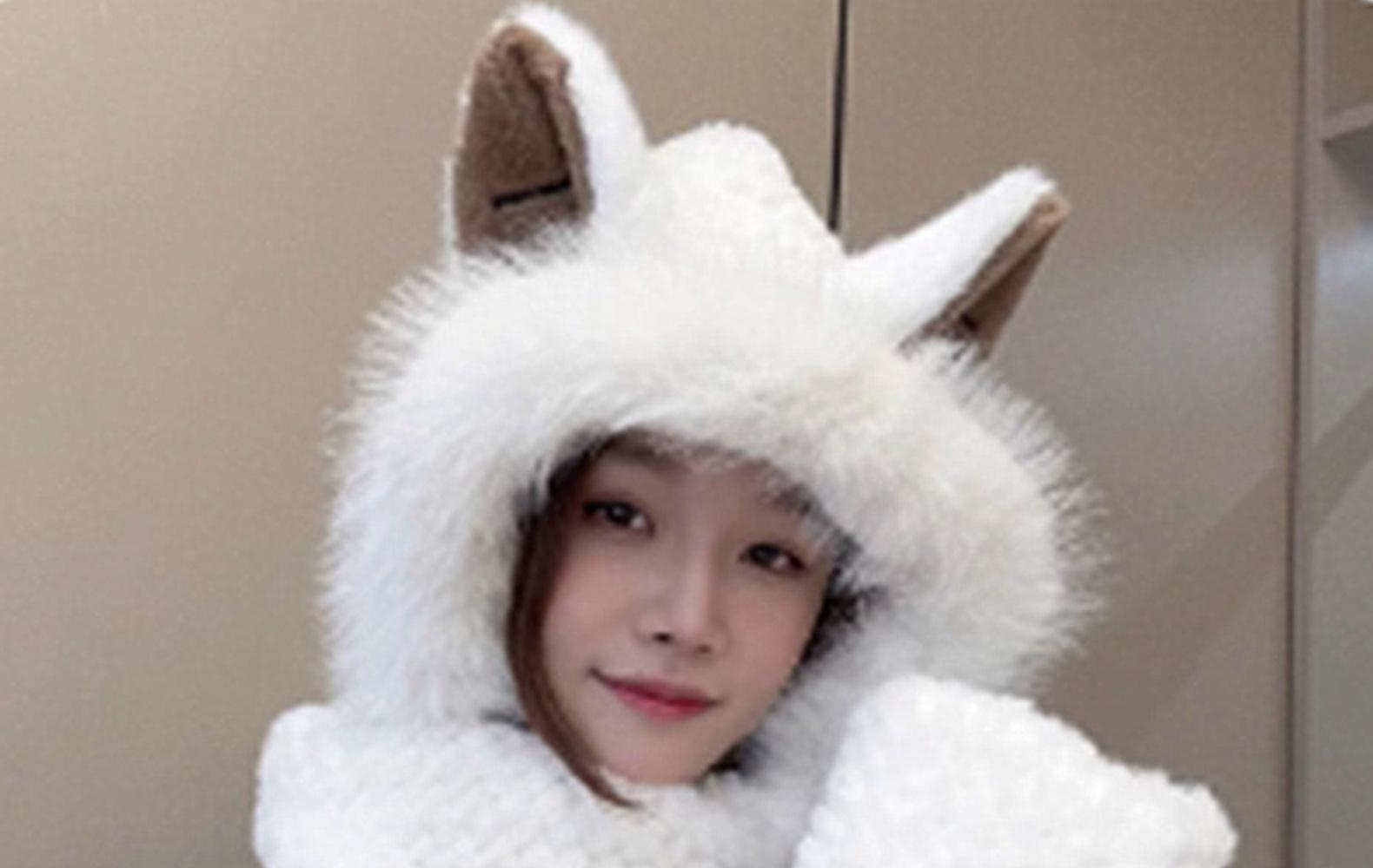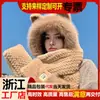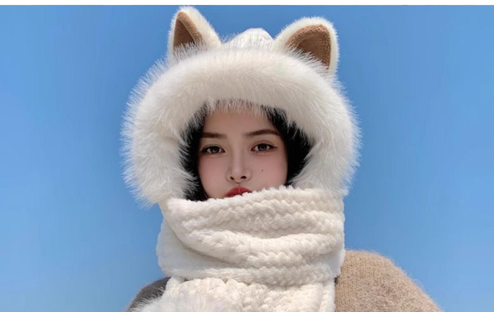 Gorro de invierno para mujer, bufanda, guantes, gorro todo en uno, orejas de zorro, resistente al frío y cálido, gorro tipo pulvet, bonito gorro tipo jersey combinable.