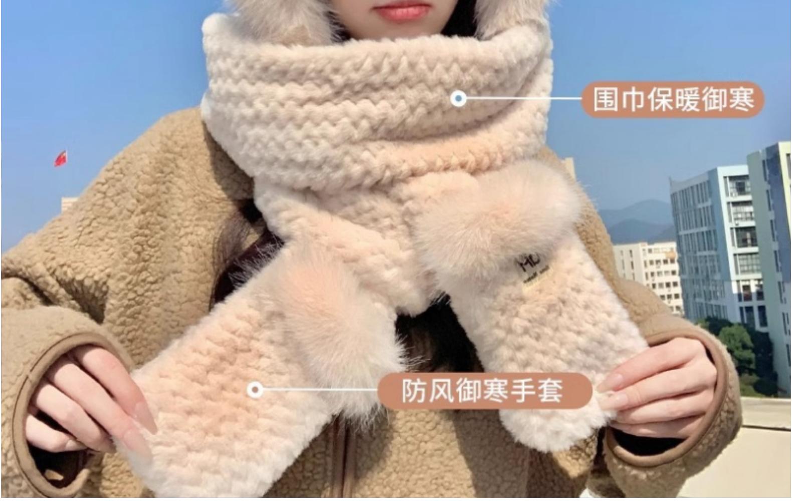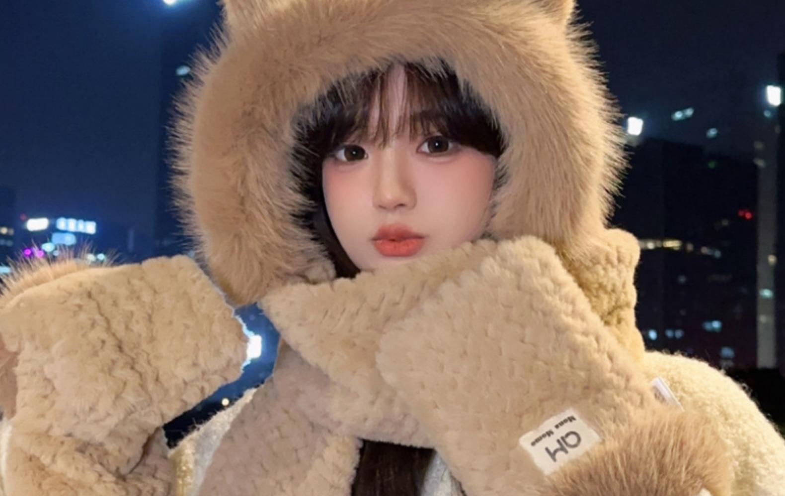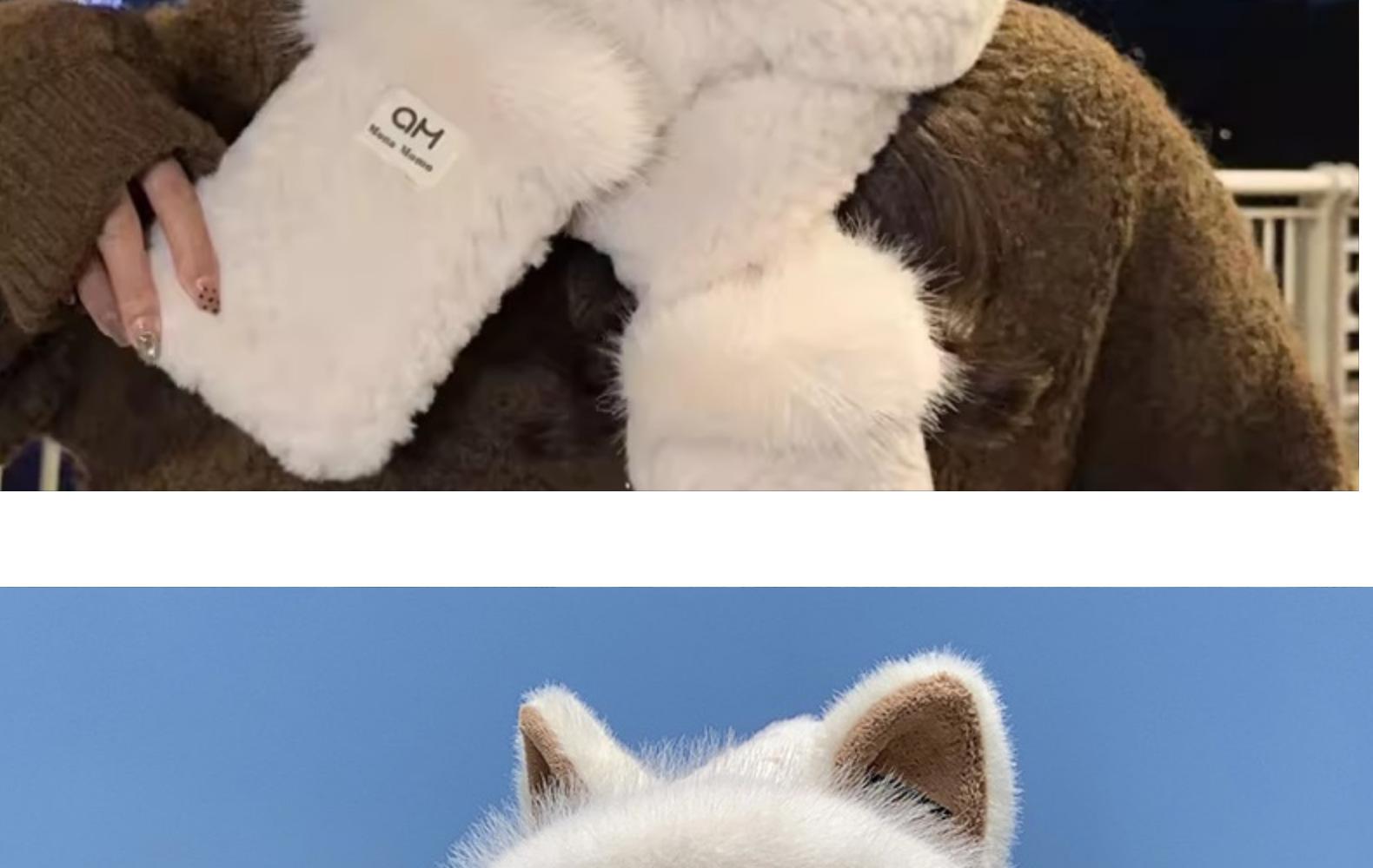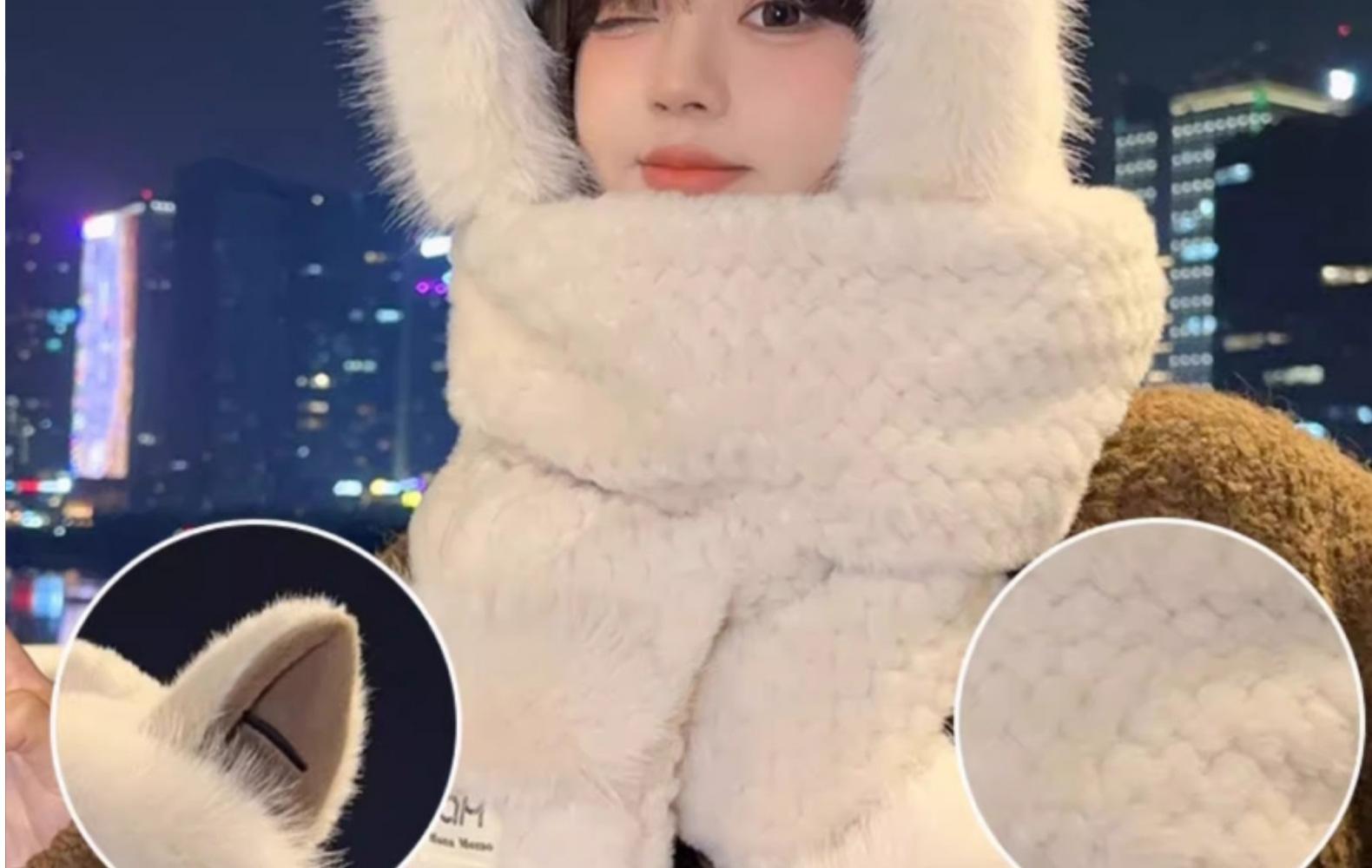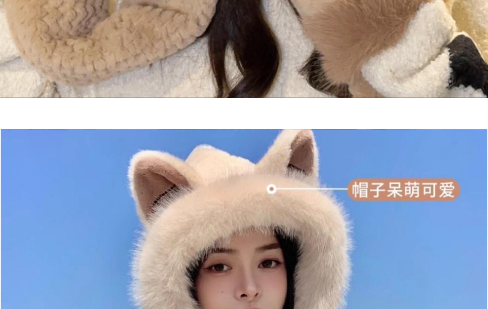 Gorro de invierno para mujer, bufanda, guantes, gorro todo en uno, orejas de zorro, resistente al frío y cálido, gorro tipo pulvet, bonito gorro tipo jersey combinable.