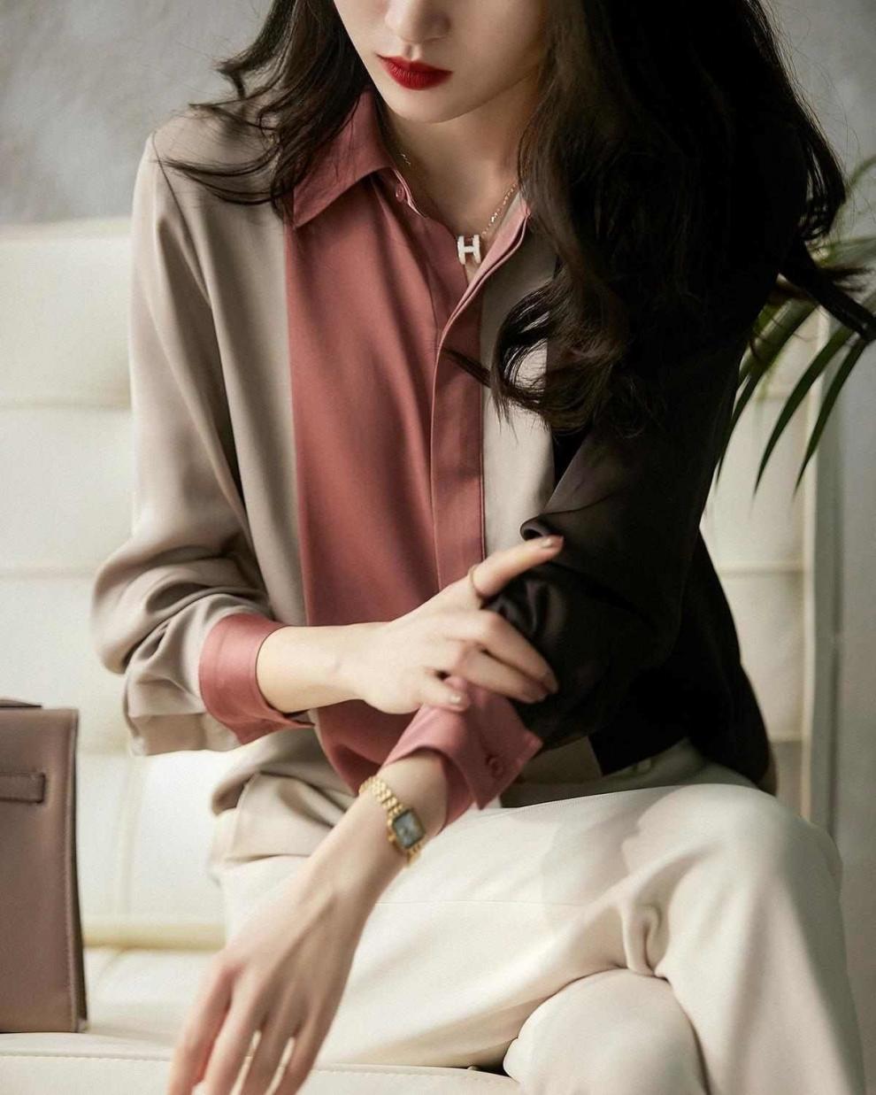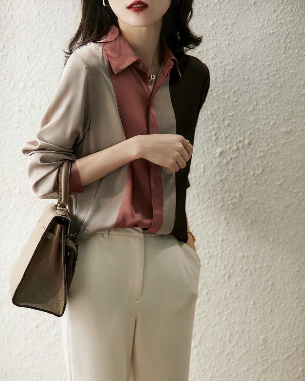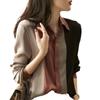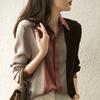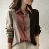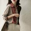 Camisa Color Block Manga Larga Mujer Otoño 2024 Nuevo Estilo Camisa Holgada Estilo Occidental Nicho Camisa de Gasa Ropa de Negocios Top para Mujer