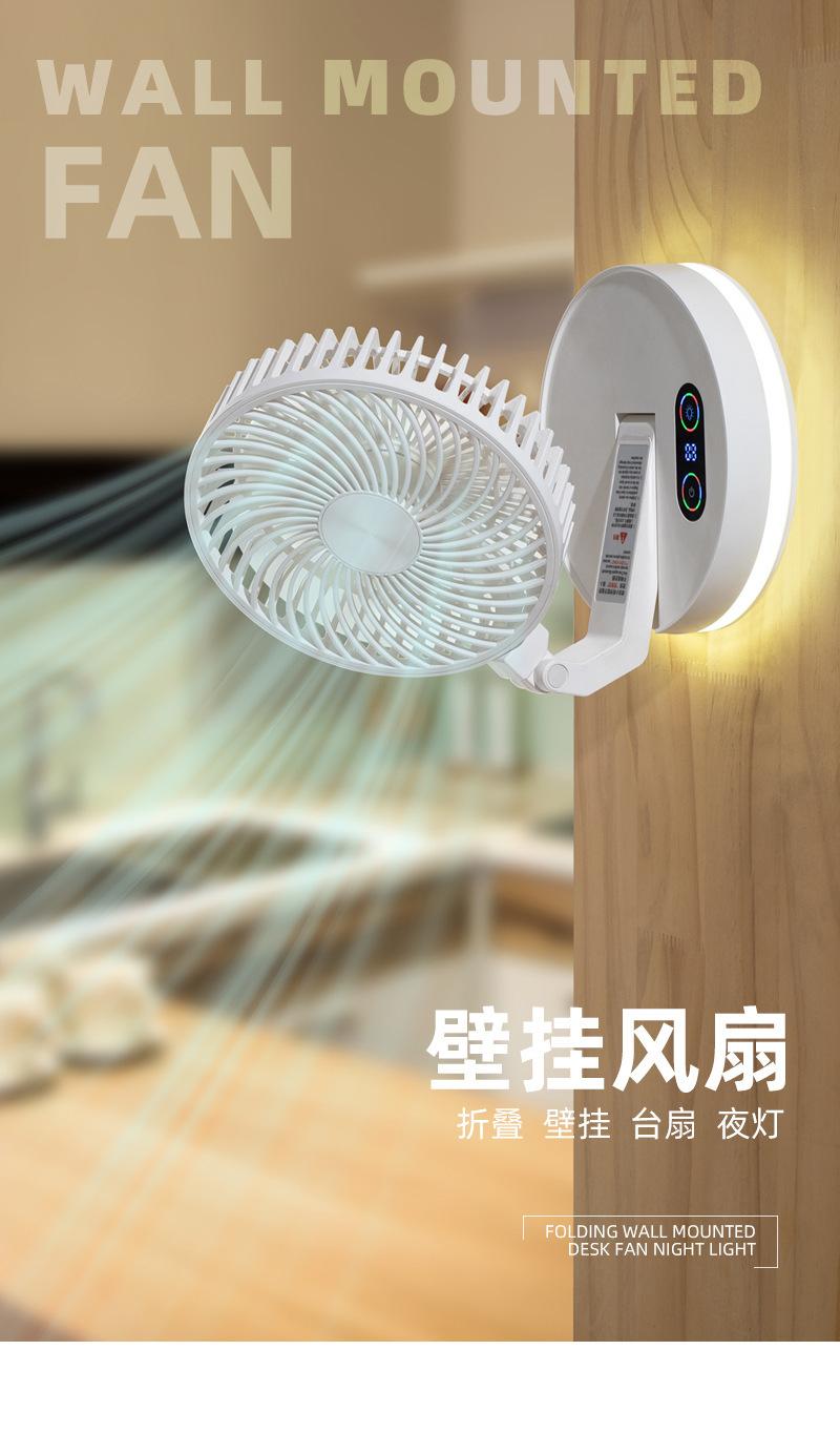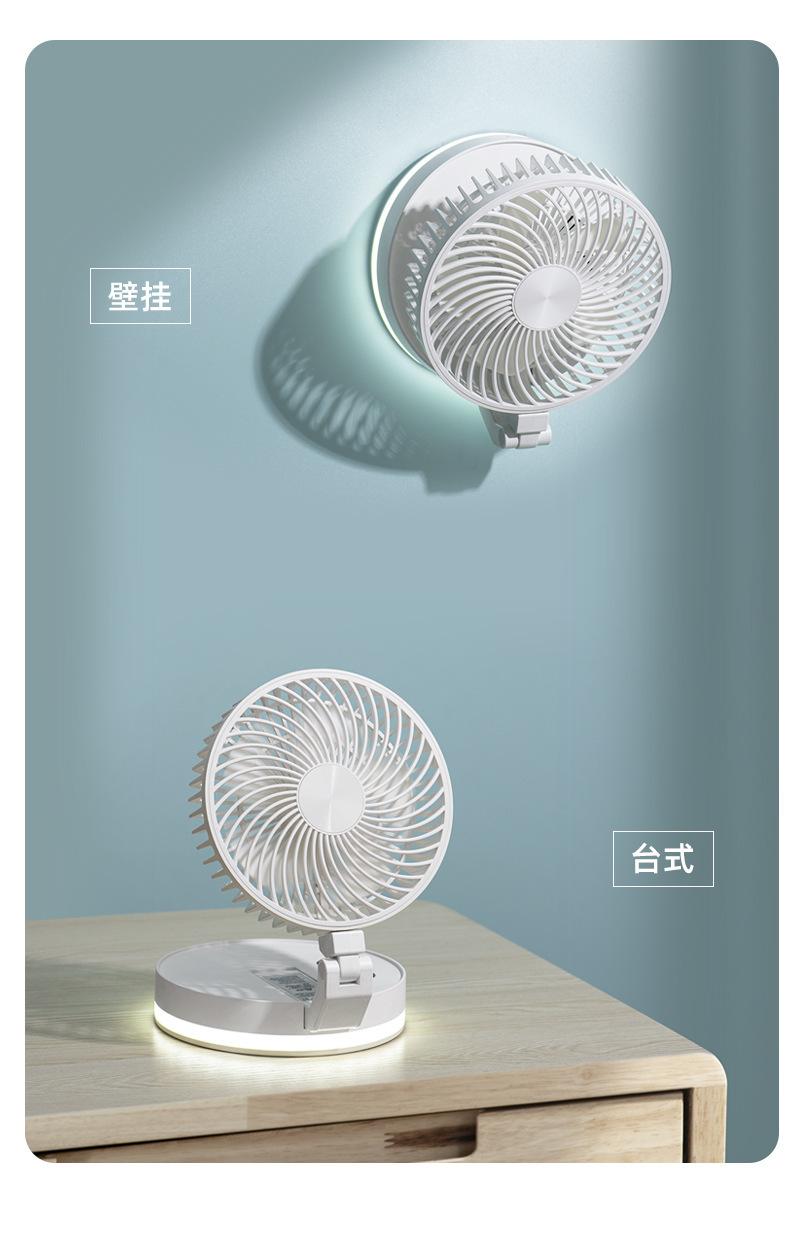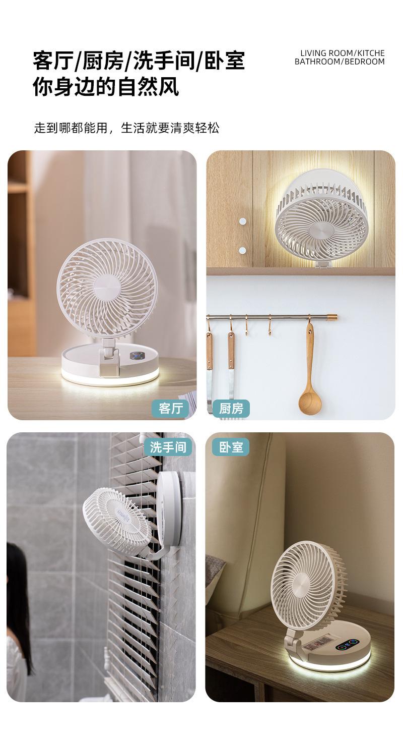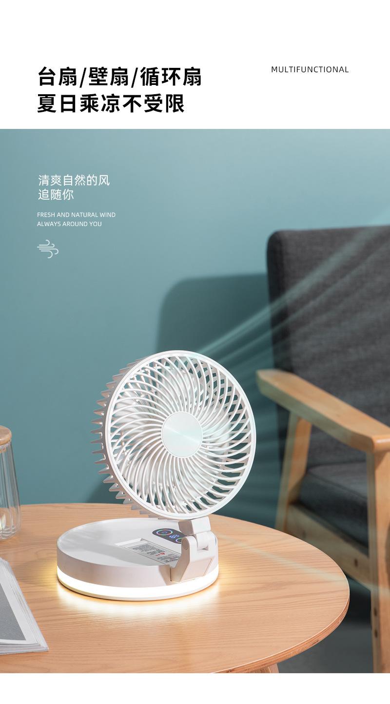 Ventilador plegable creativo de escritorio para el hogar, oficina, colgante de pared, ventilador de carga USB con luz nocturna Bluetooth, ventilador eléctrico