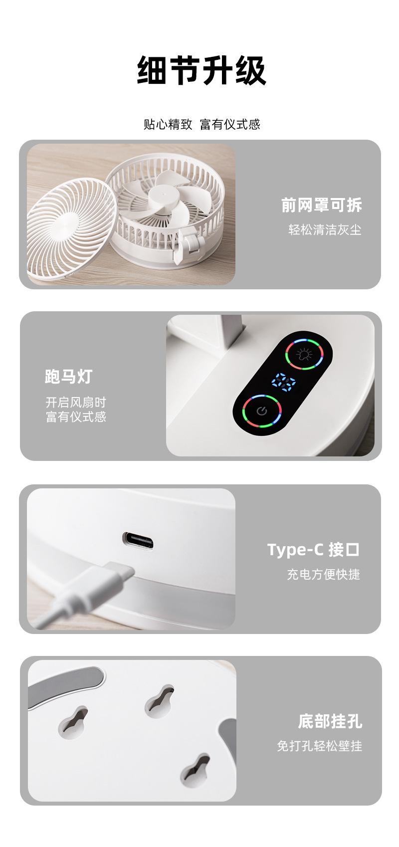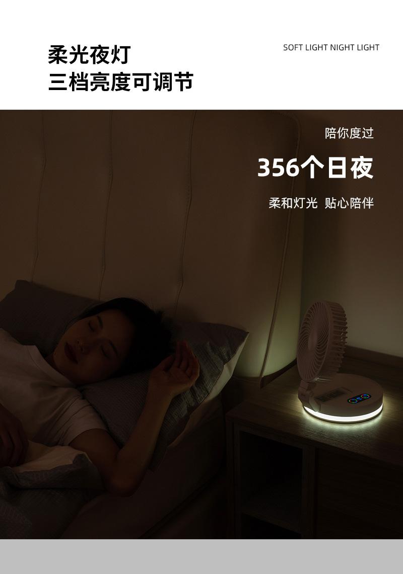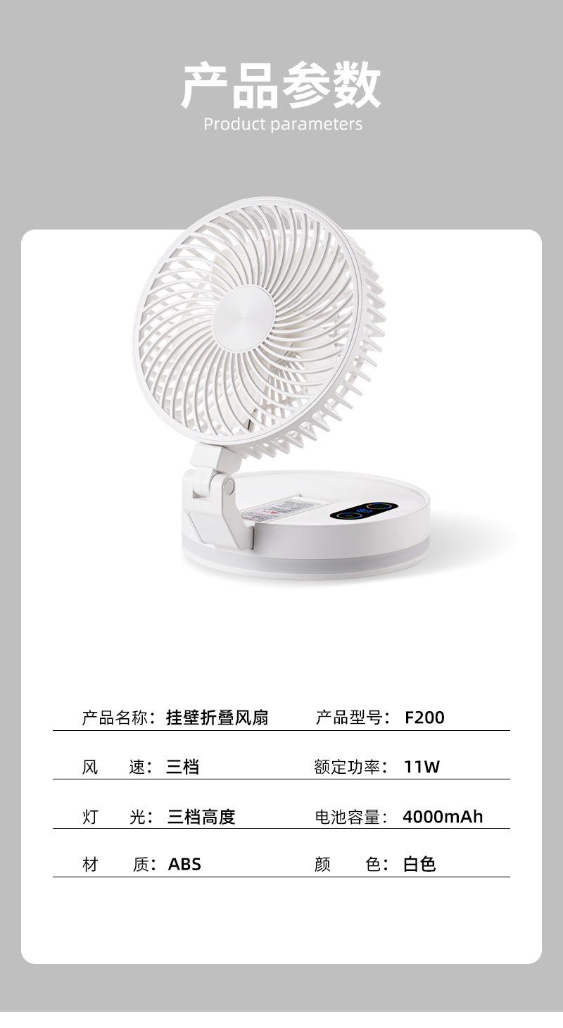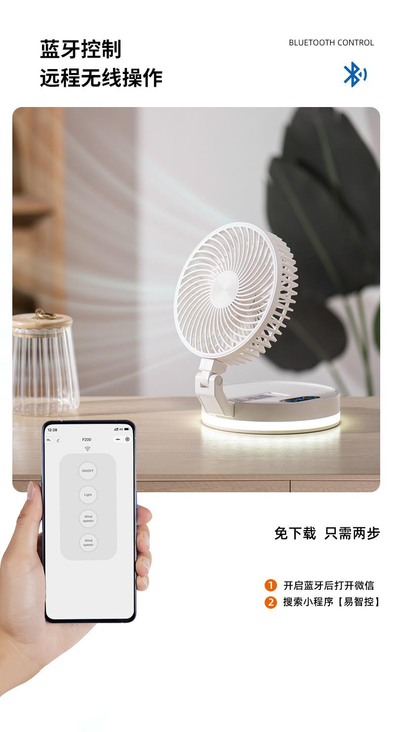 Ventilador plegable creativo de escritorio para el hogar, oficina, colgante de pared, ventilador de carga USB con luz nocturna Bluetooth, ventilador eléctrico
