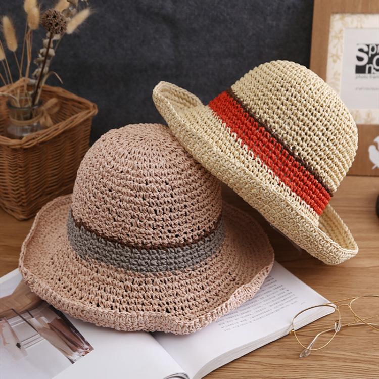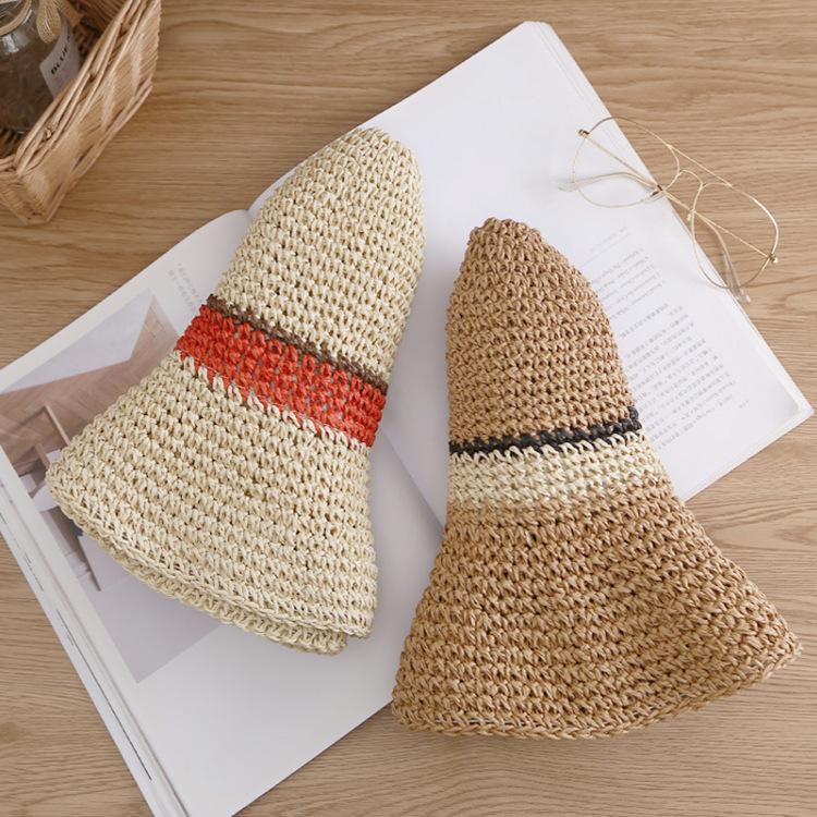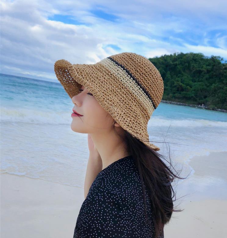 Sombrero de Pescador Flor Estilo Coreano Trendy Combinable Estilo Japonés Sombrero de Verano para Mujer Playa Viaje Sombrilla Sombrero de Paja Material Tejido