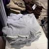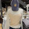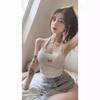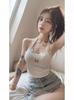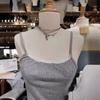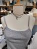 Camisola de encaje gris con rosca estilo americano retro BM para mujer, top interior de cintura alta con base corta