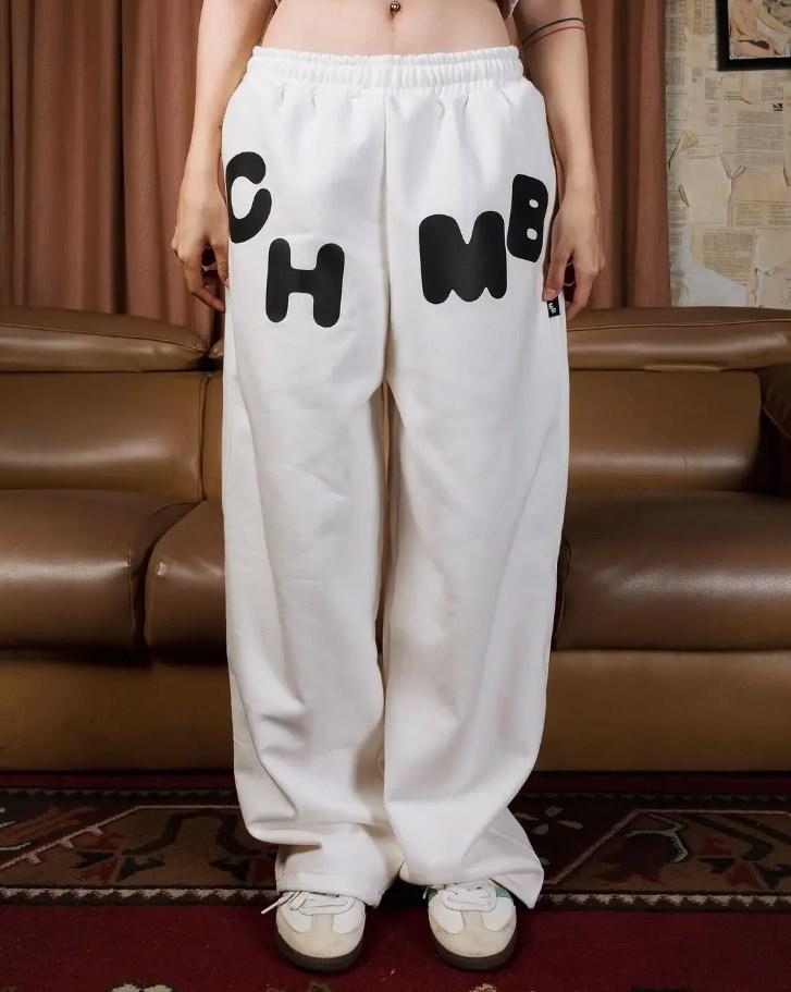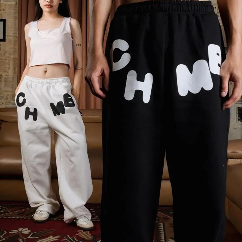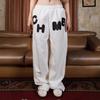 Moda Europea y Americana 2024 Comercio Exterior Transfronterizo Letras Casual Sueltos Letras Estampadas Pantalones Blanco Pierna Ancha
