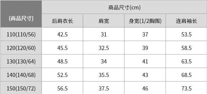 110cm, 120cm, 130cm, 140cm, 150cm, 160cm