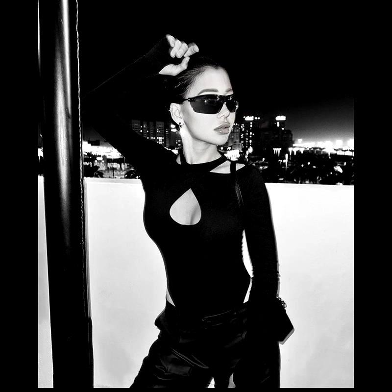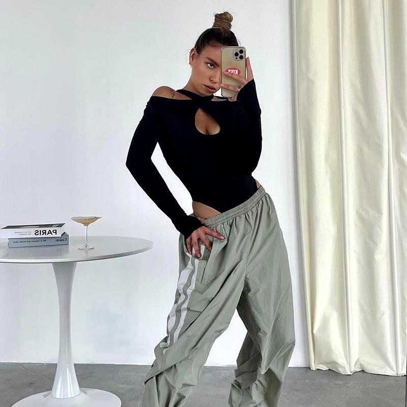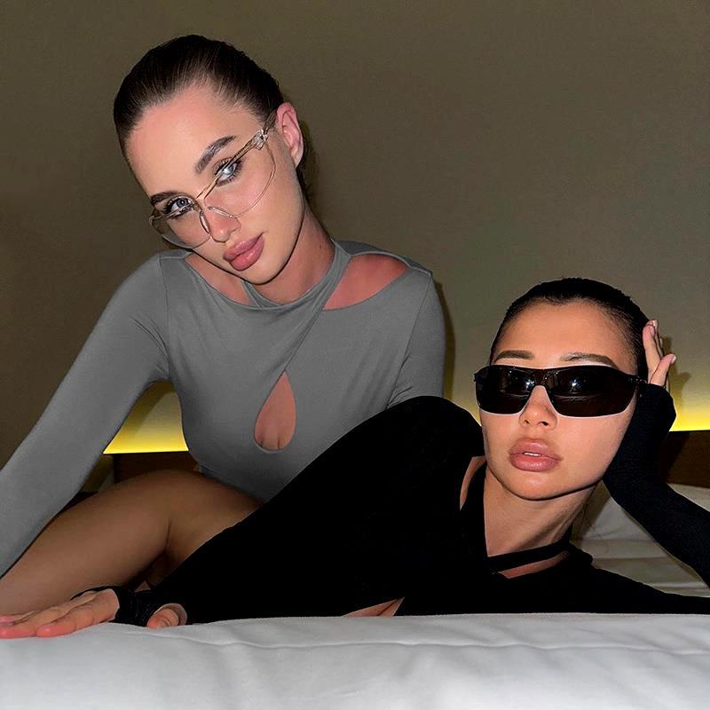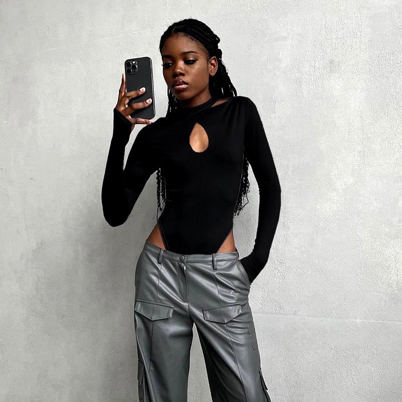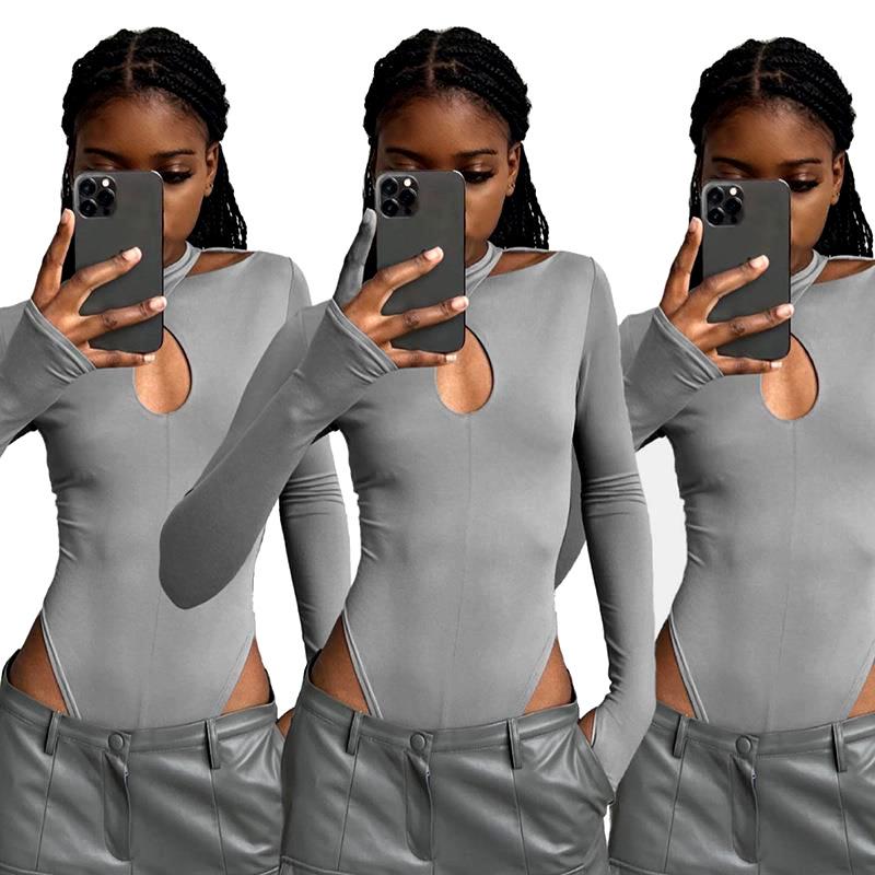 Mono de verano nuevo de moda con escote halter ahuecado y sexy, ajustado, básico, cruzado, de manga larga