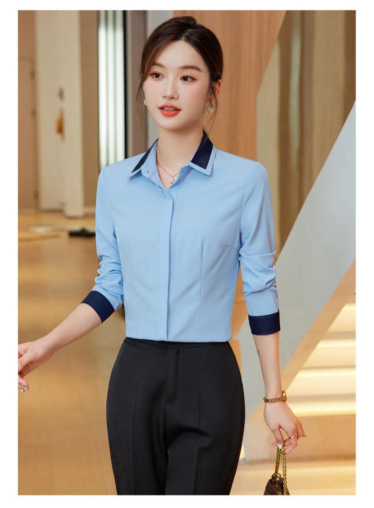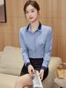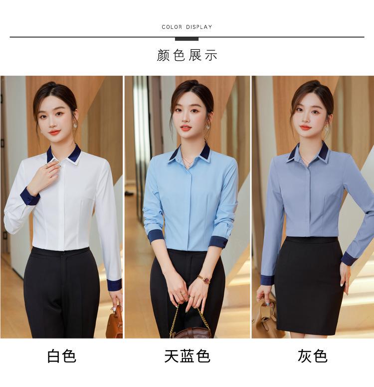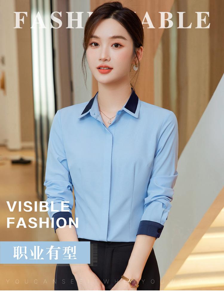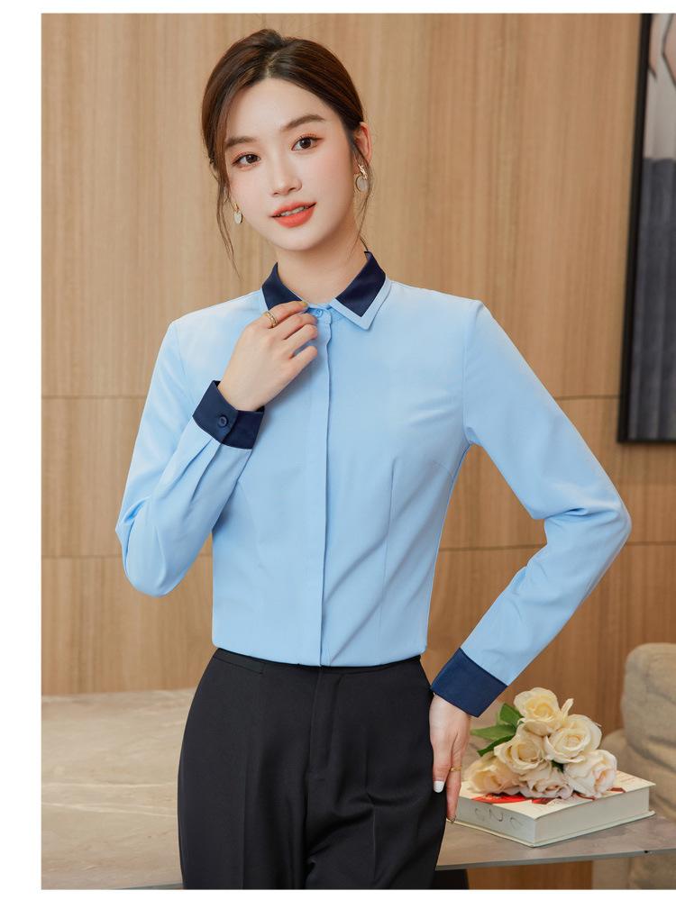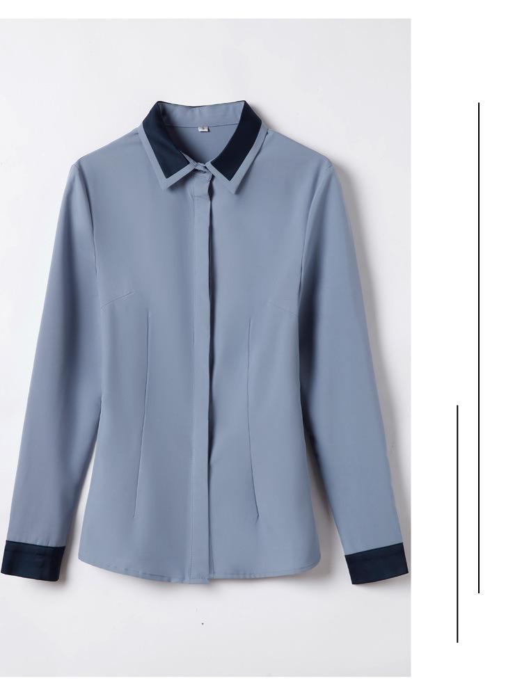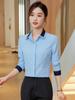 Camisa profesional de manga larga para mujer Primavera y Otoño nueva moda elegante hotel recepción trabajo cuello blanco traje de camisa azul