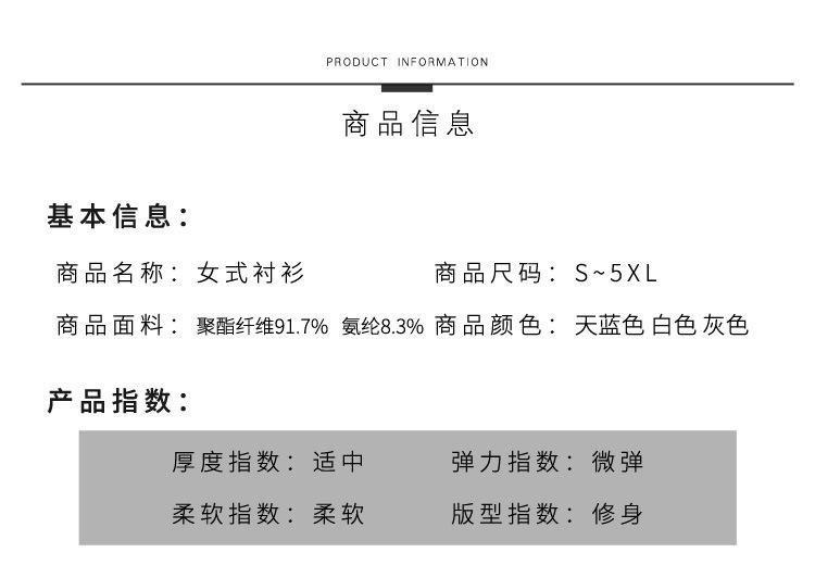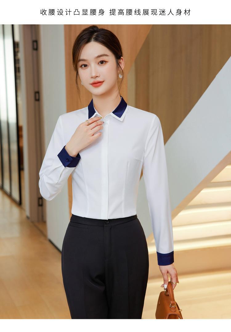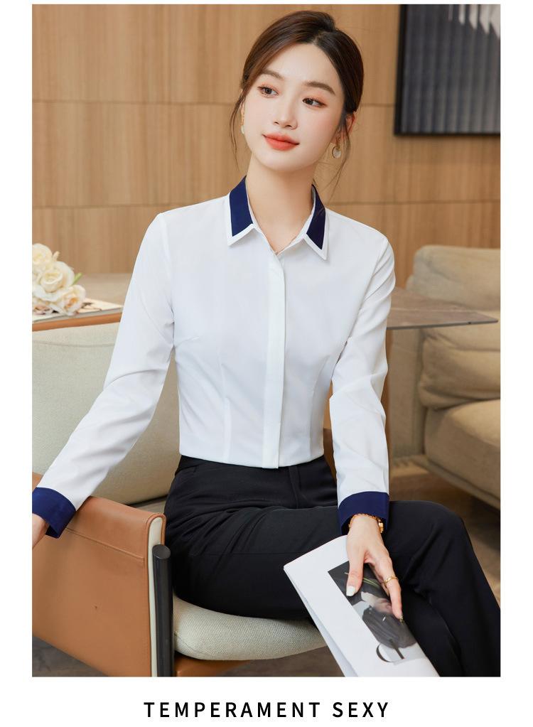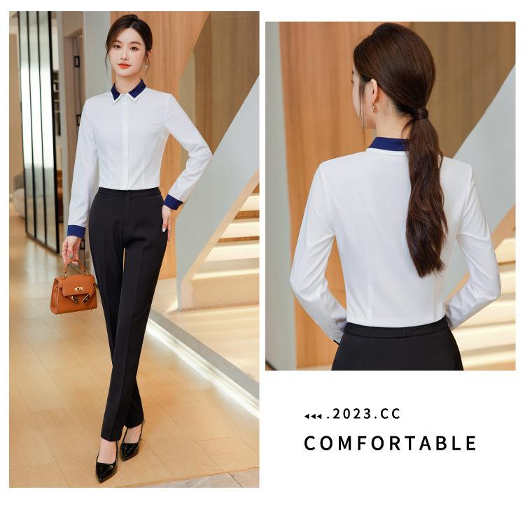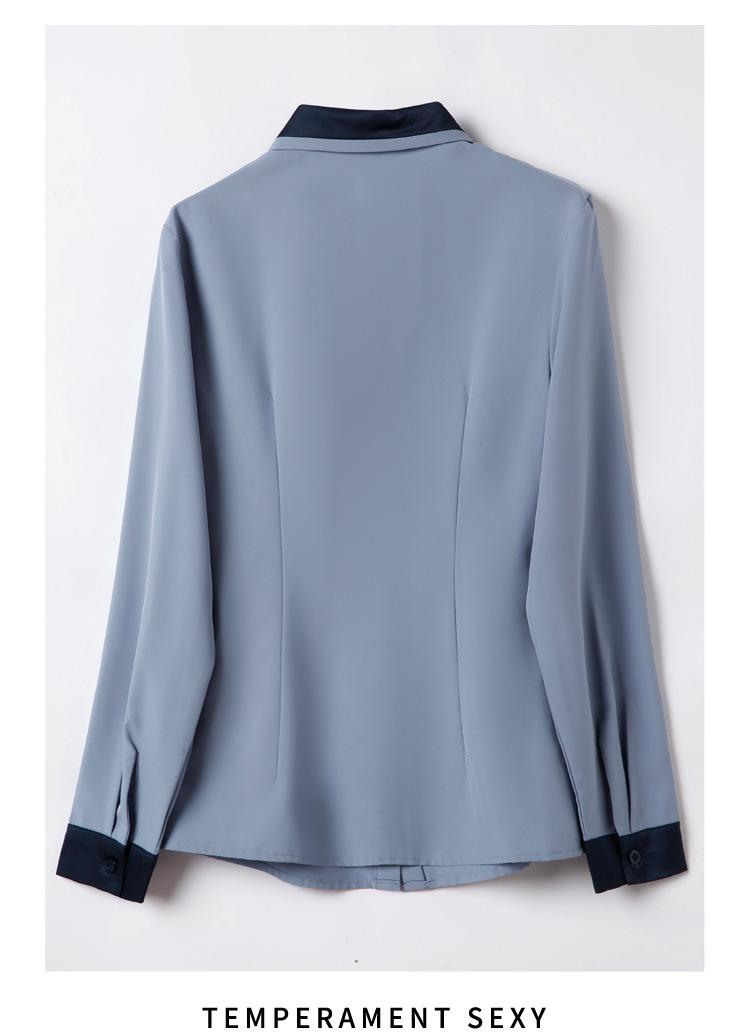 Camisa profesional de manga larga para mujer Primavera y Otoño nueva moda elegante hotel recepción trabajo cuello blanco traje de camisa azul