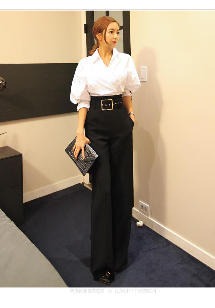 Ropa de mujer transfronteriza 2023 principios de primavera nuevo socialité moda elegante cintura alta holgados pantalones de pierna ancha (cinturón)