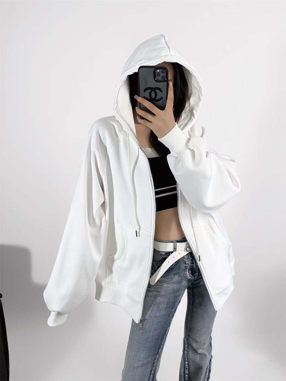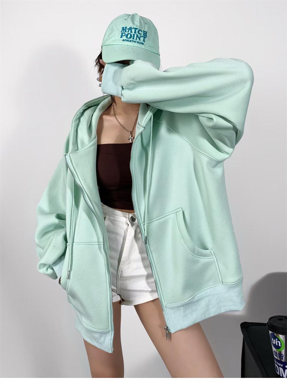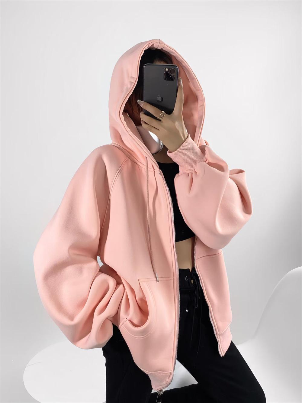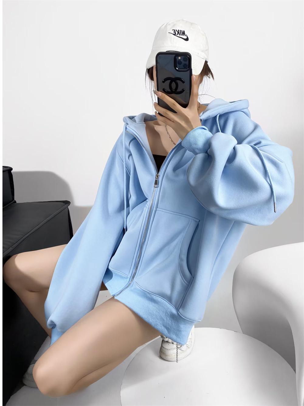 Suéter de terciopelo secreto de longitud media para mujer, suelto, estilo coreano, para otoño e invierno, con capucha de color sólido, abrigo deportivo