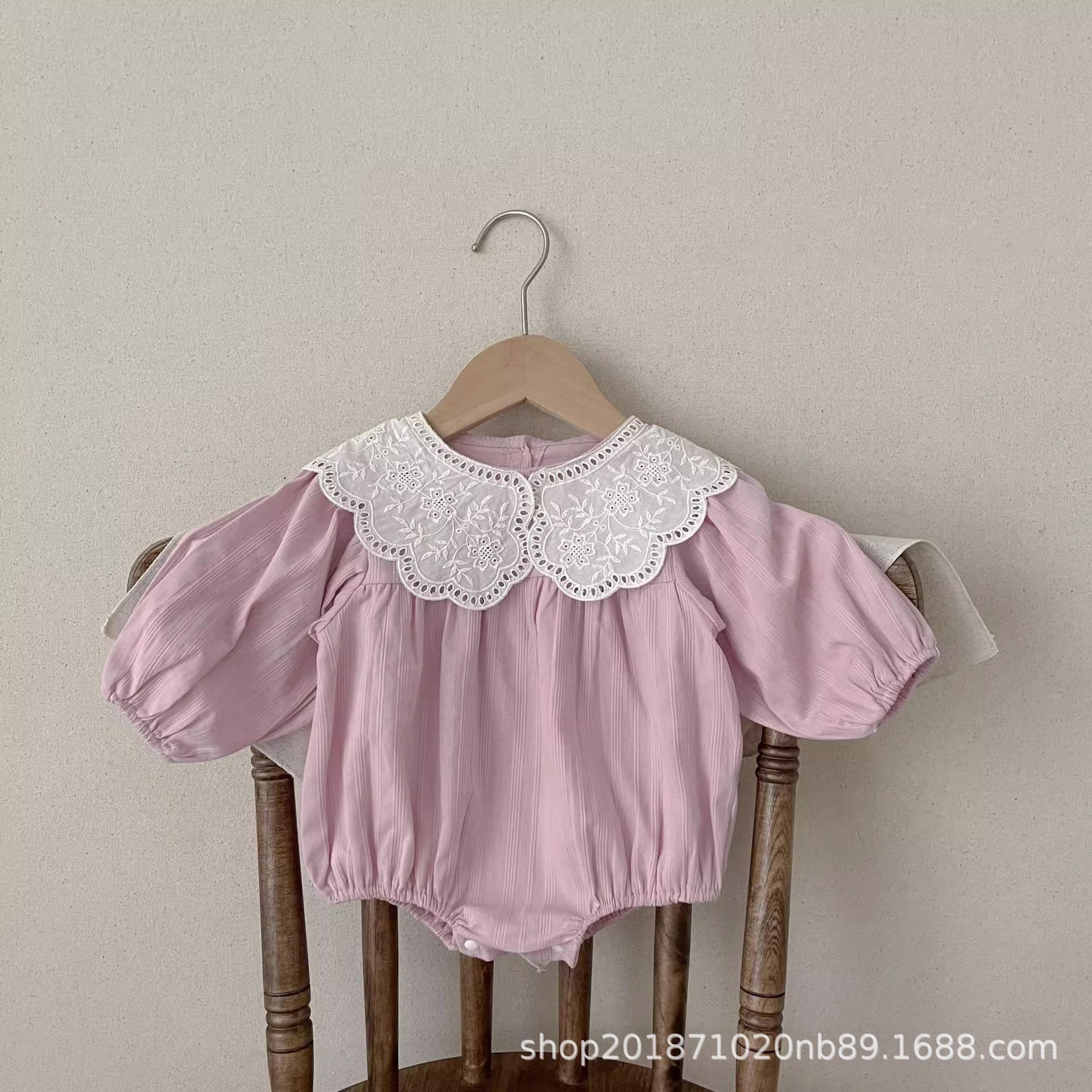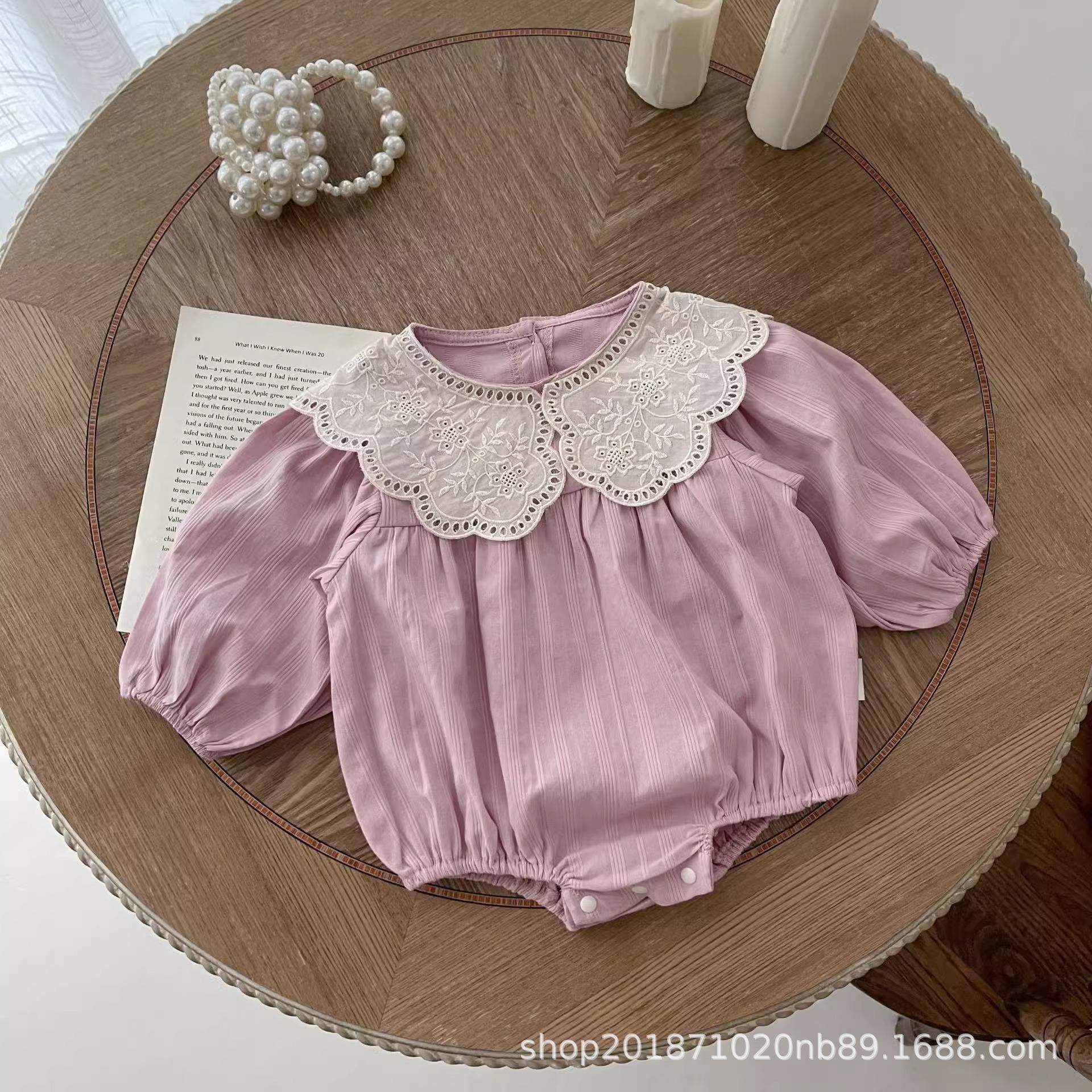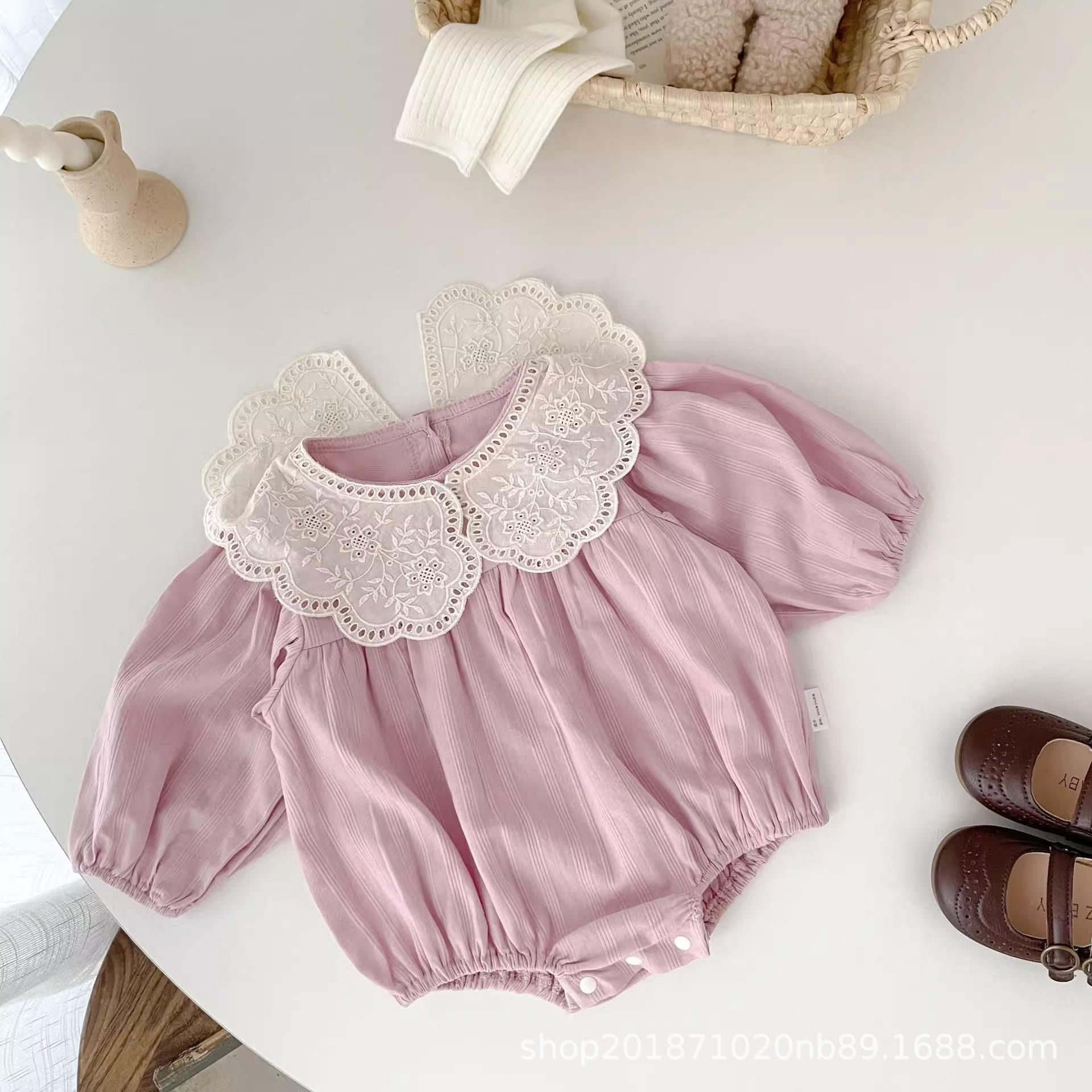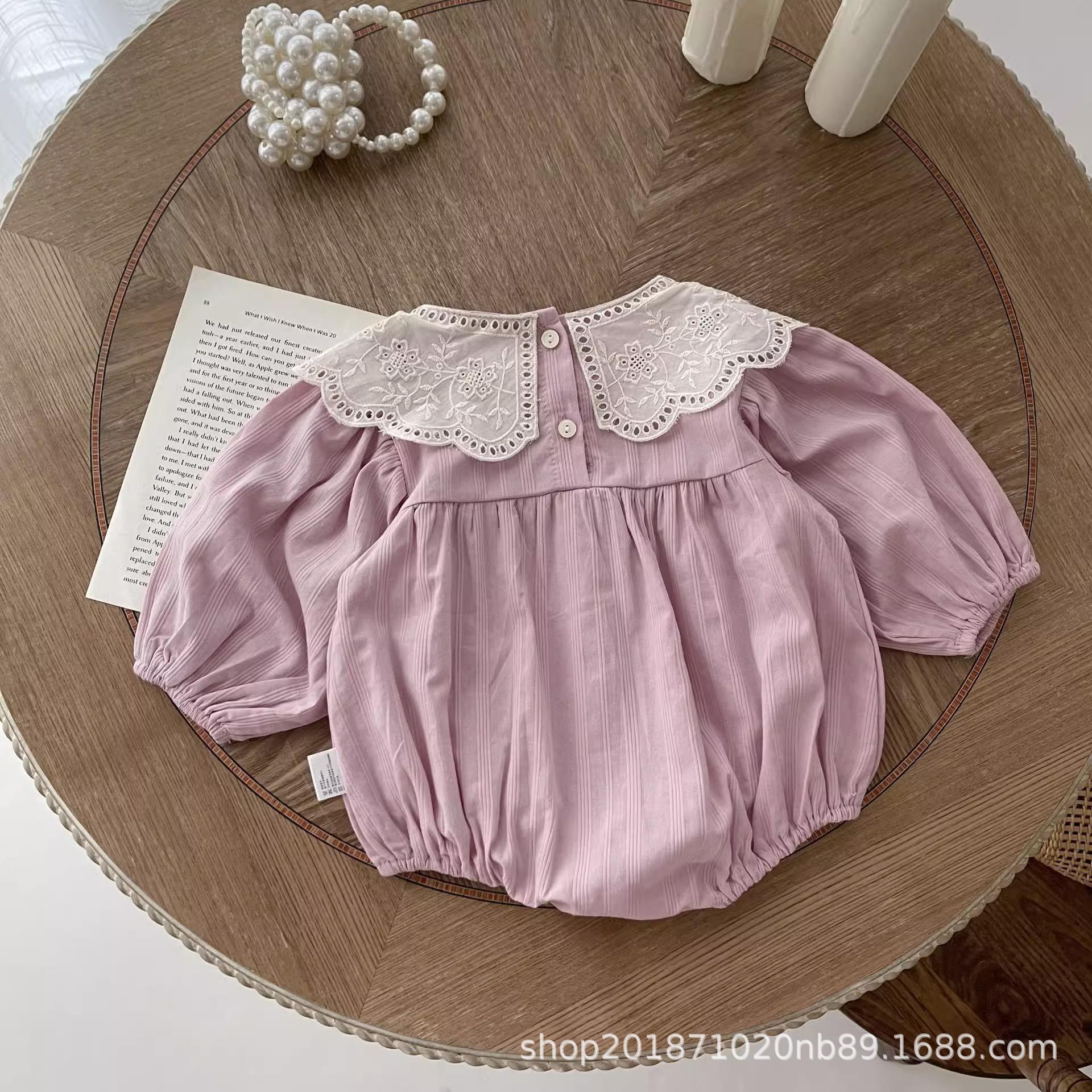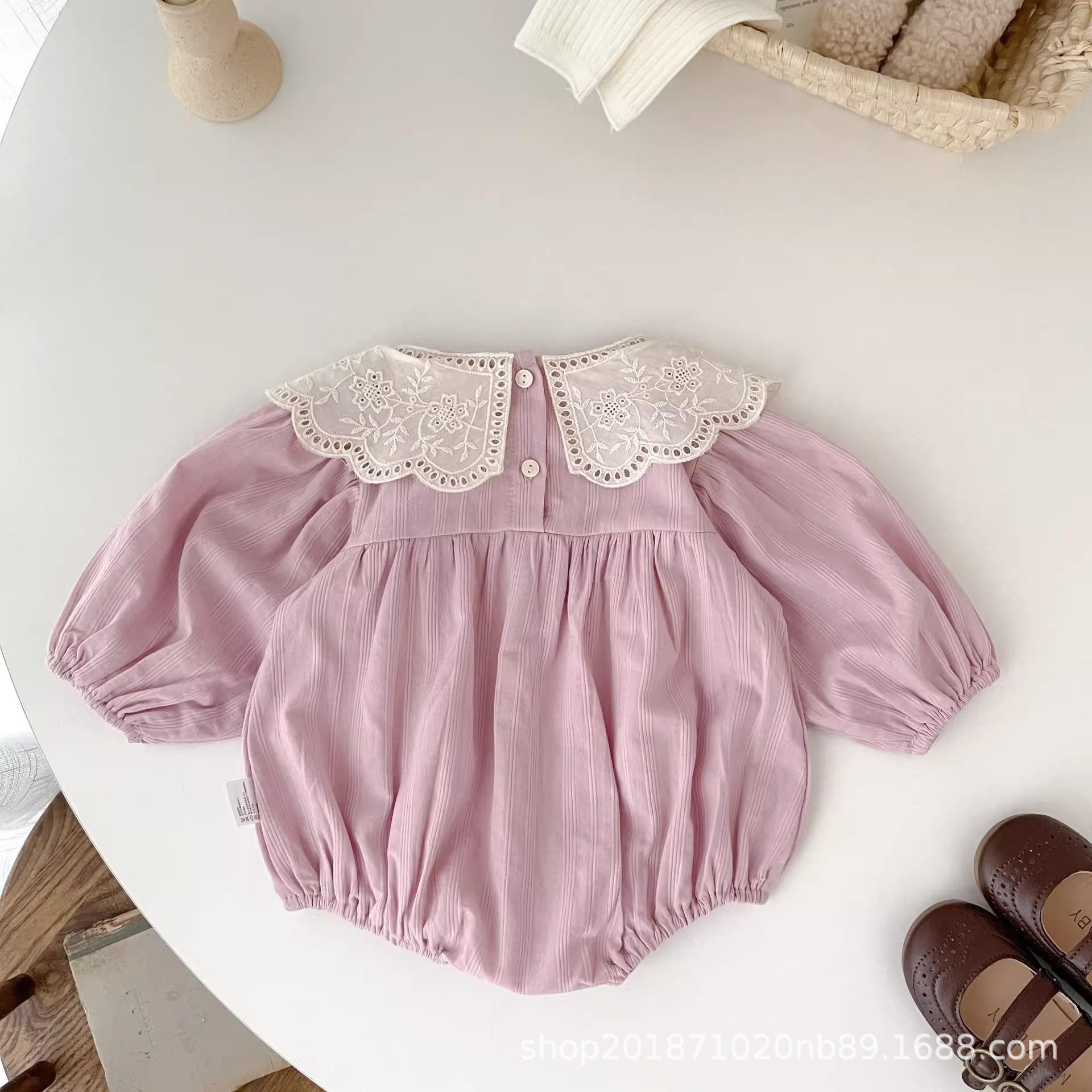 Ropa de bebé, ropa de otoño, mono de primavera y otoño para niña con solapa súper linda, mono de estilo occidental para salir dulce