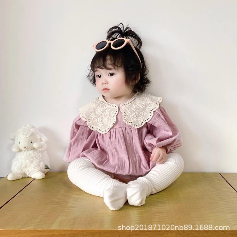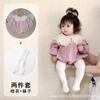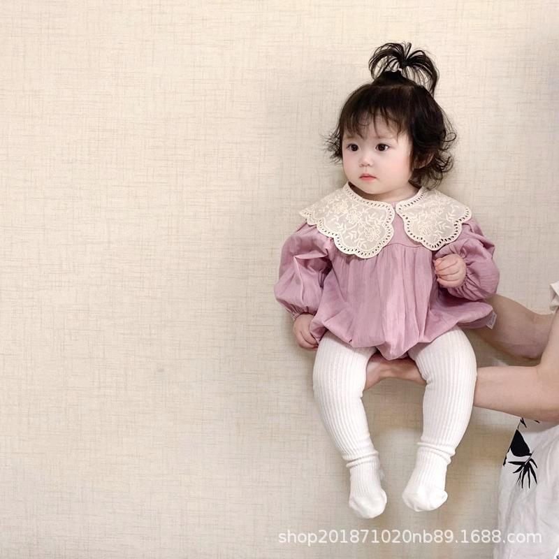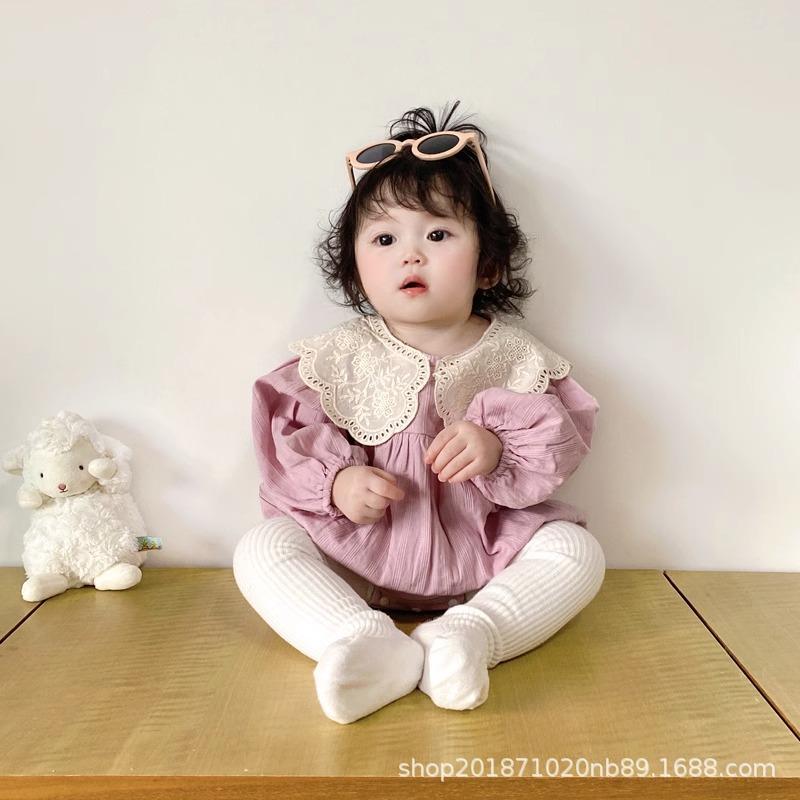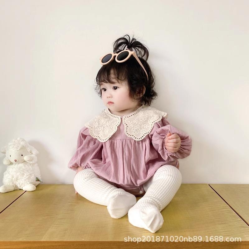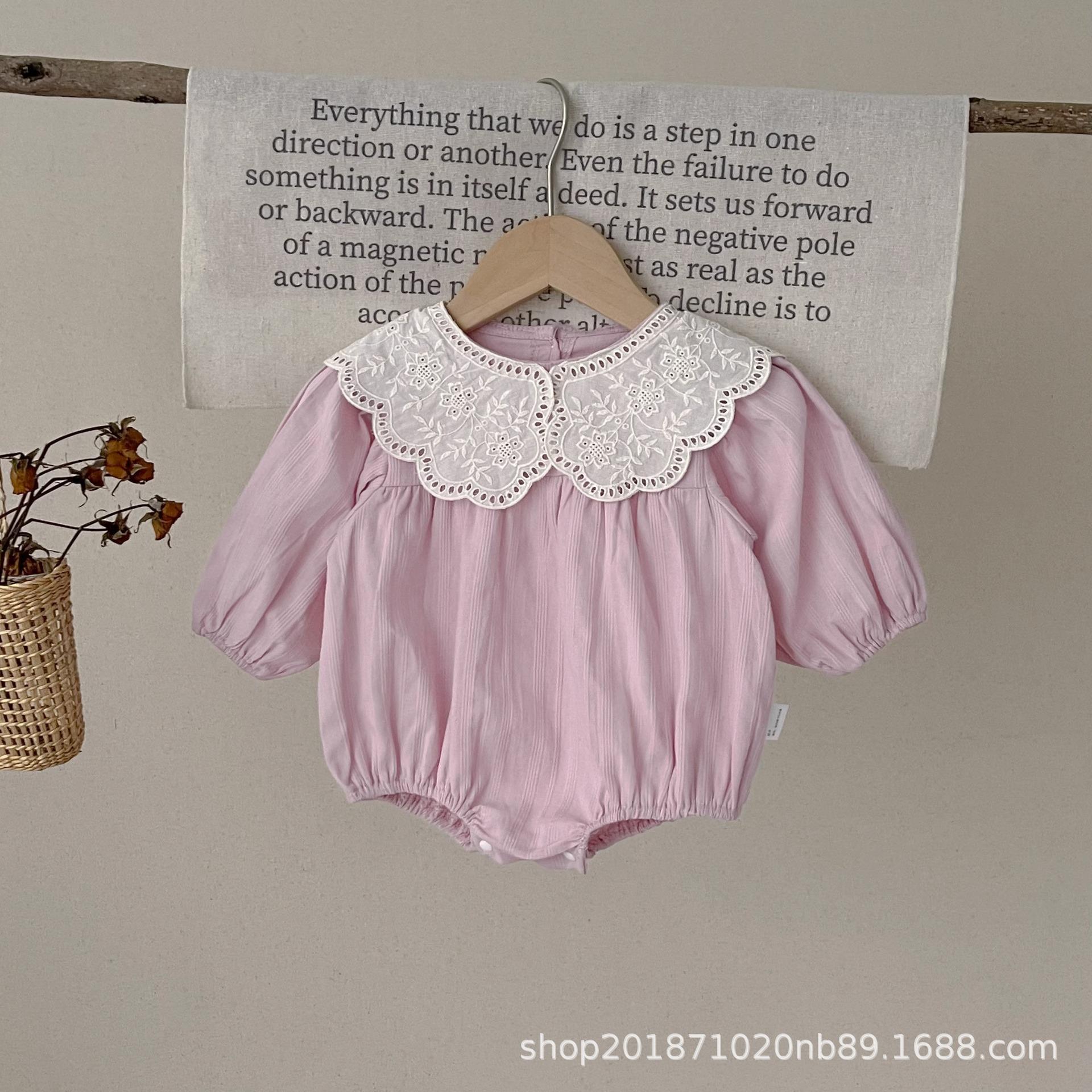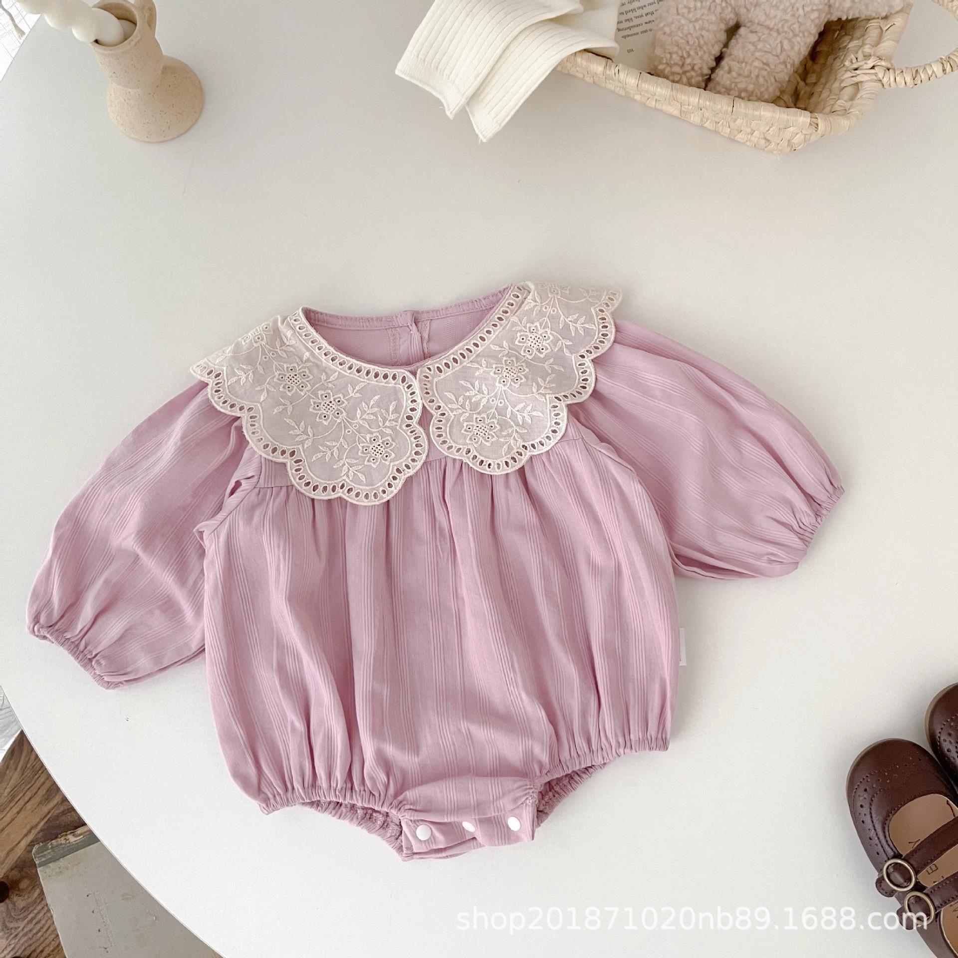 Ropa de bebé, ropa de otoño, mono de primavera y otoño para niña con solapa súper linda, mono de estilo occidental para salir dulce