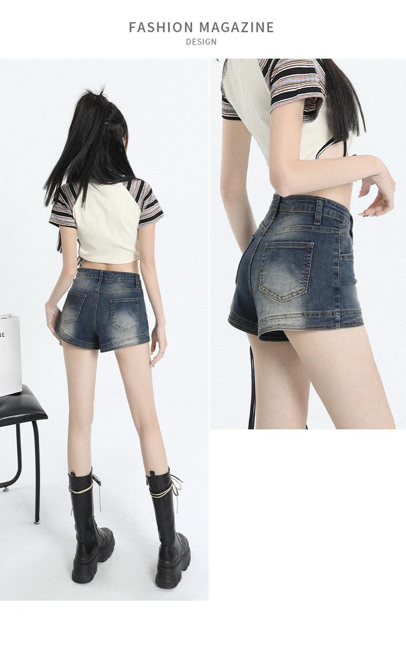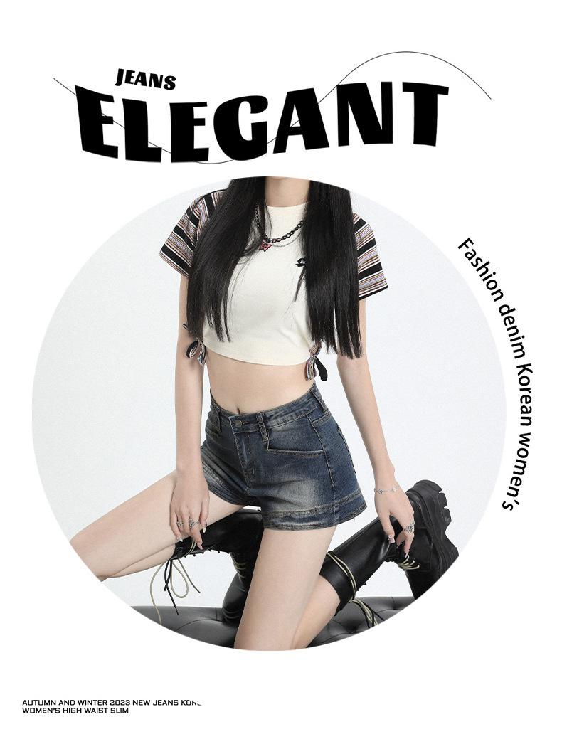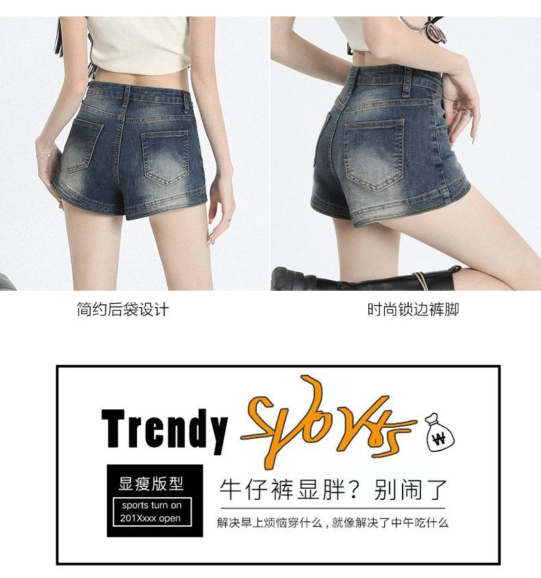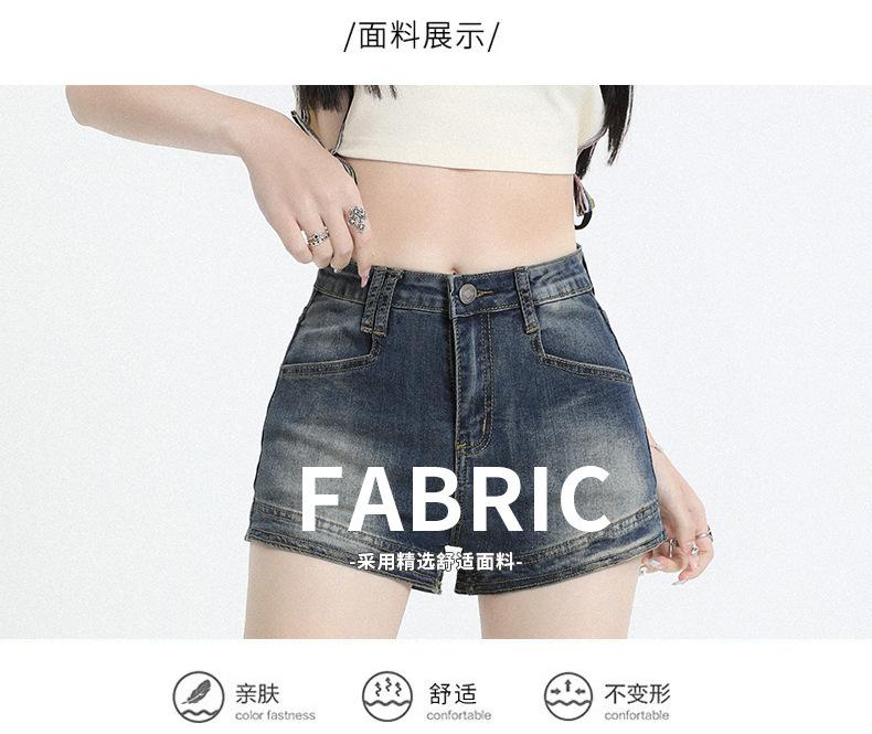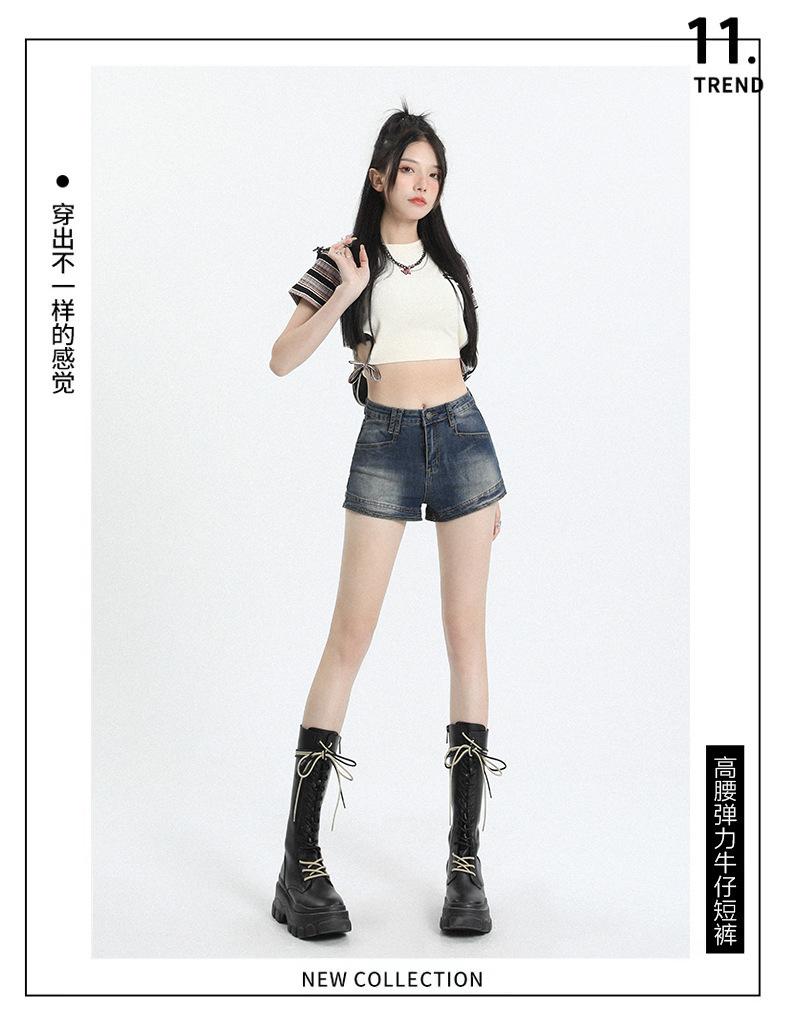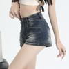 Pantalones cortos vaqueros elásticos americanos nuevos de verano 2023 para mujer, pantalones vaqueros desgastados retro adelgazantes de cintura alta, pequeños