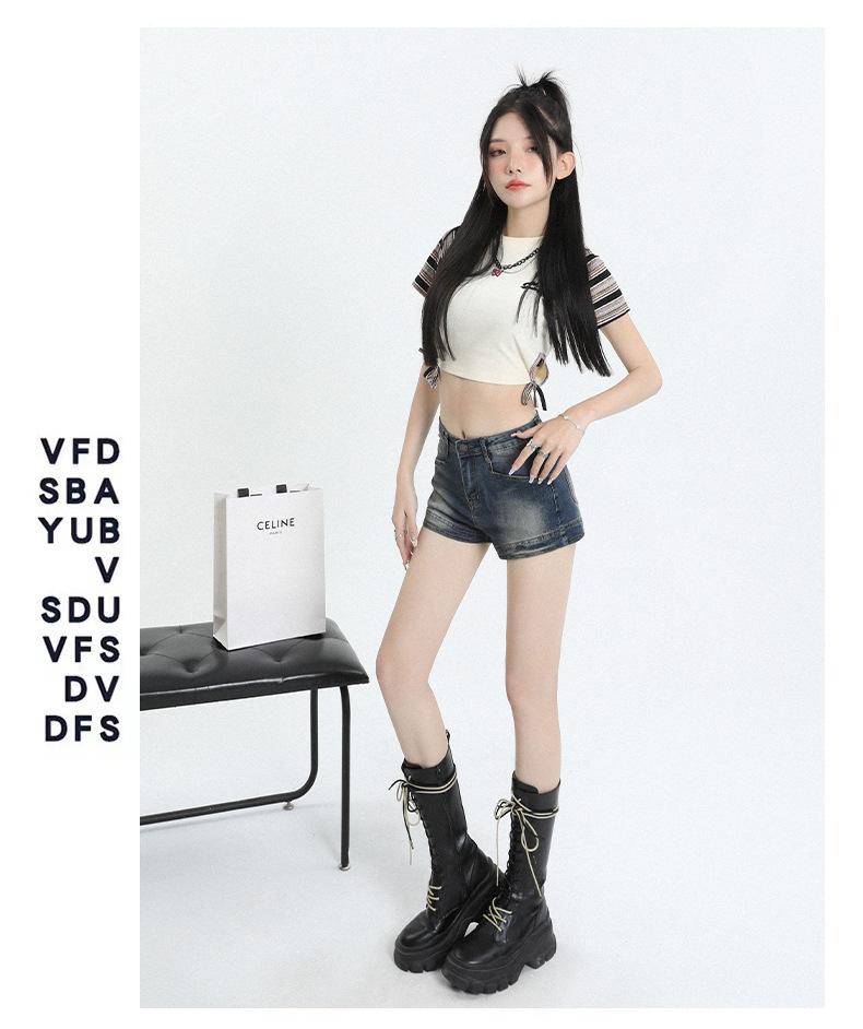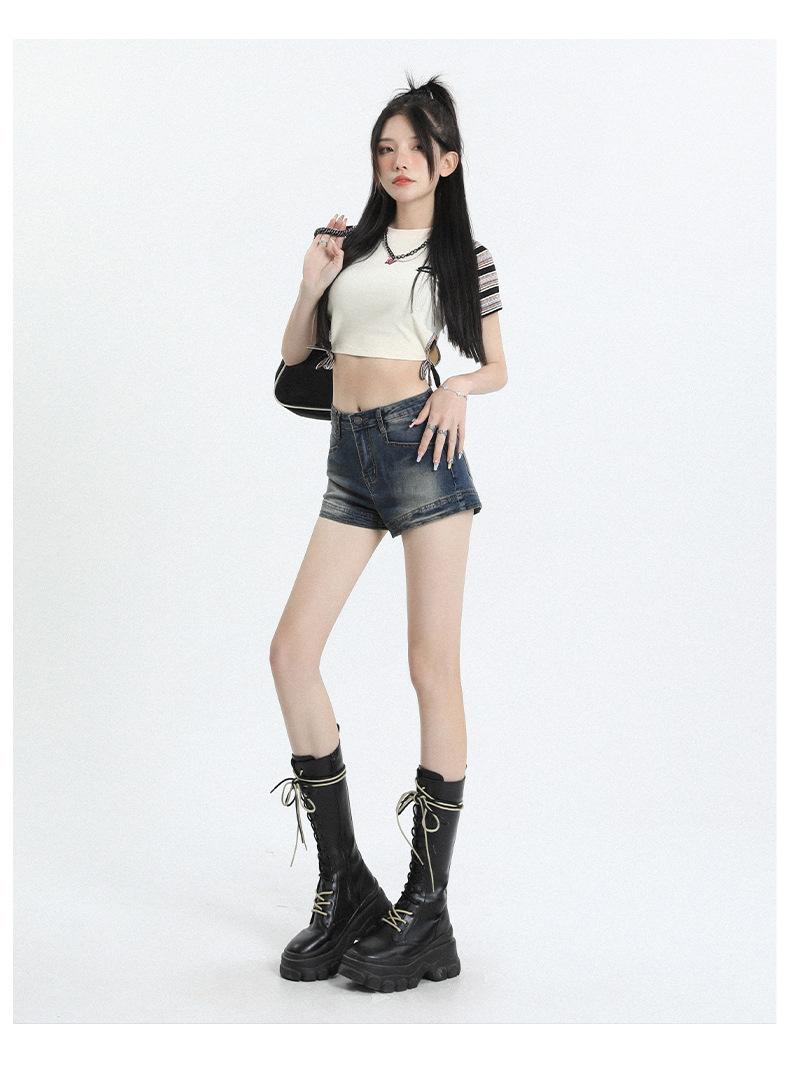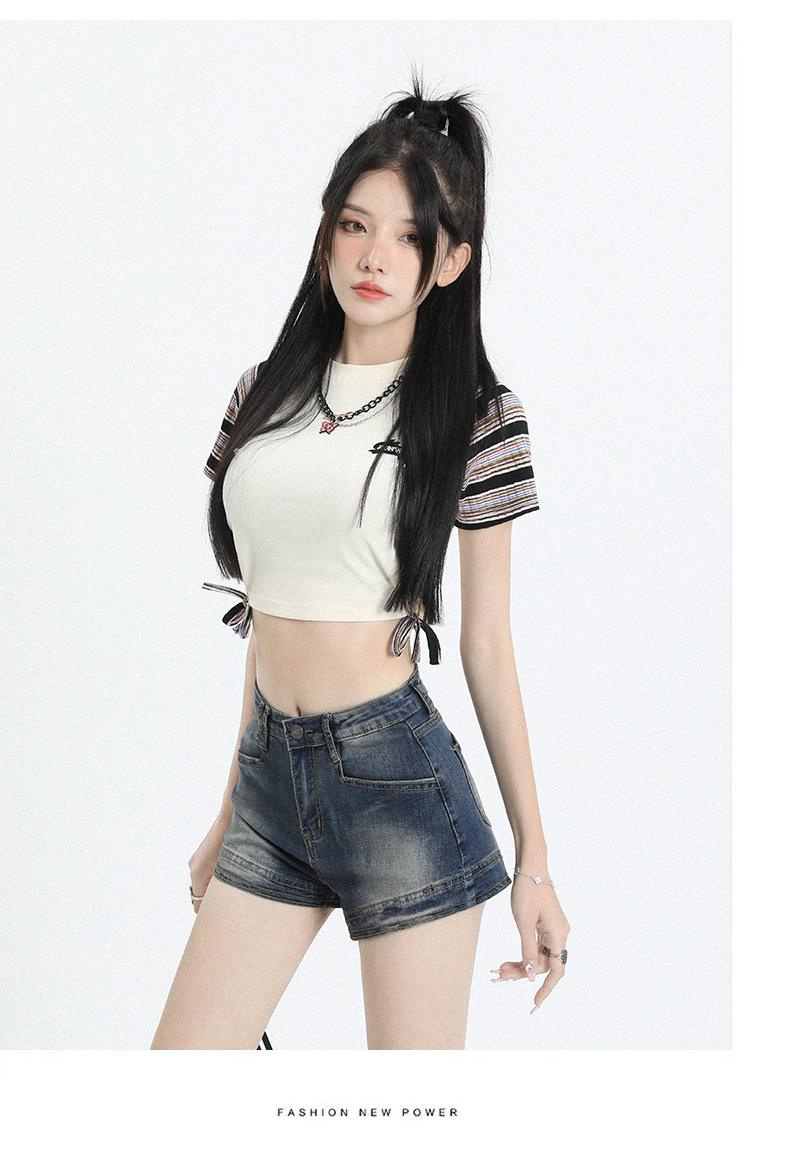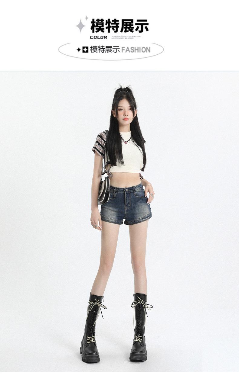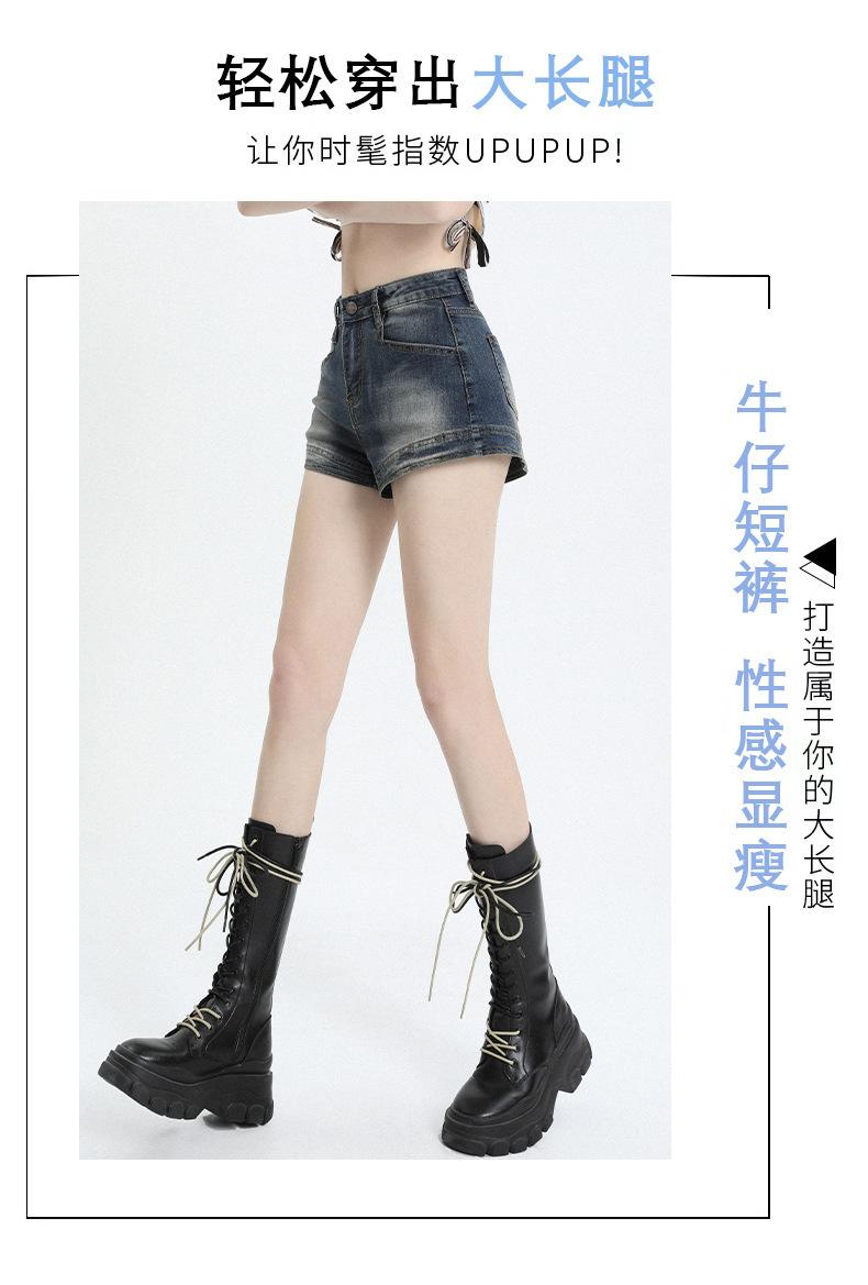 Pantalones cortos vaqueros elásticos americanos nuevos de verano 2023 para mujer, pantalones vaqueros desgastados retro adelgazantes de cintura alta, pequeños