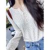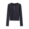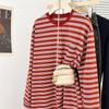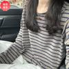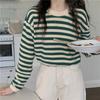 Estilo BM Recién Llegado Retro Marrón Rayado Cuello Redondo Ajustado Manga Larga Camiseta Ropa de Primavera y Otoño para Mujer Top de Manga Larga para Mujer