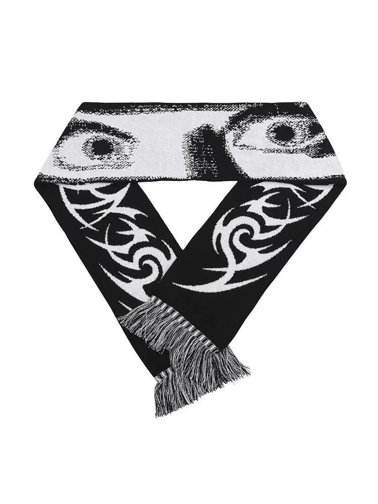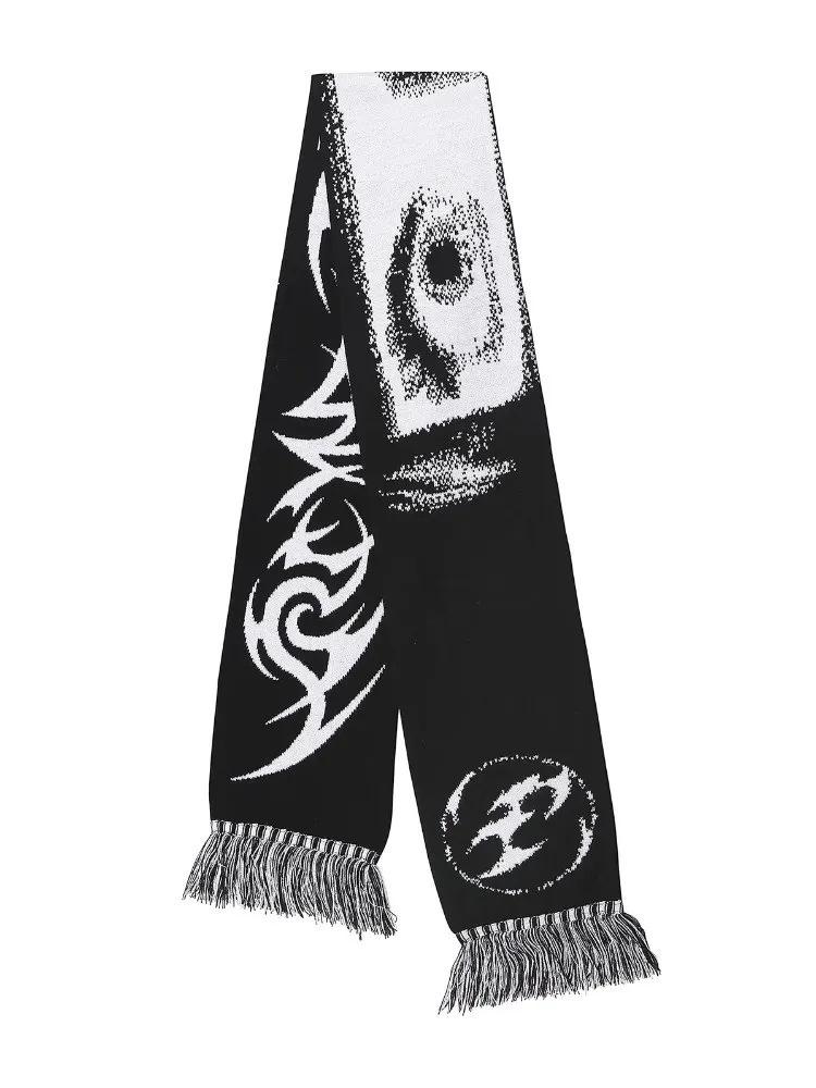 Bufanda de punto con borlas negras y estampado de ojos Y2K, tendencia de moda gótica de otoño e invierno transfronteriza europea y americana, comercio exterior