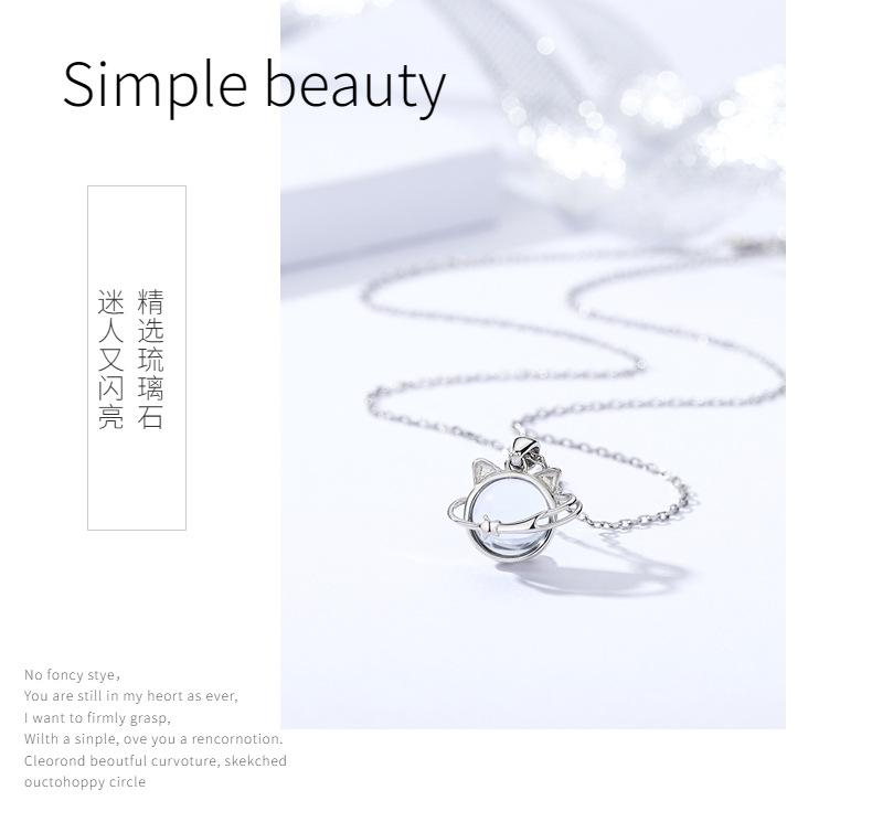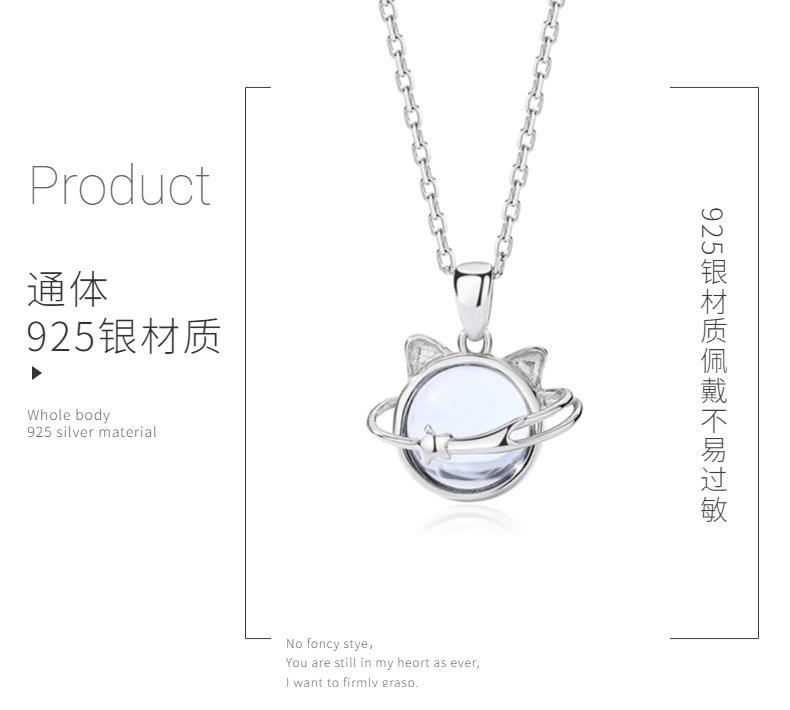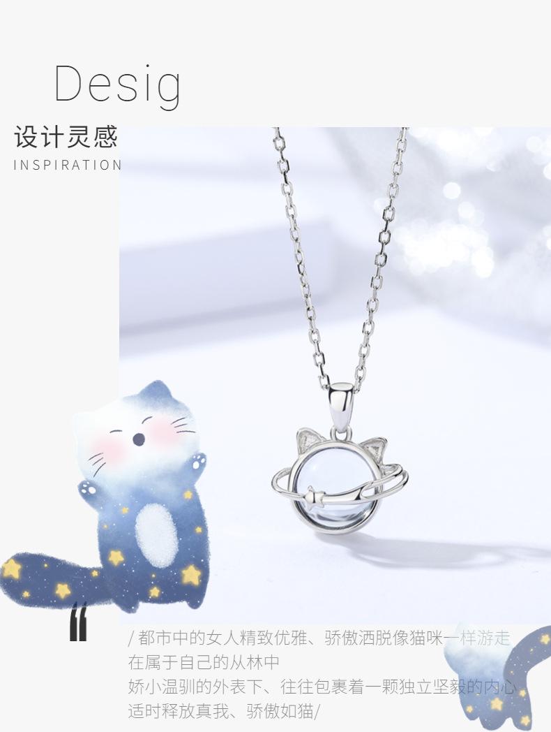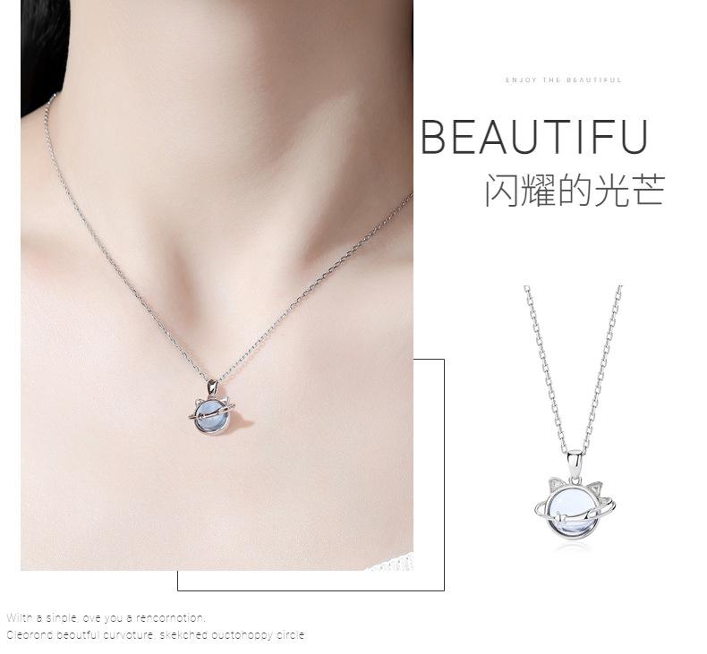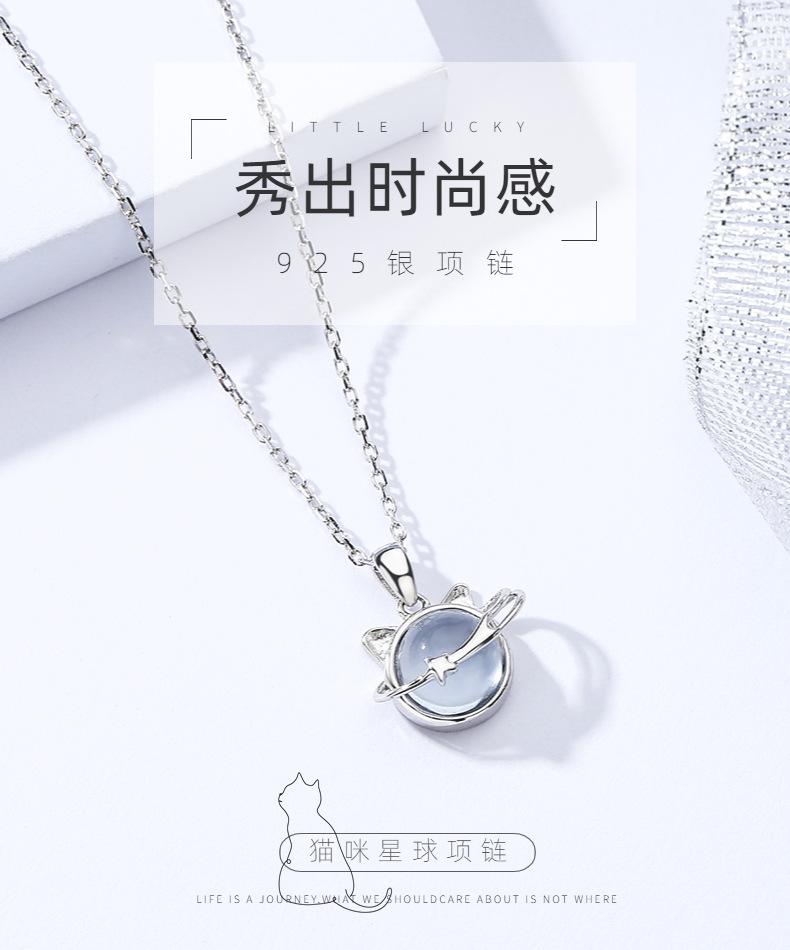 Collar de gato planetario de plata esterlina 925 combinable con todo para verano, colgante de nicho femenino de alta gama con sentido de la clavícula, joyería al por mayor