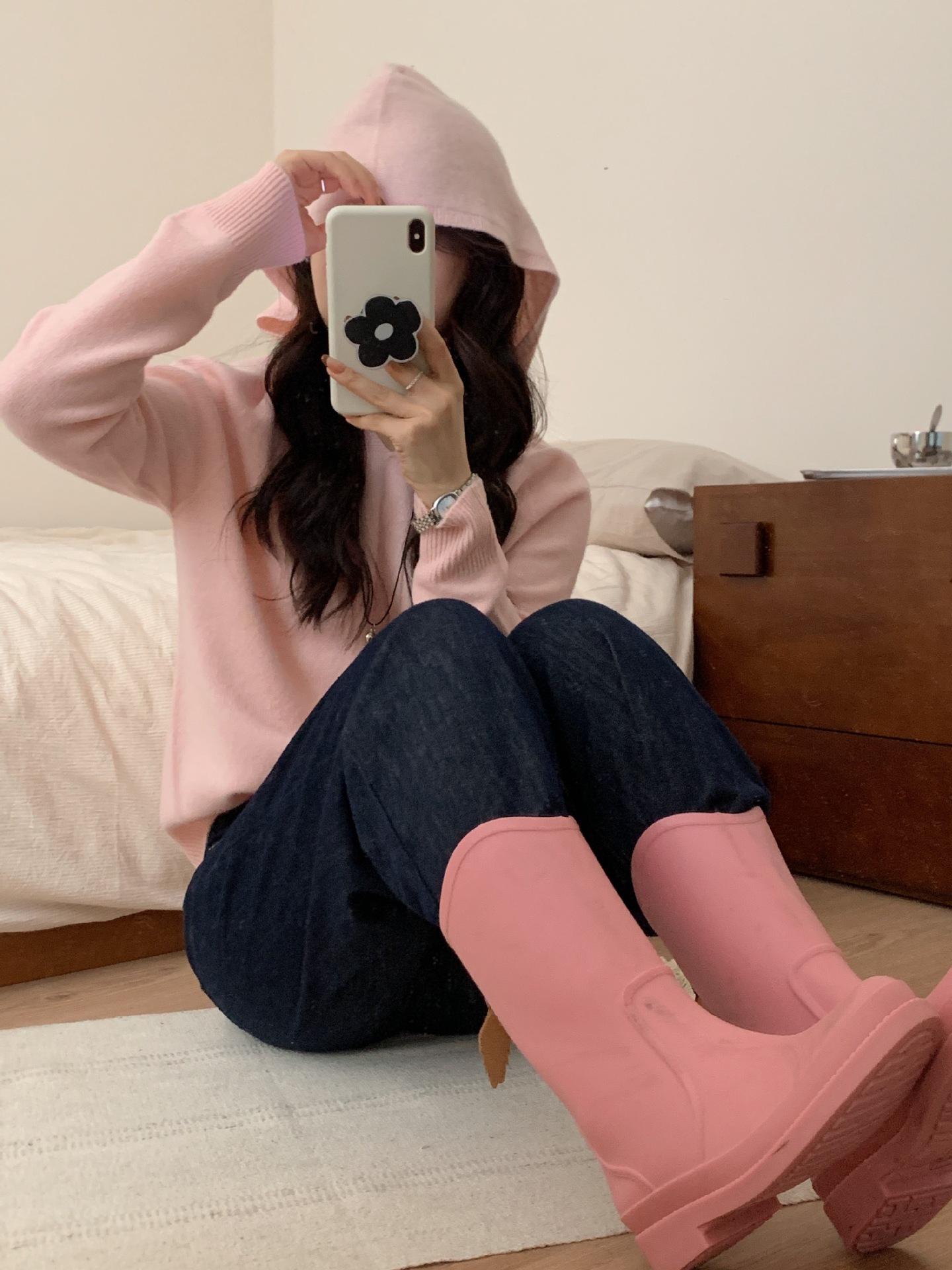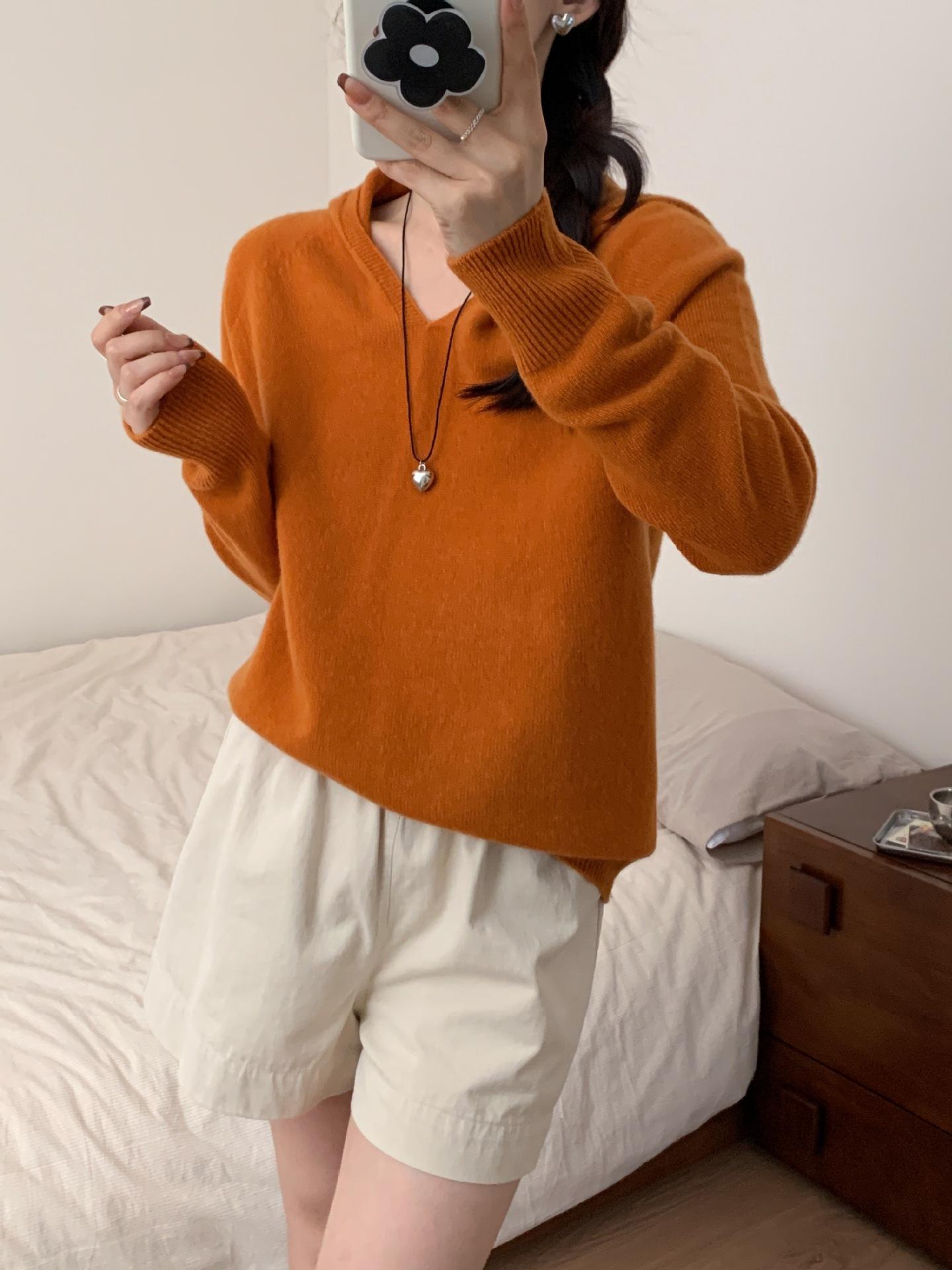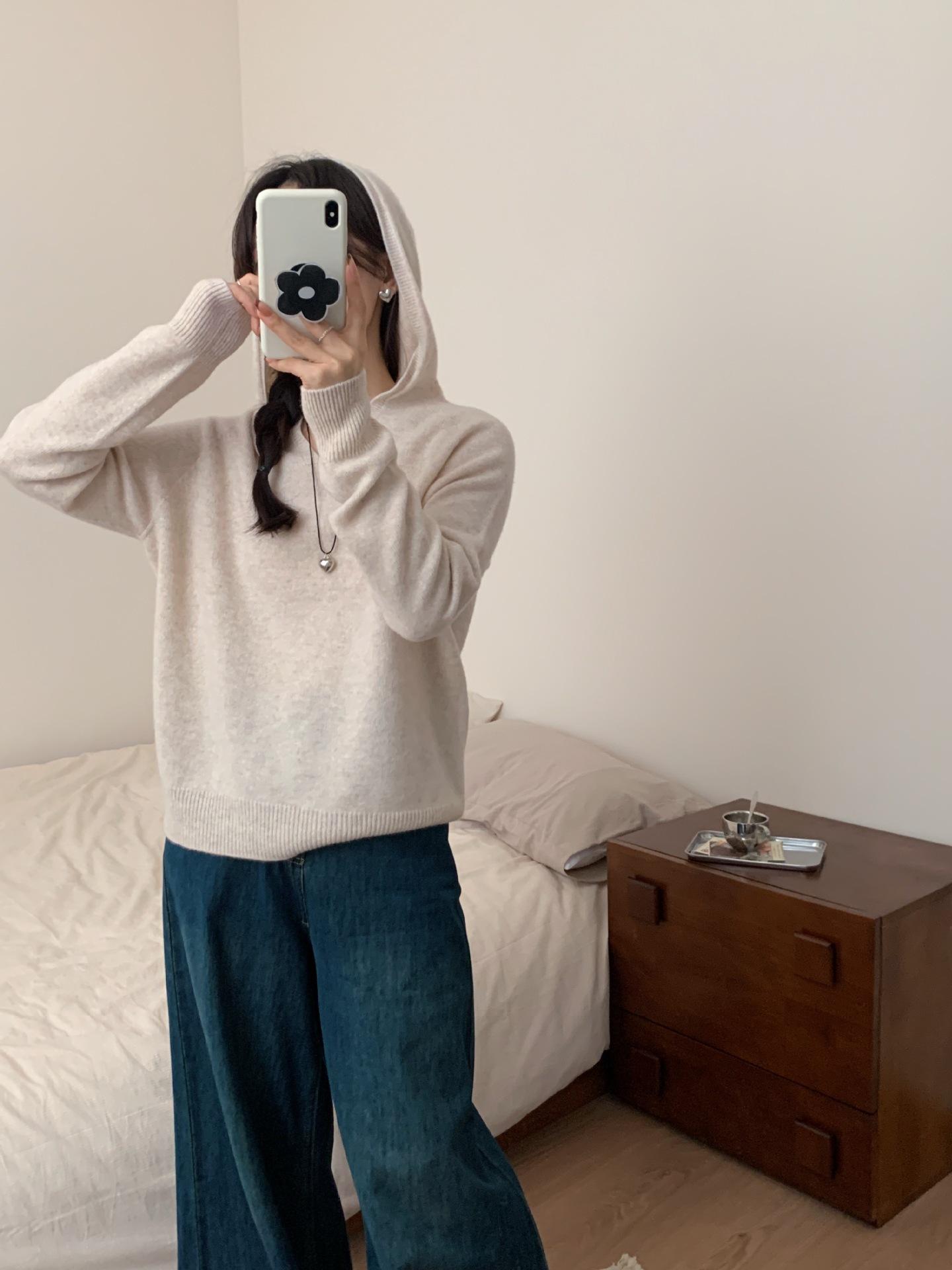Suéter de Lana con Capucha para Mujer Otoño e Invierno Estilo Coreano Jersey de Punto de Manga Larga con Suave Suéter de Lana Integrado Sin Costuras en el Interior