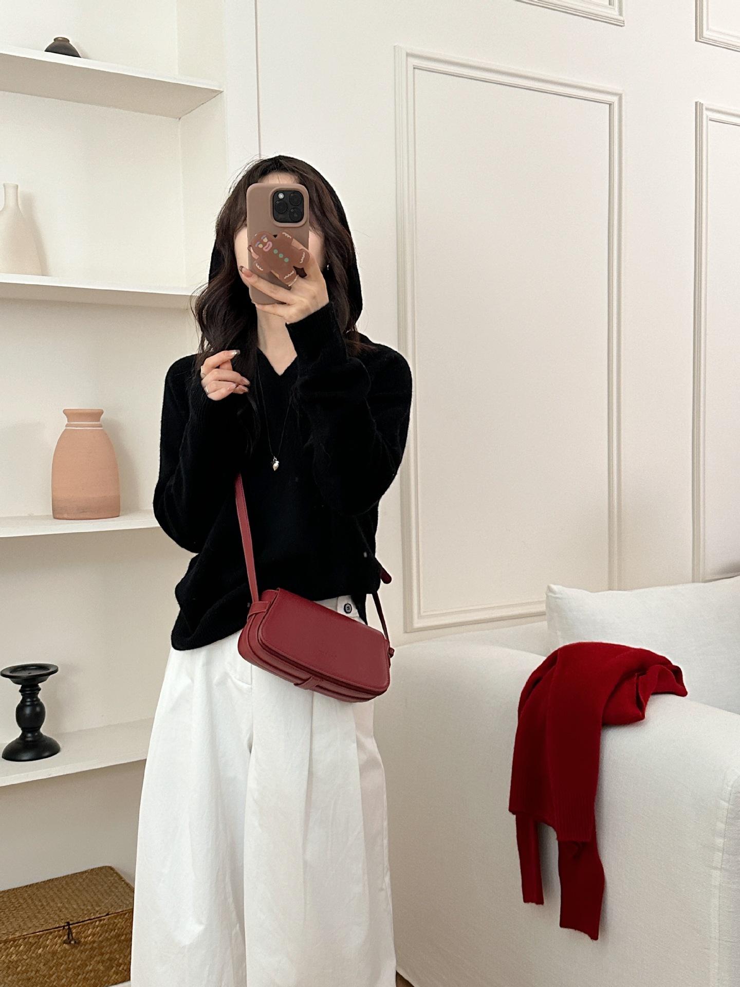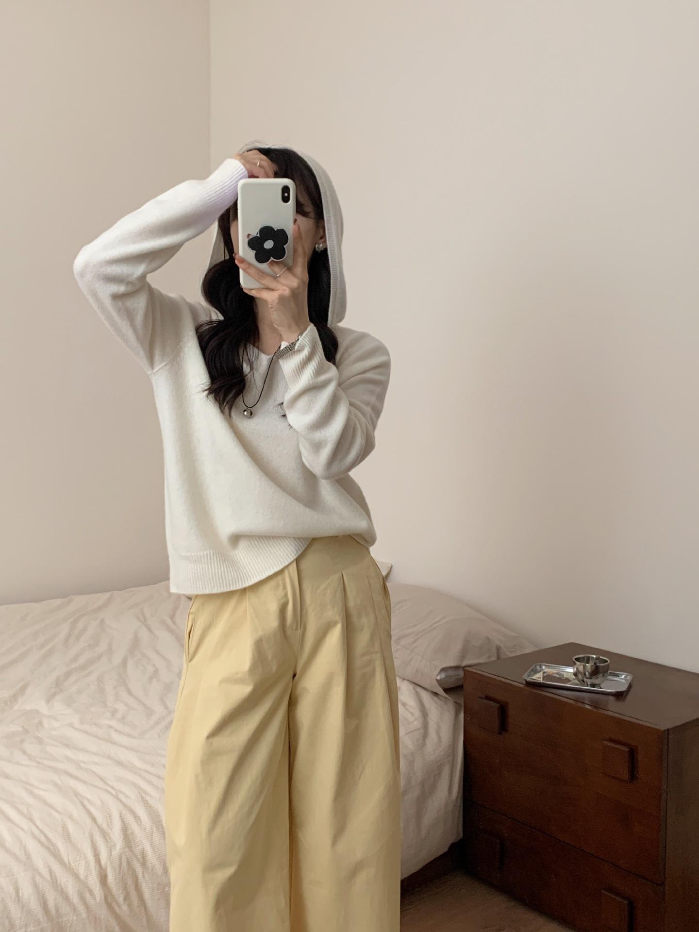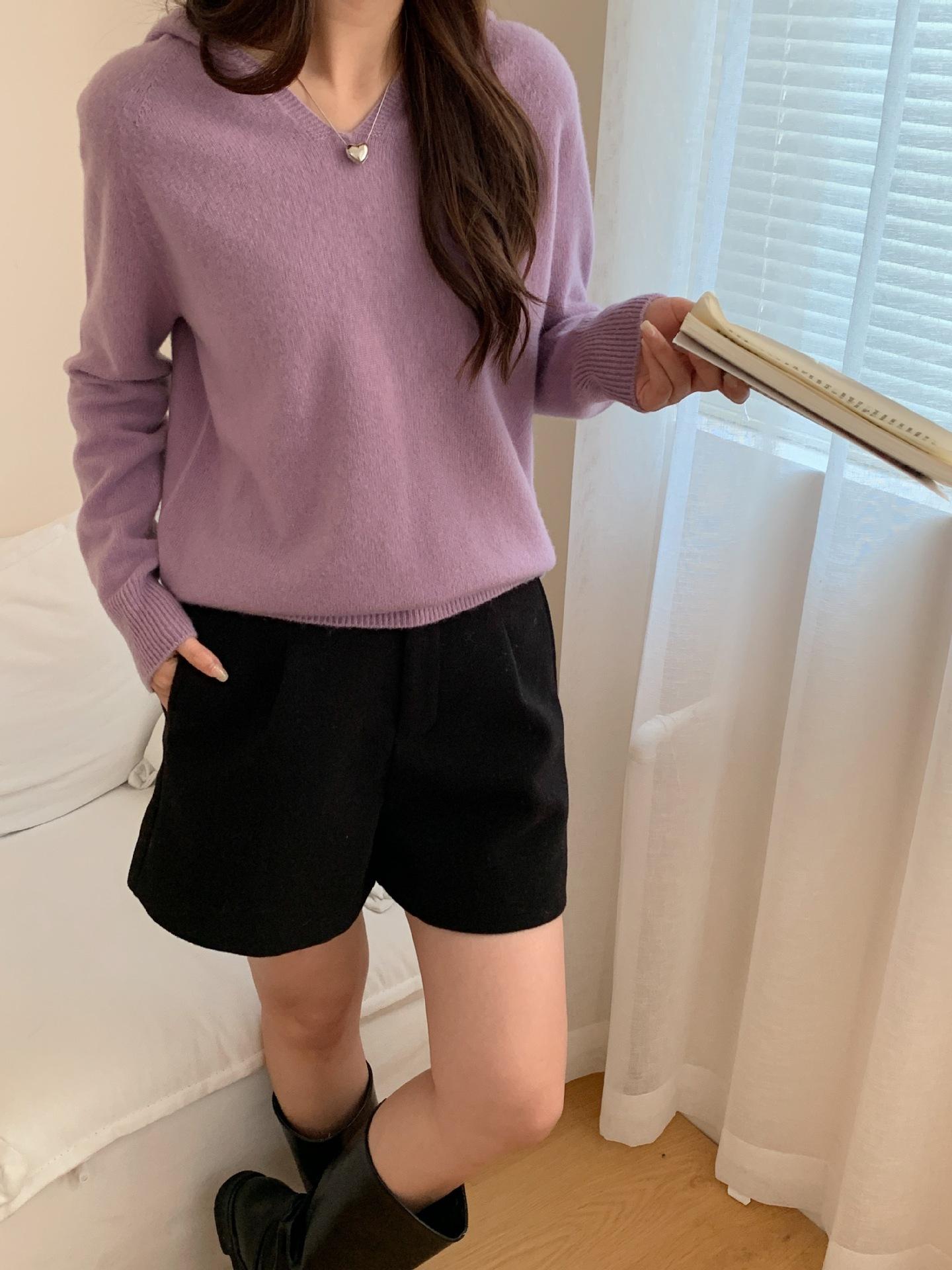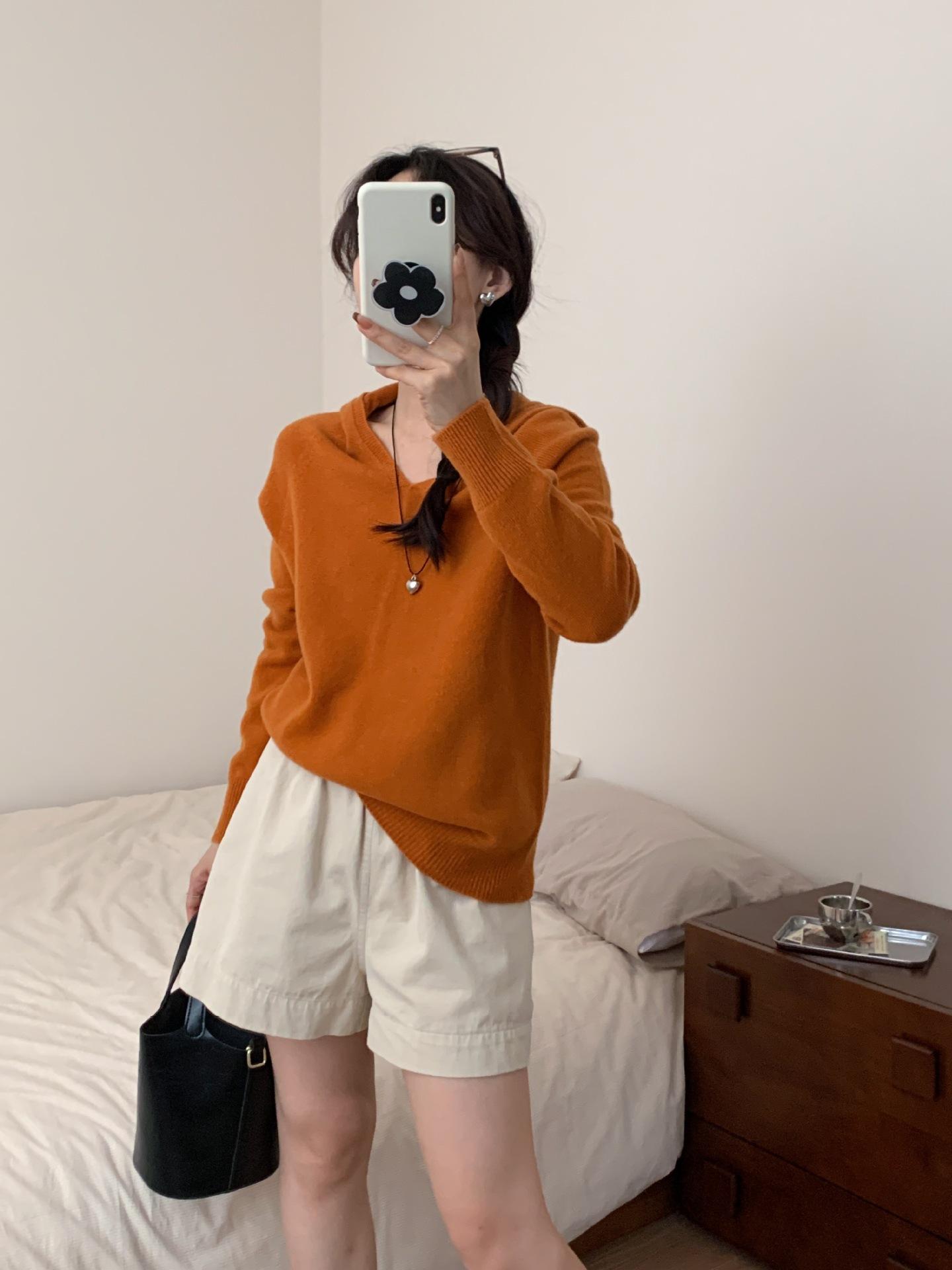 Suéter de Lana con Capucha para Mujer Otoño e Invierno Estilo Coreano Jersey de Punto de Manga Larga con Suave Suéter de Lana Integrado Sin Costuras en el Interior