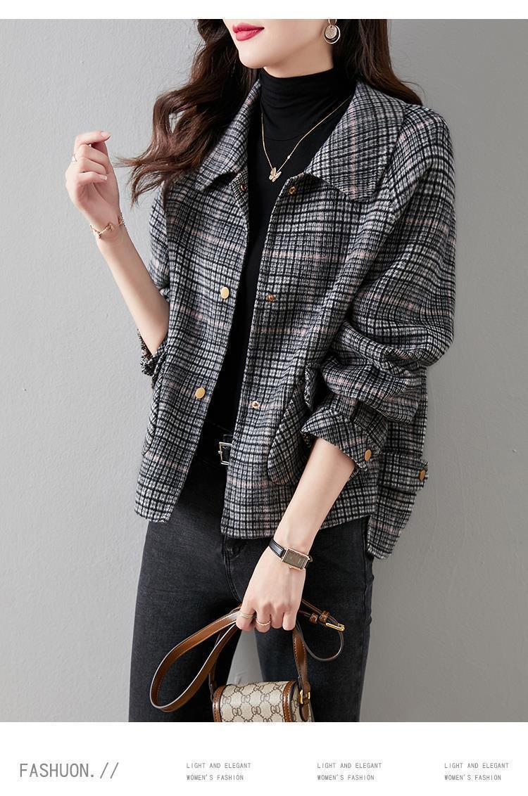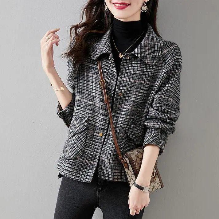 Abrigo estilo tweed para mujer 2025 Moda de primavera y otoño Estilo coreano moderno Versátil top corto de tweed a cuadros para personas pequeñas