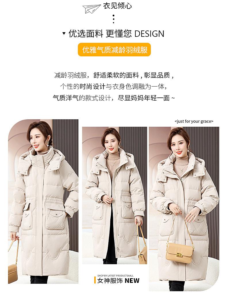 Chamarra de Plumas de Invierno para Madre de Mediana Edad Largo Medio 2023 Nuevo Talla Grande Estilo para Mujeres de Mediana Edad y Ancianas Chaqueta Cálida por Encima de la Rodilla