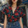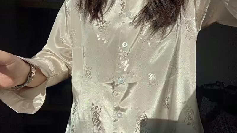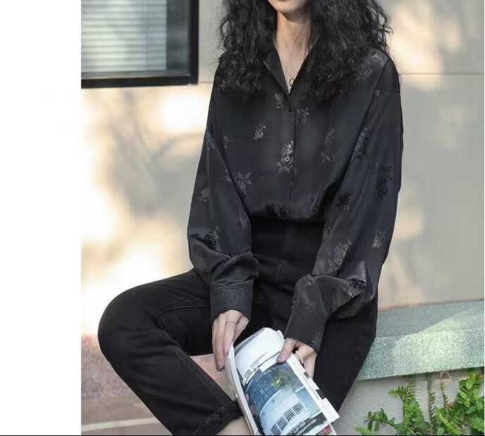 Camisa floral estilo Hong Kong para mujer, diseño holgado retro, camisa fría otoño 2023, elegante, combina con todo, top de alta calidad