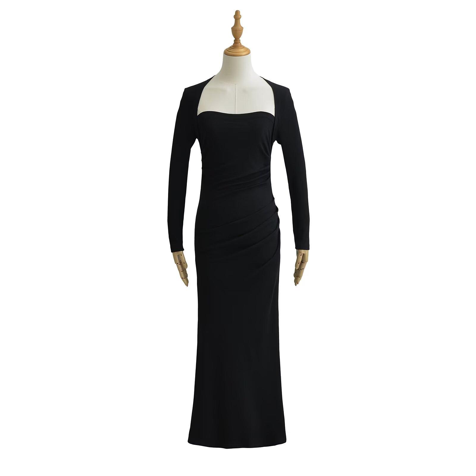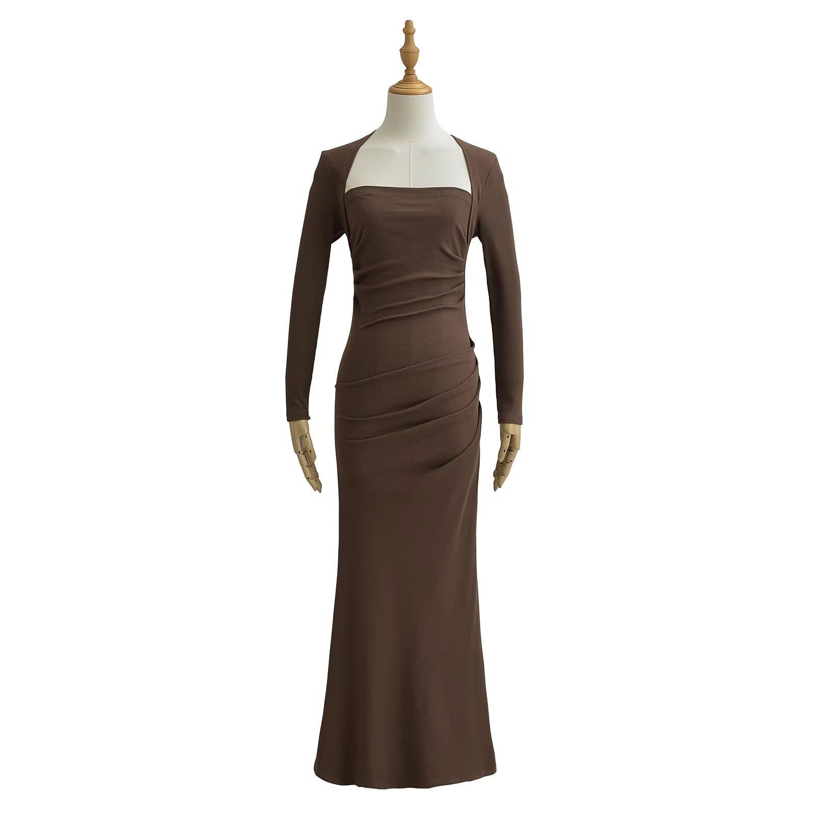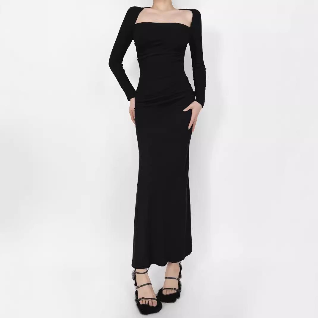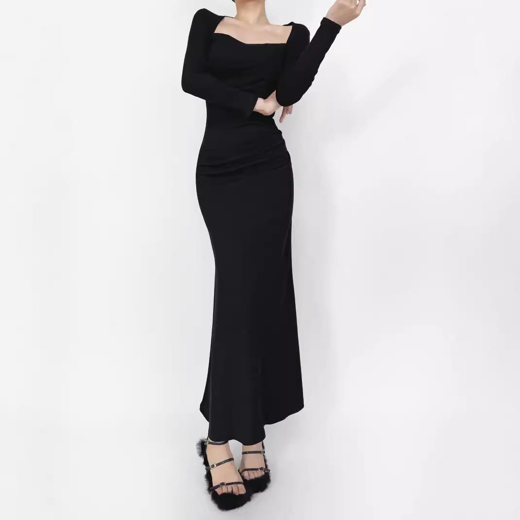 Vestido ajustado con cuello cuadrado, elegante y sexy, de otoño para mujer, con cola de pez y largo hasta la cadera S21016