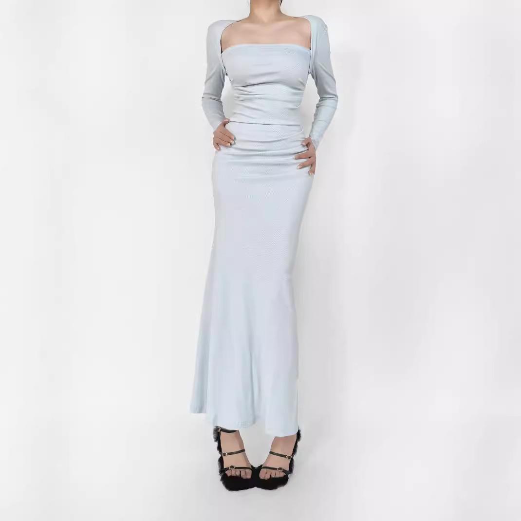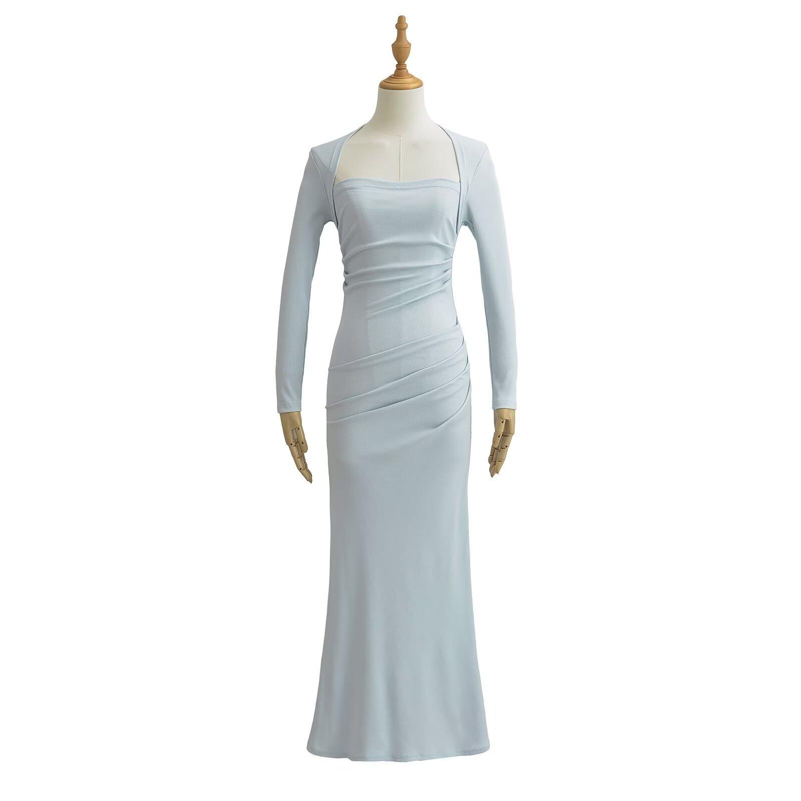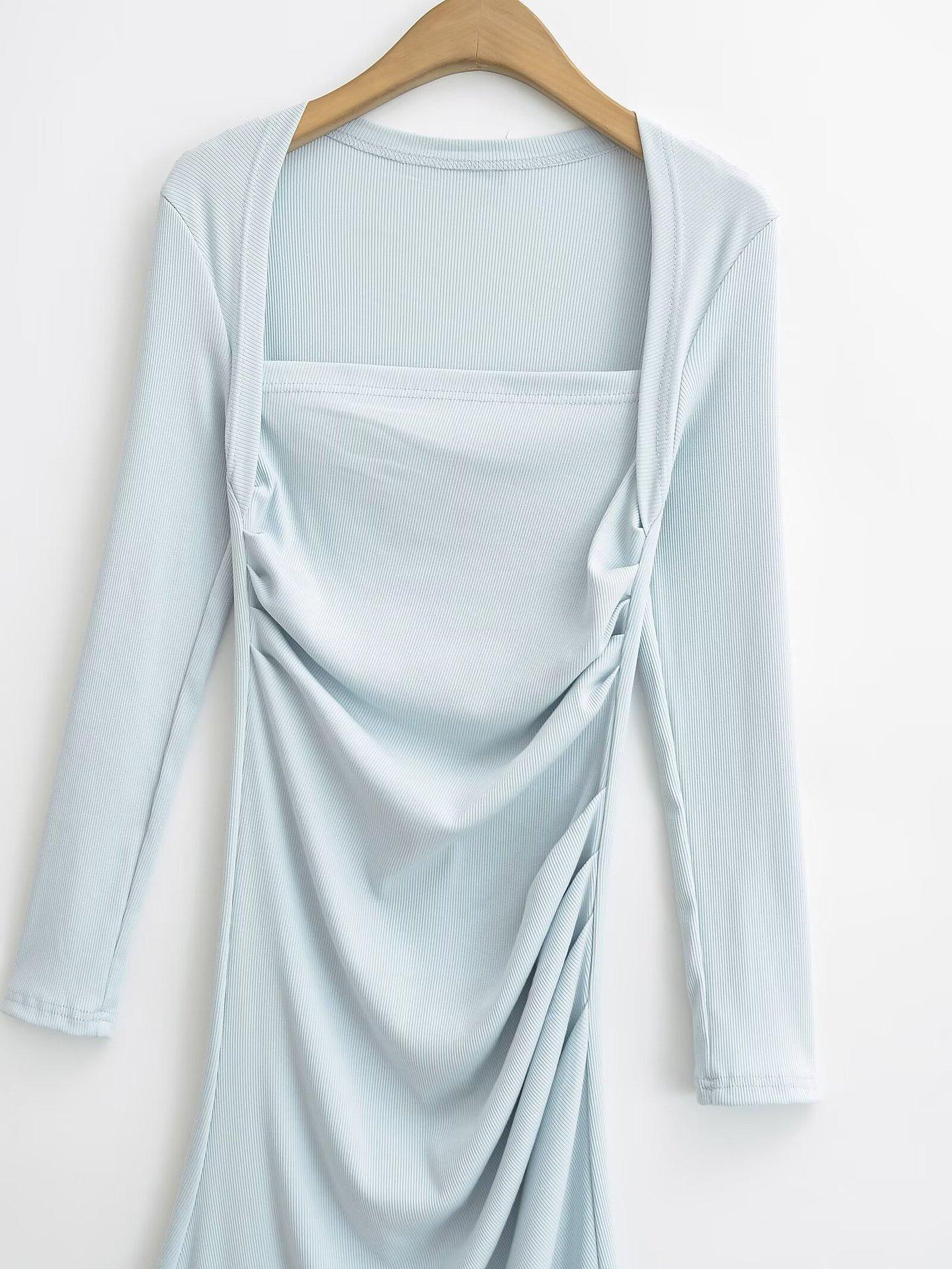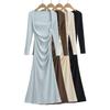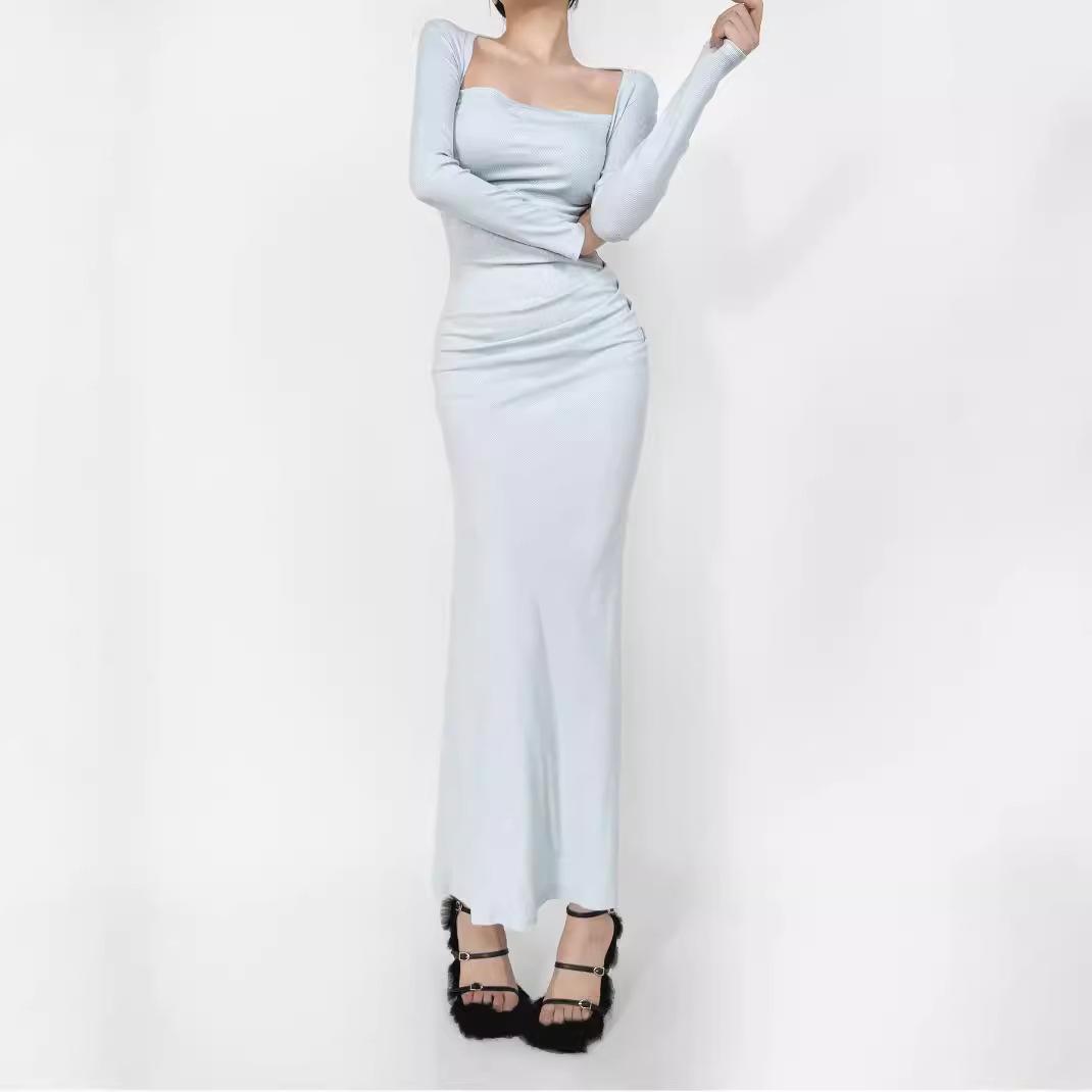 Vestido ajustado con cuello cuadrado, elegante y sexy, de otoño para mujer, con cola de pez y largo hasta la cadera S21016