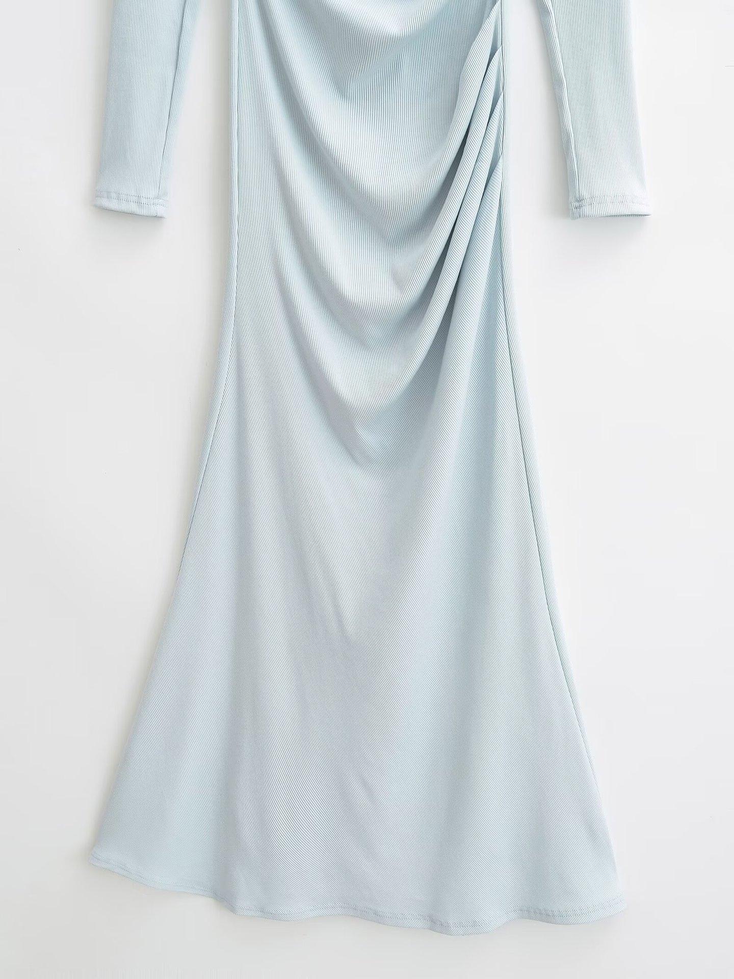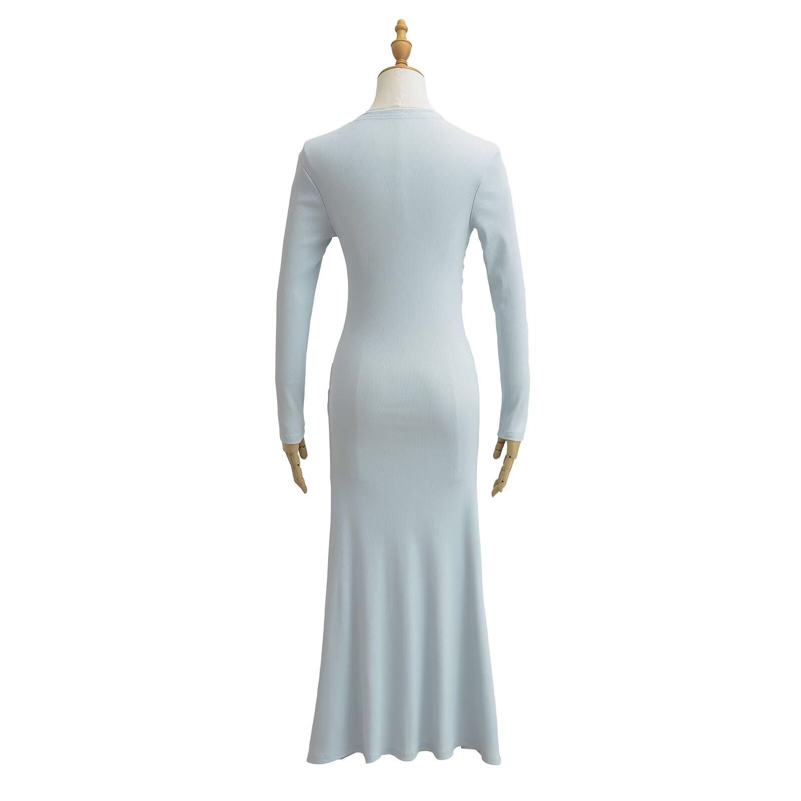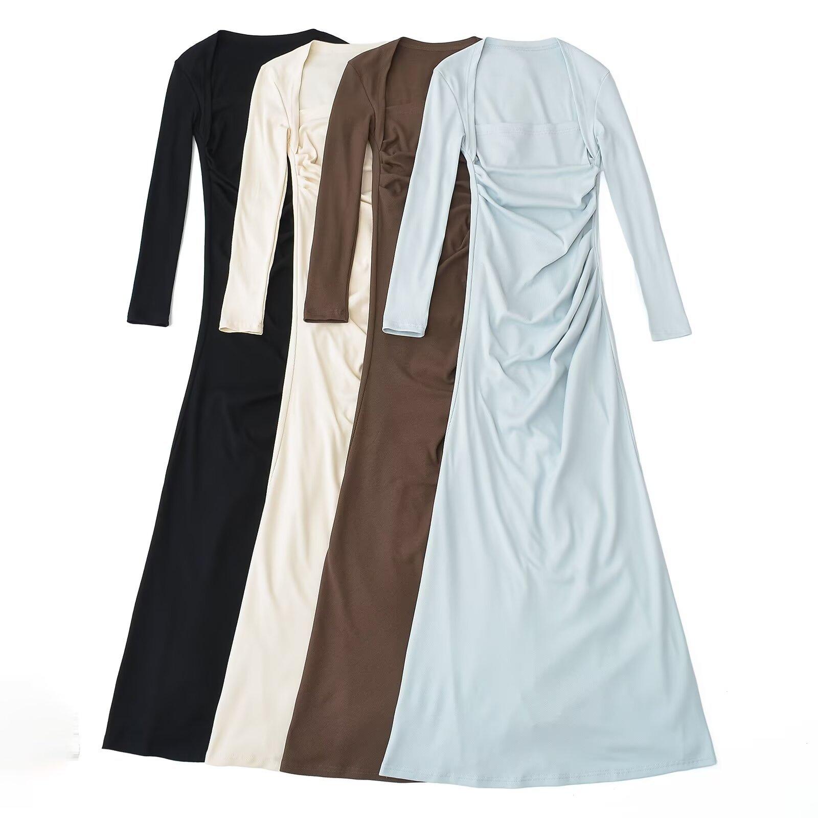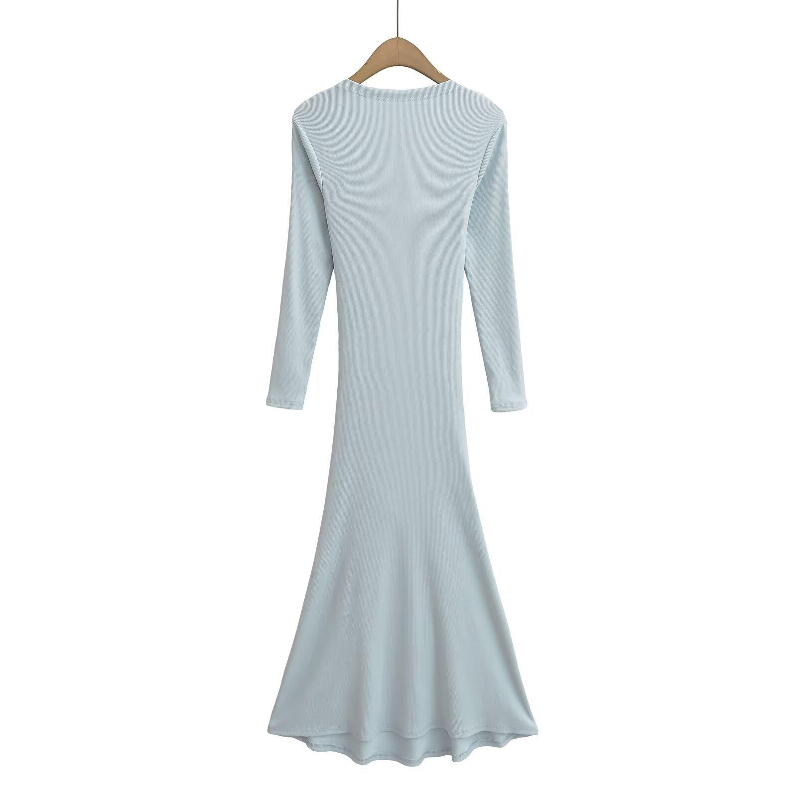 Vestido ajustado con cuello cuadrado, elegante y sexy, de otoño para mujer, con cola de pez y largo hasta la cadera S21016