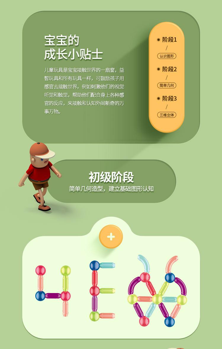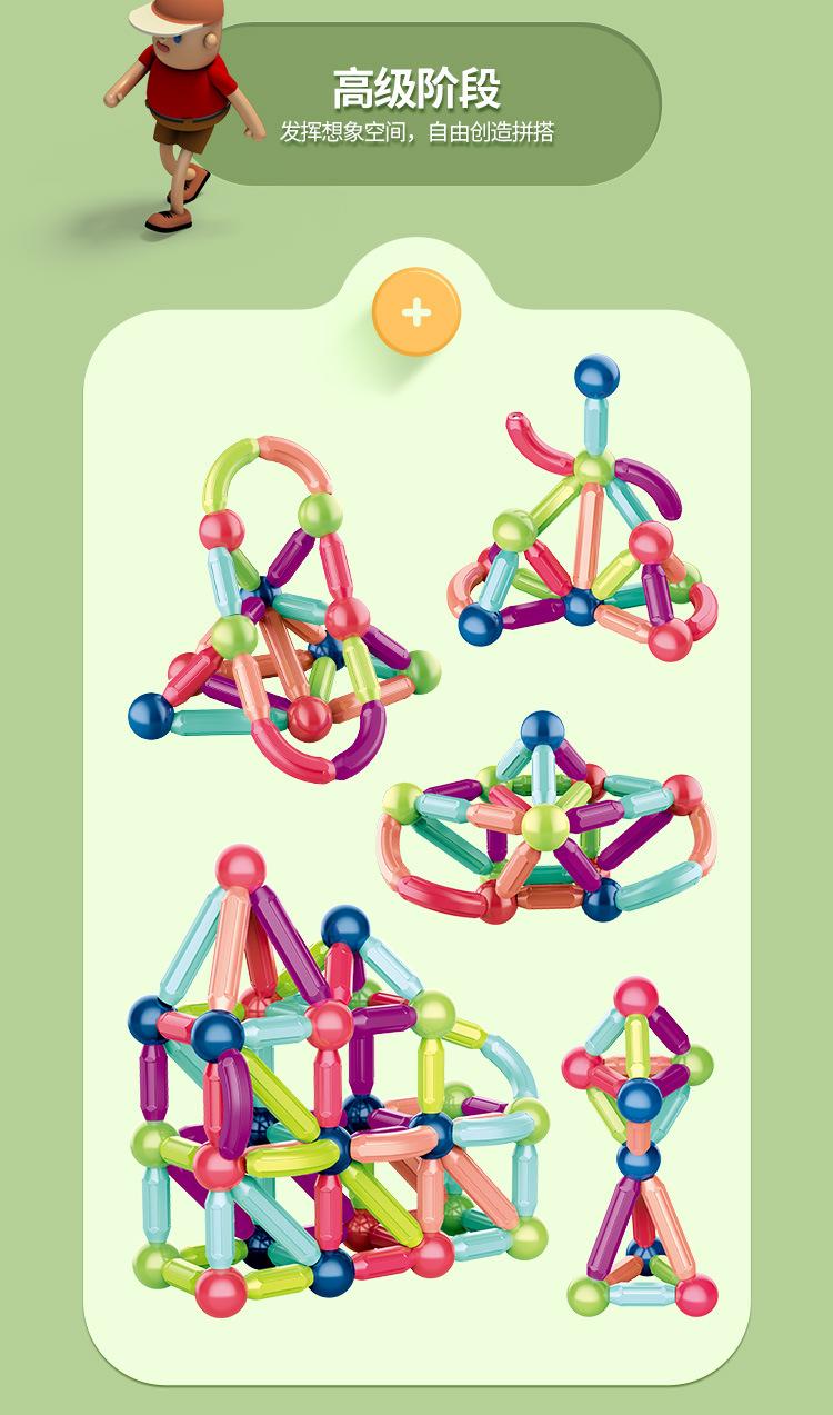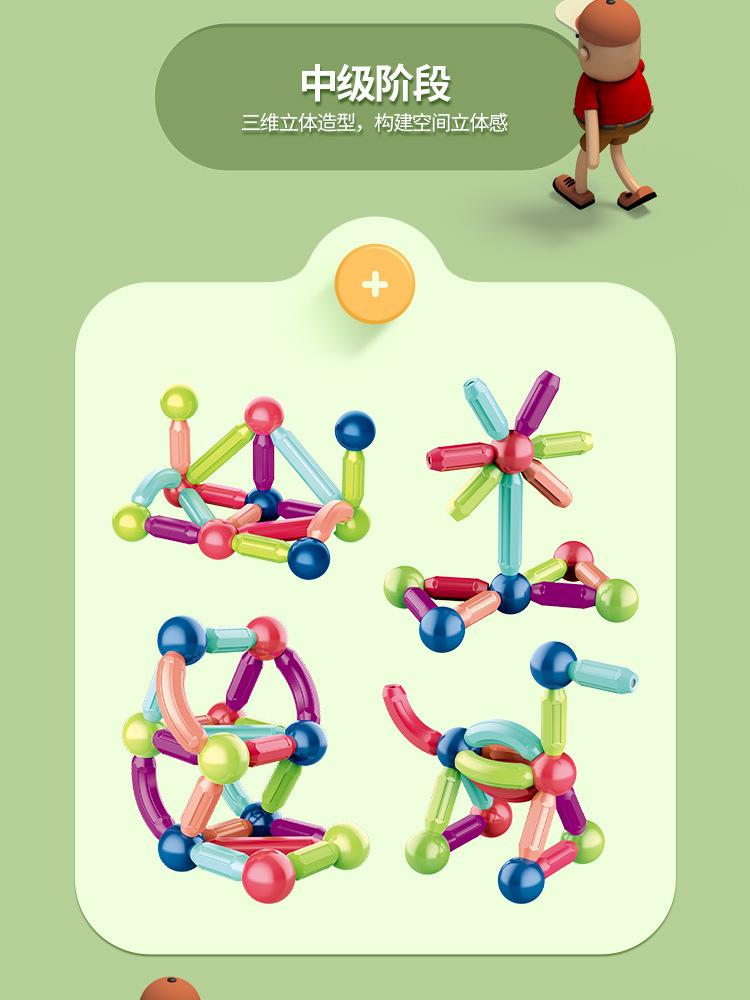 Fabricantes de origen transfronterizos, palo magnético, rompecabezas de educación temprana para niños, desarrollo, bloques de construcción ensamblados intercambiables, juguete intelectual para instituciones.