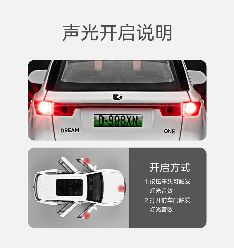 Modelo de coche de aleación Jiaye 1 a 32 ideal ONE nueva energía sonido y luz juguete de retroceso vehículo todoterreno modelo musical adornos