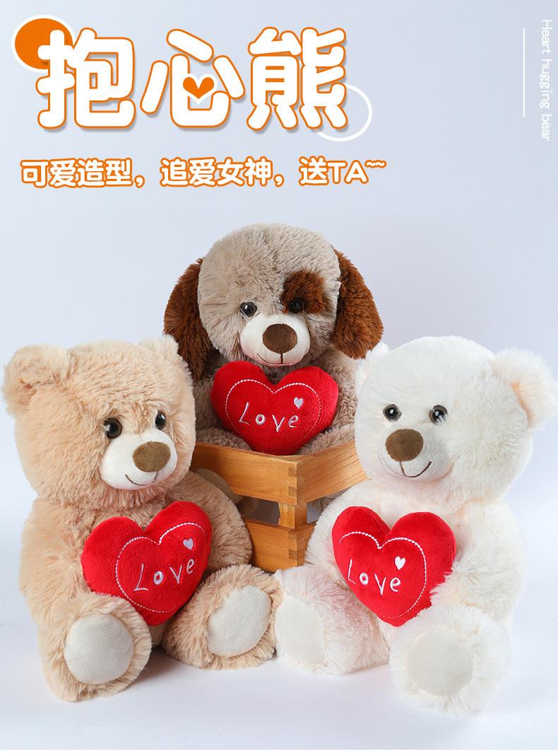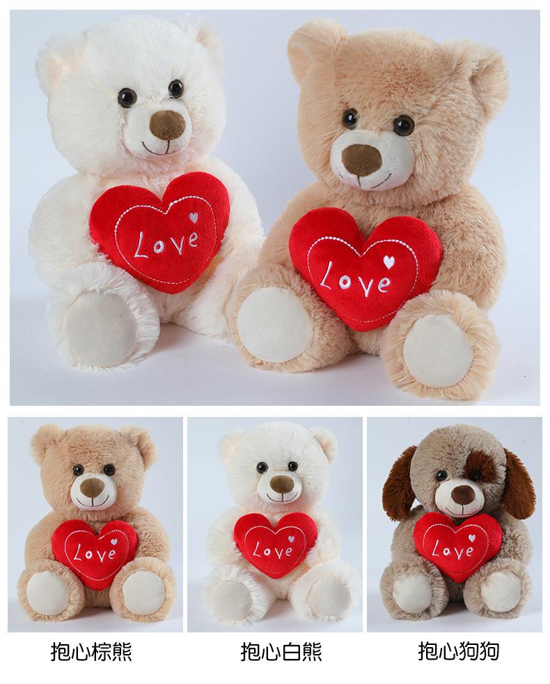 Brown bear hugging heart, White bear hugging heart, Puppy hugging heart