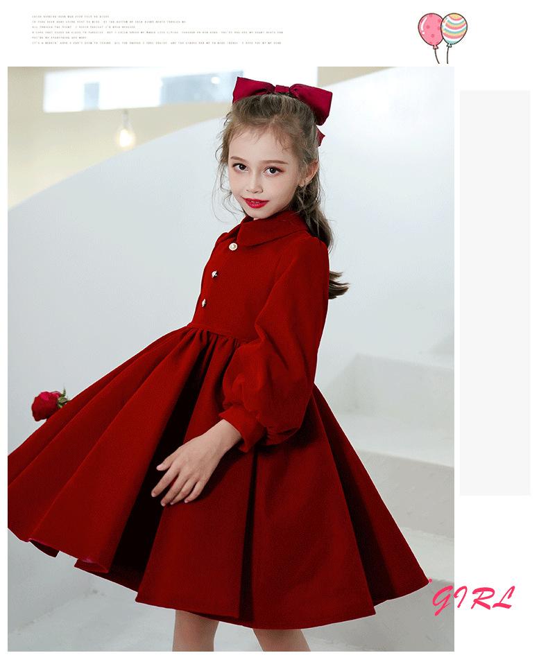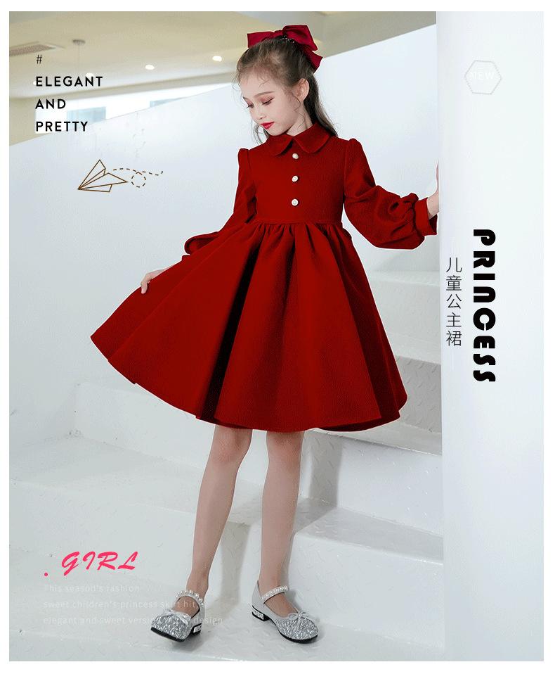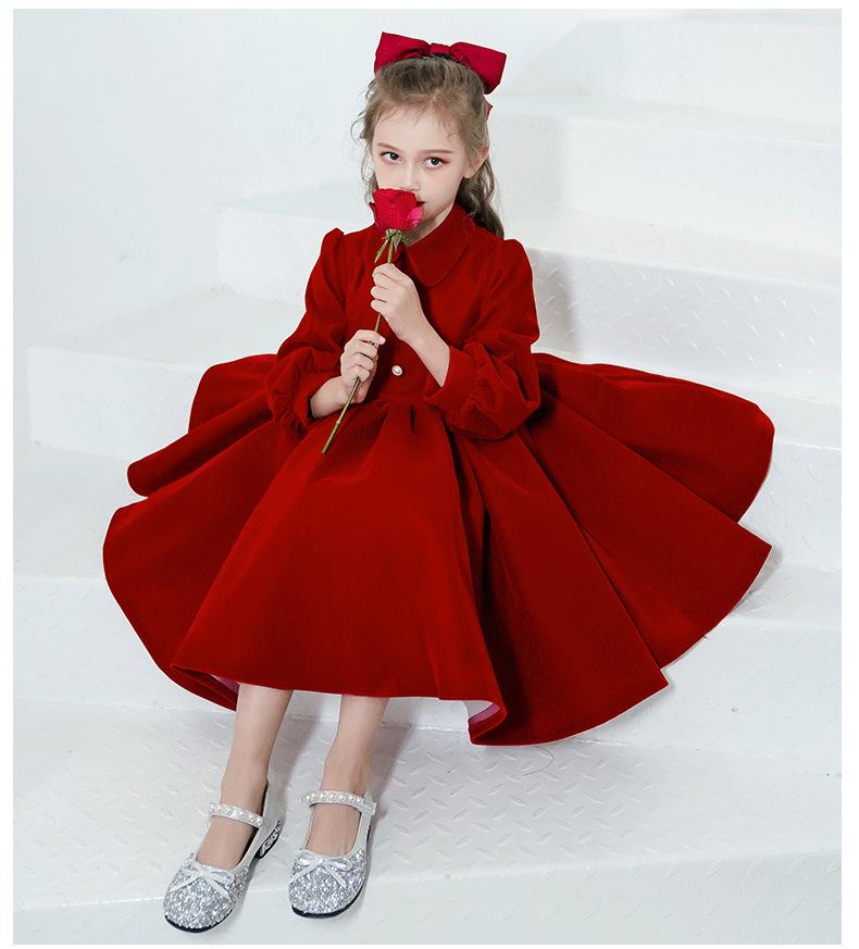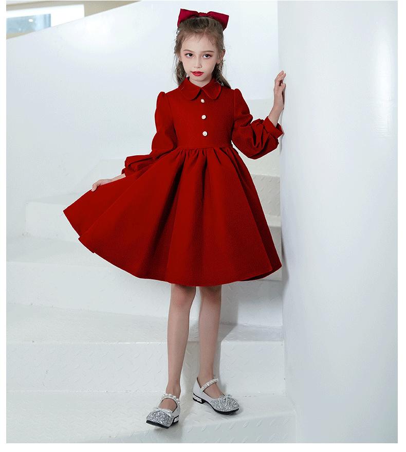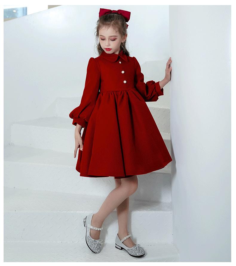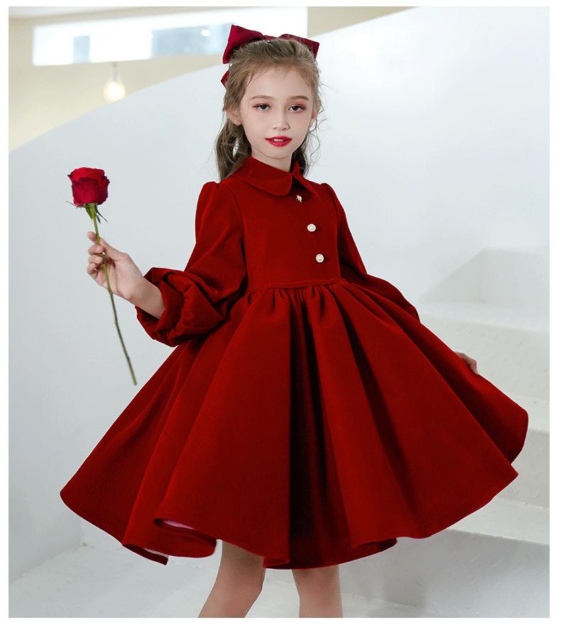 Vestido Infantil Estilo Otoño Rojo Actuación de Piano Vestido de Princesa Niña Dama de Honor Boda Niñita Vestido Nuevo Otoño