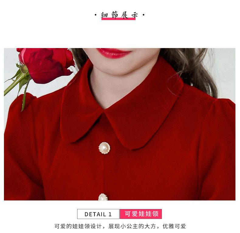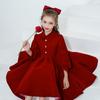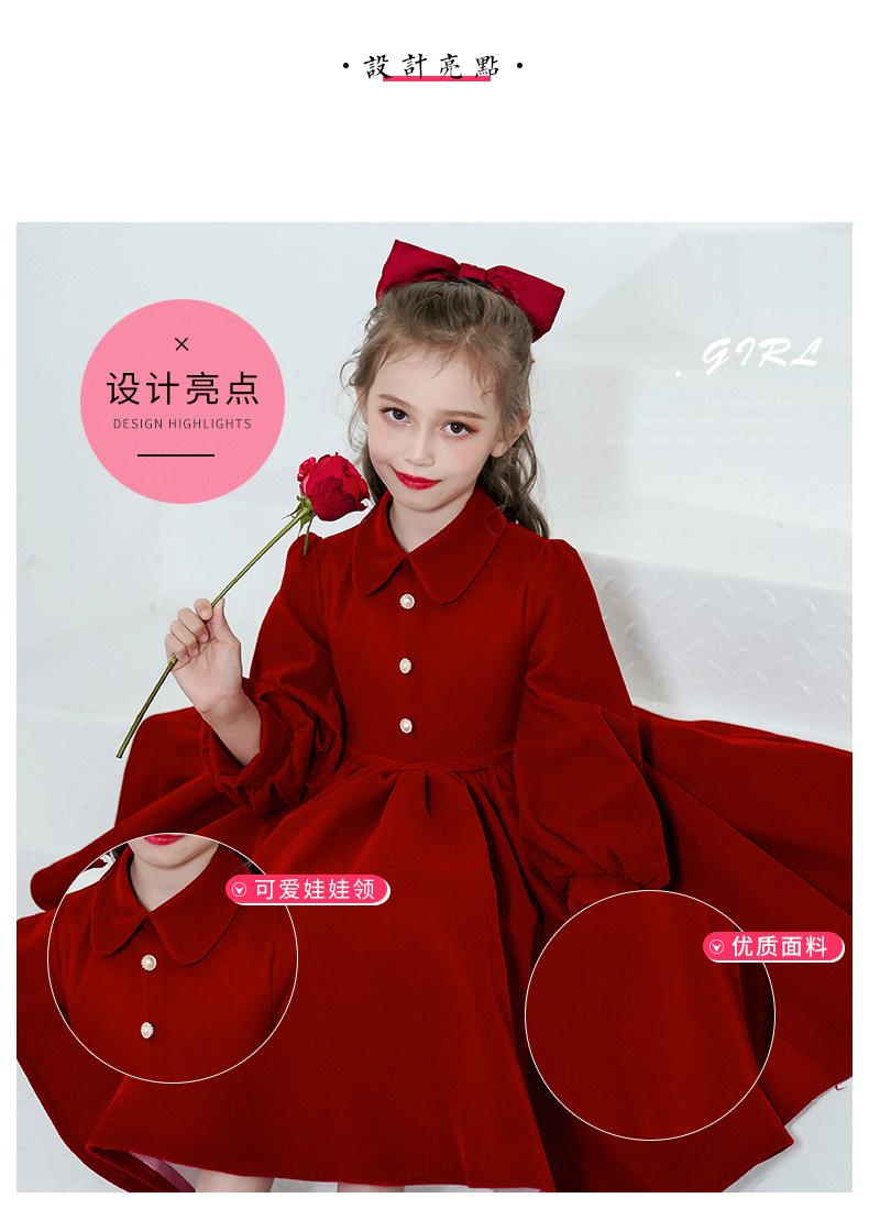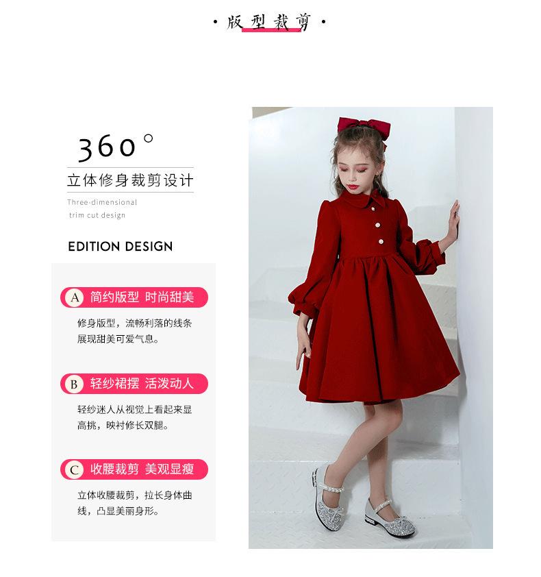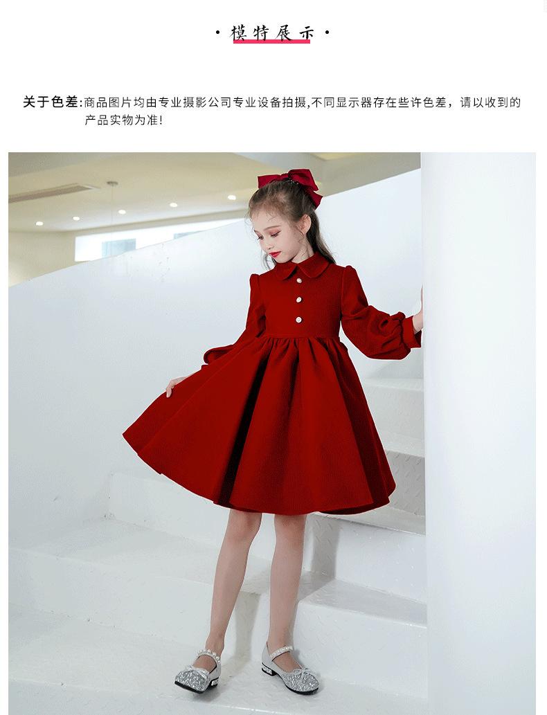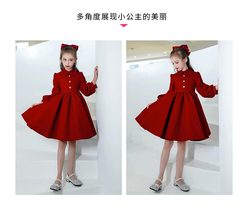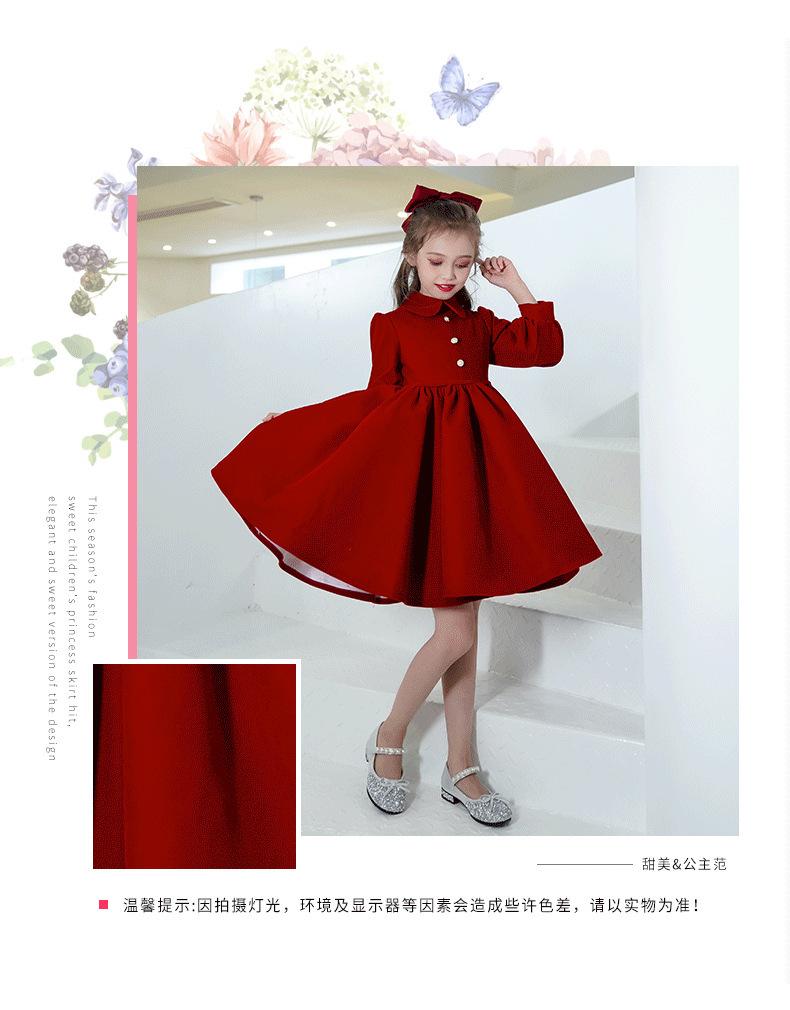 Vestido Infantil Estilo Otoño Rojo Actuación de Piano Vestido de Princesa Niña Dama de Honor Boda Niñita Vestido Nuevo Otoño
